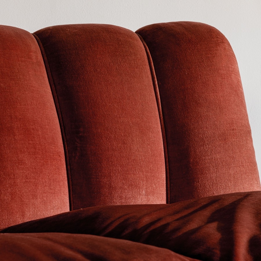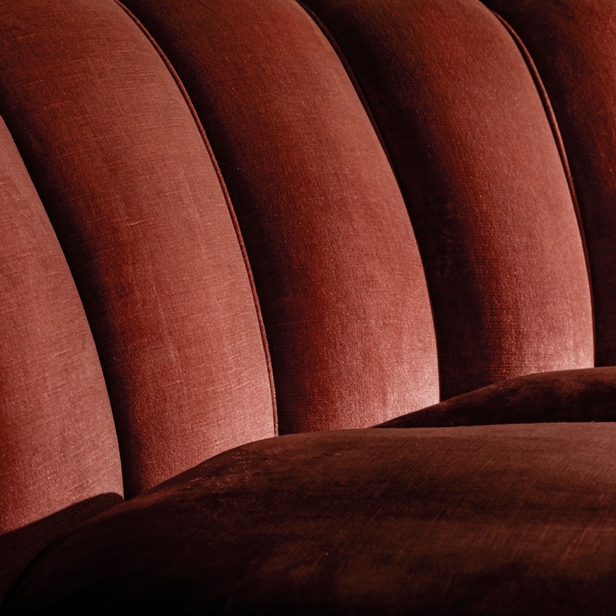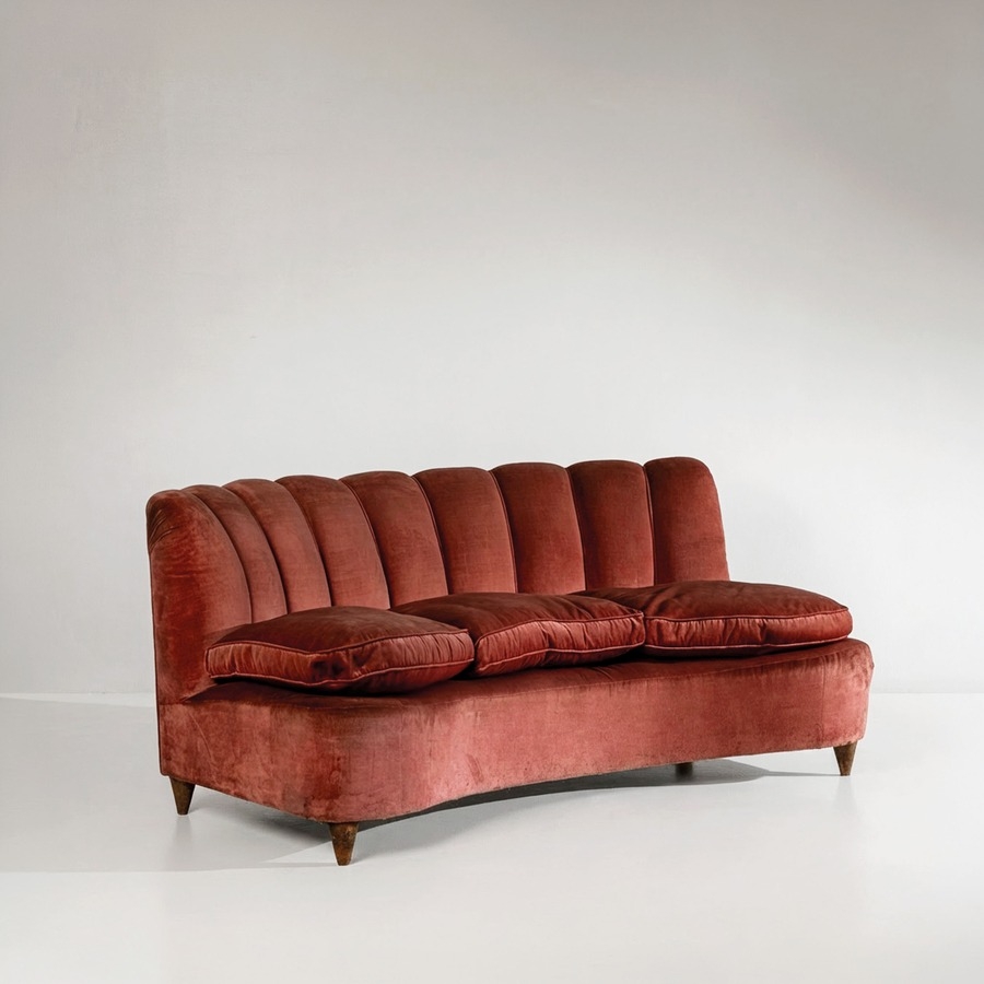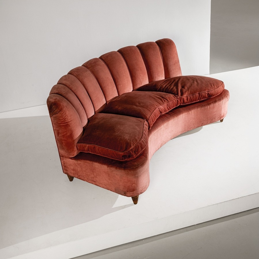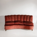 Divano. Legno tornito, tessuto imbottito. Produzione Arredamenti Borsani Varedo, anni '40. Autentica Archivio Osvaldo Borsani Varedo.