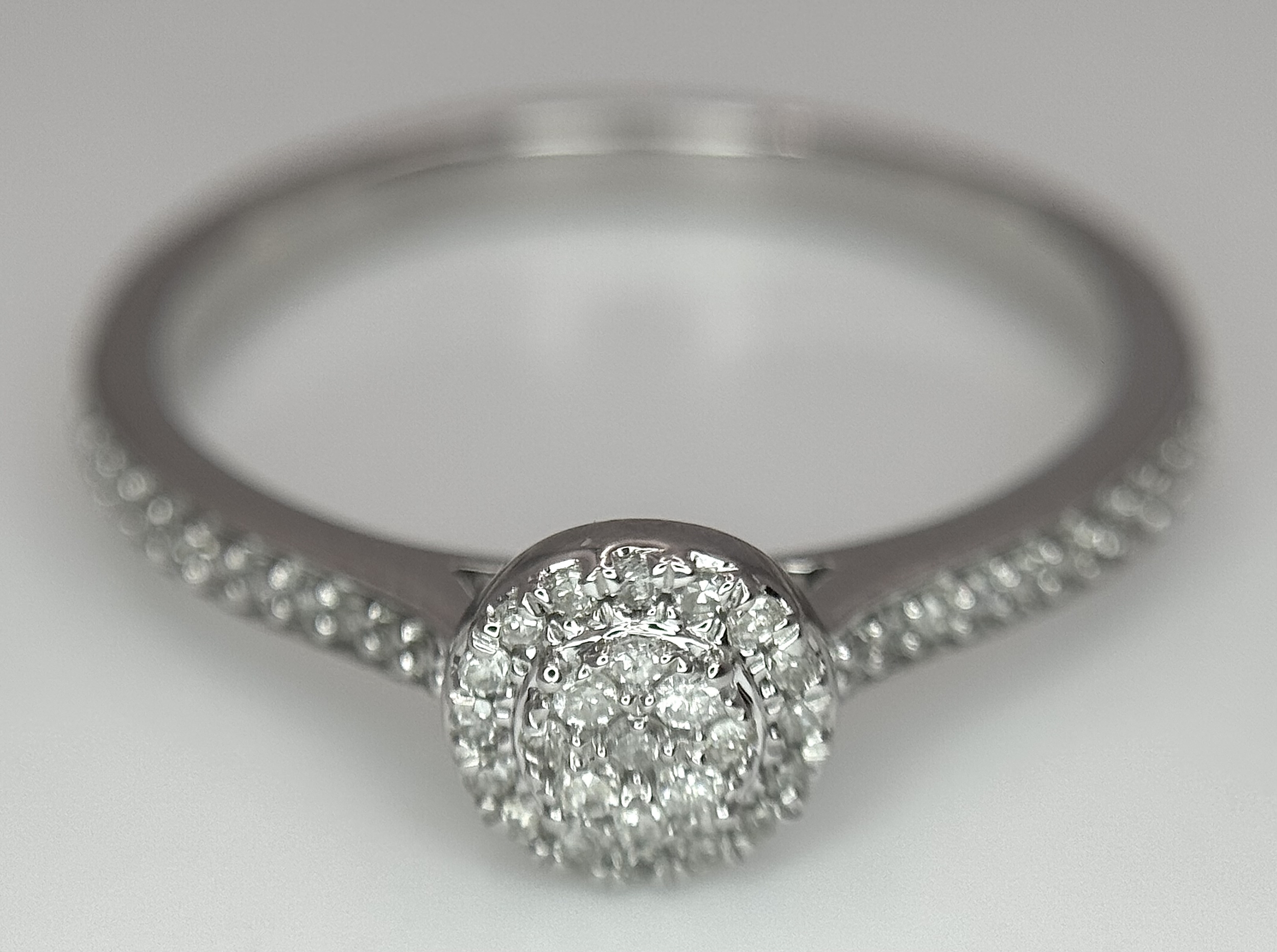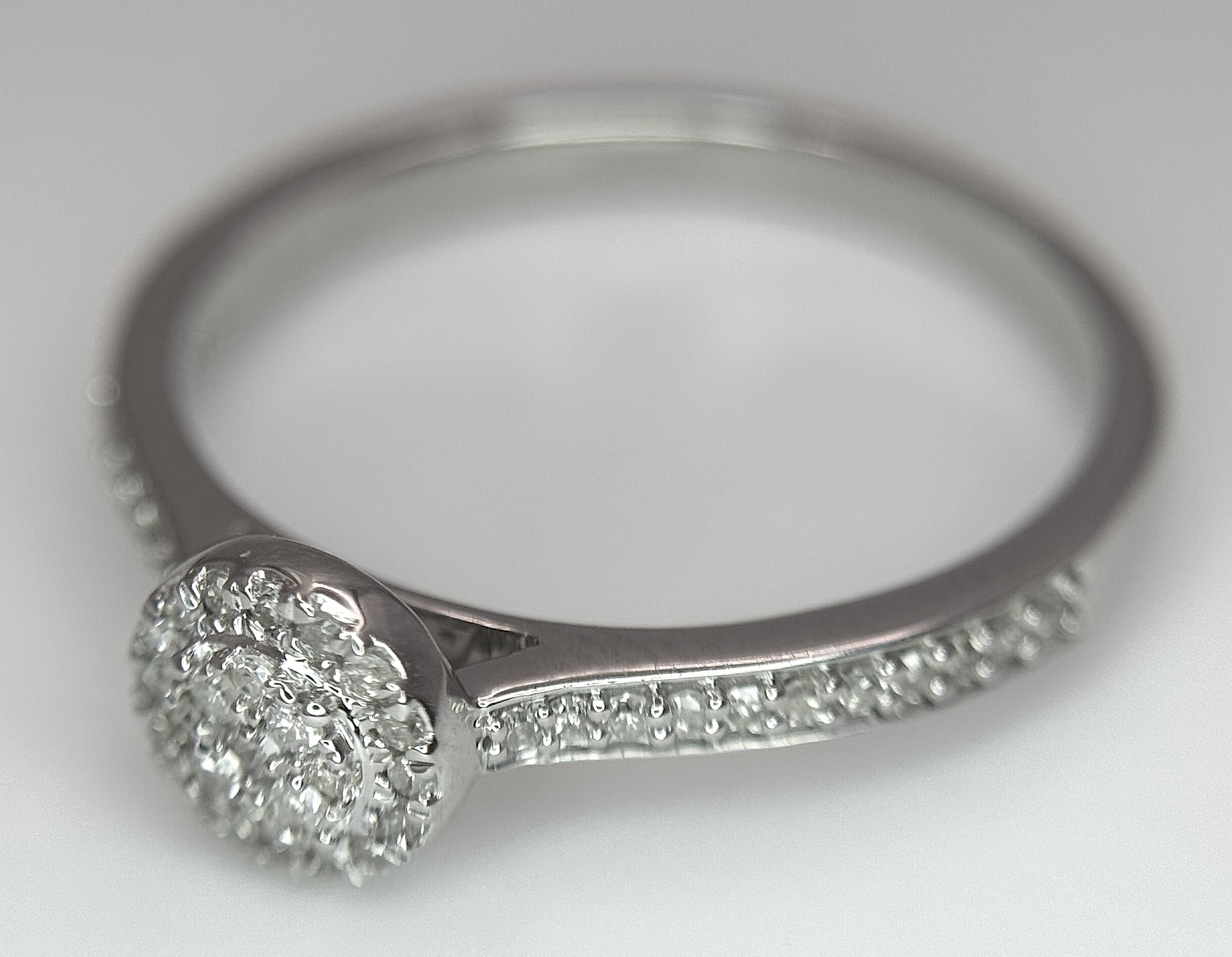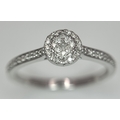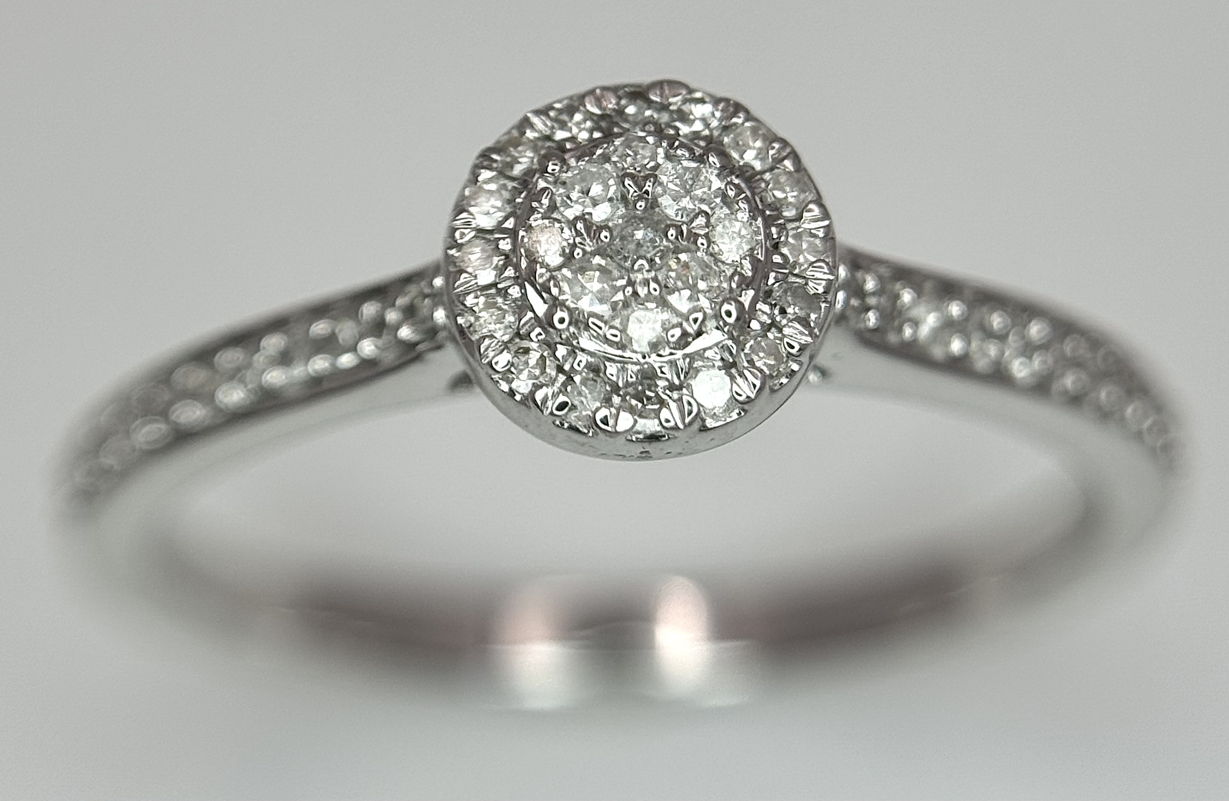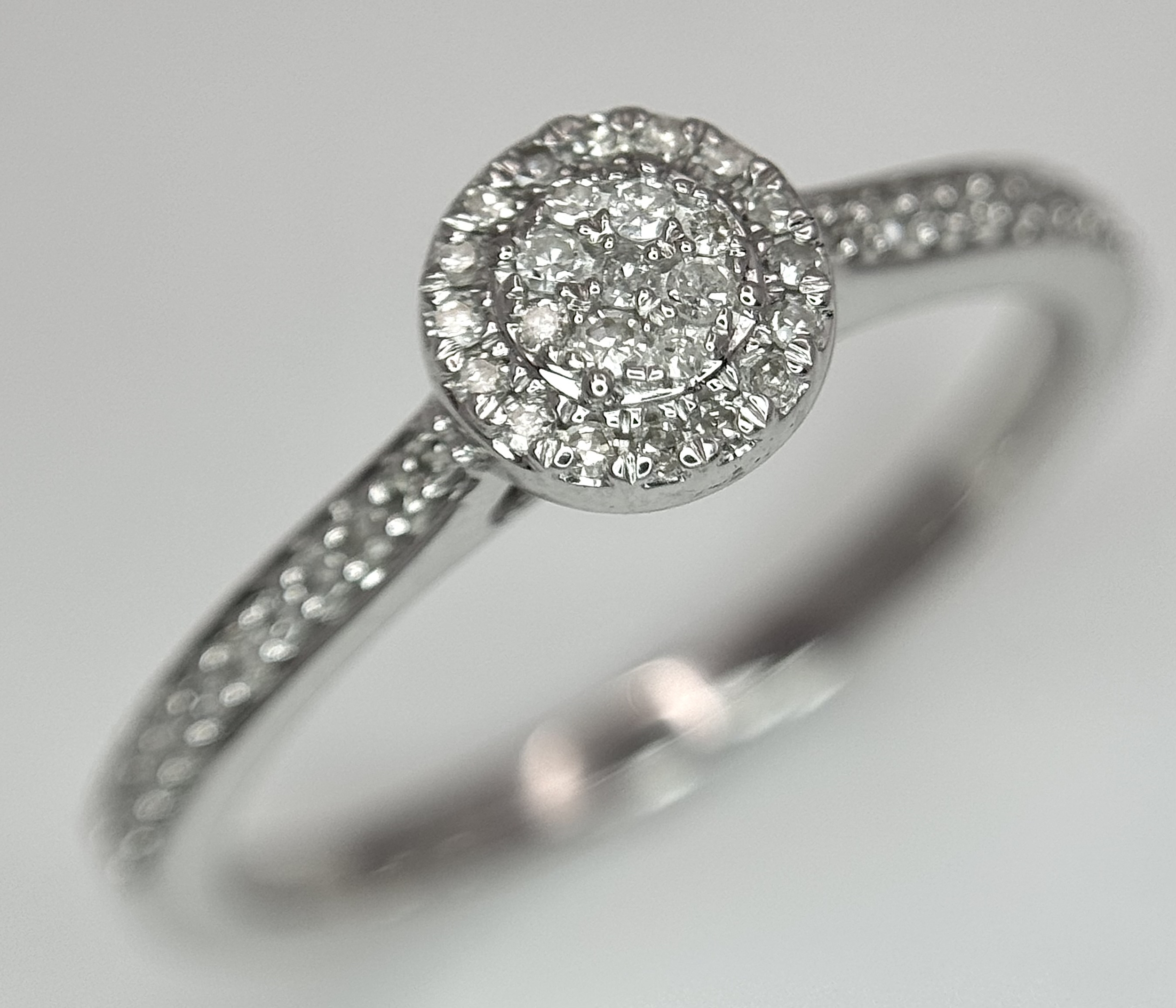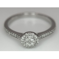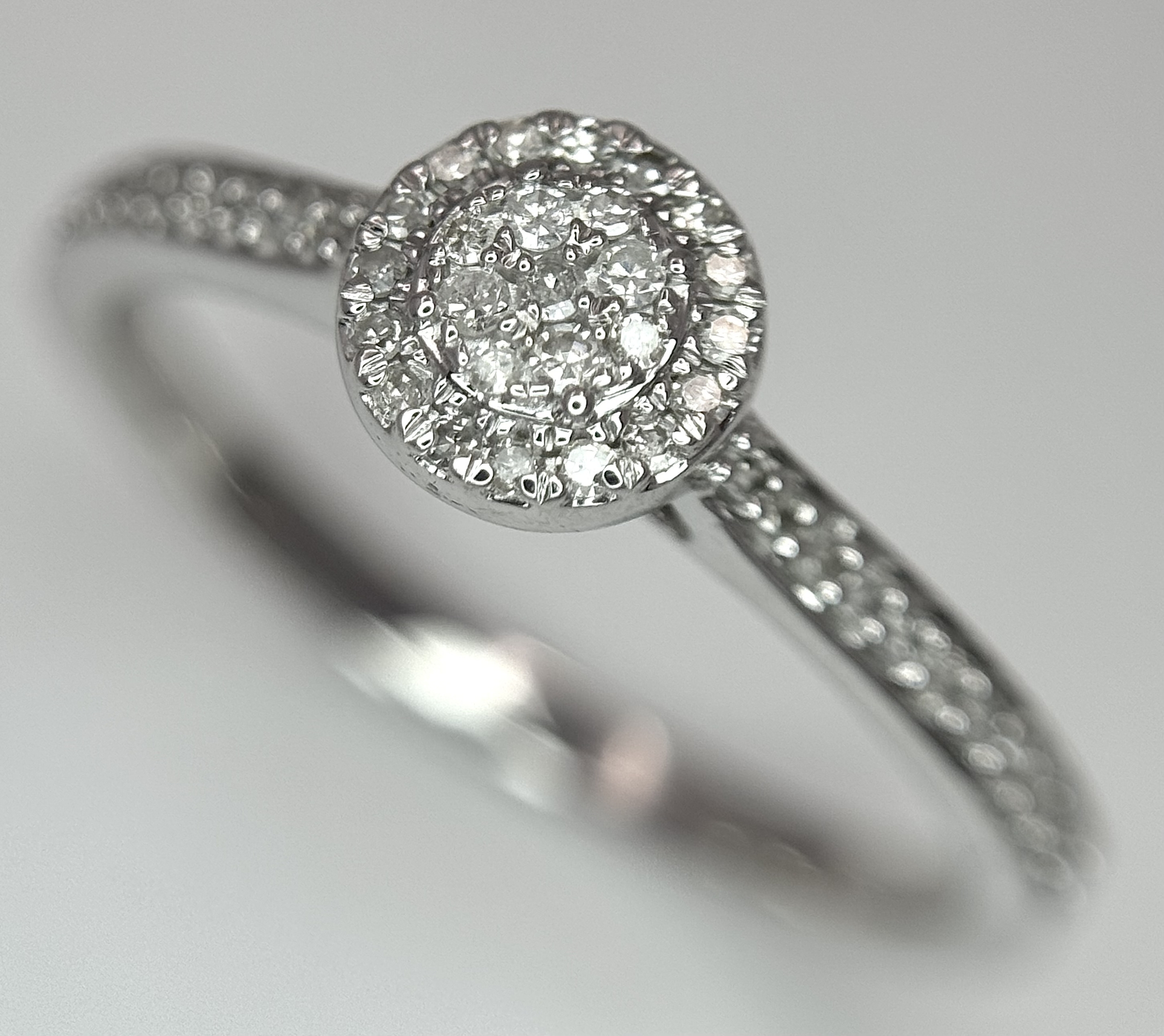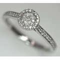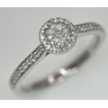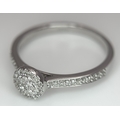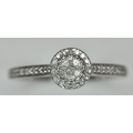 A 9K WHITE GOLD, DIAMOND SET HALO RING. 0.19Ct Total Diamond Weight, Total Weight 2.4G, SIZE P. TAN 8002