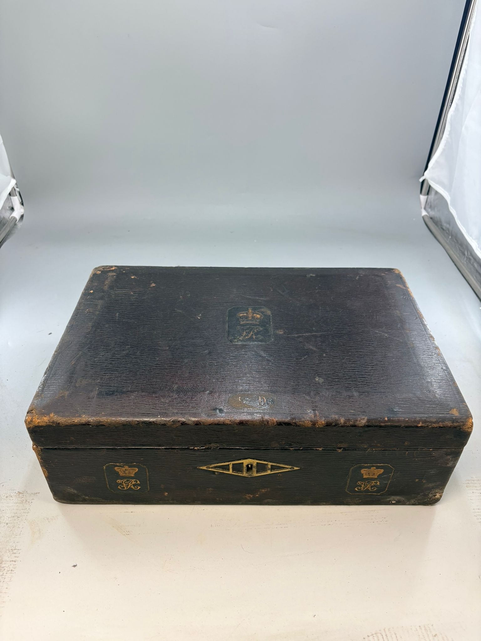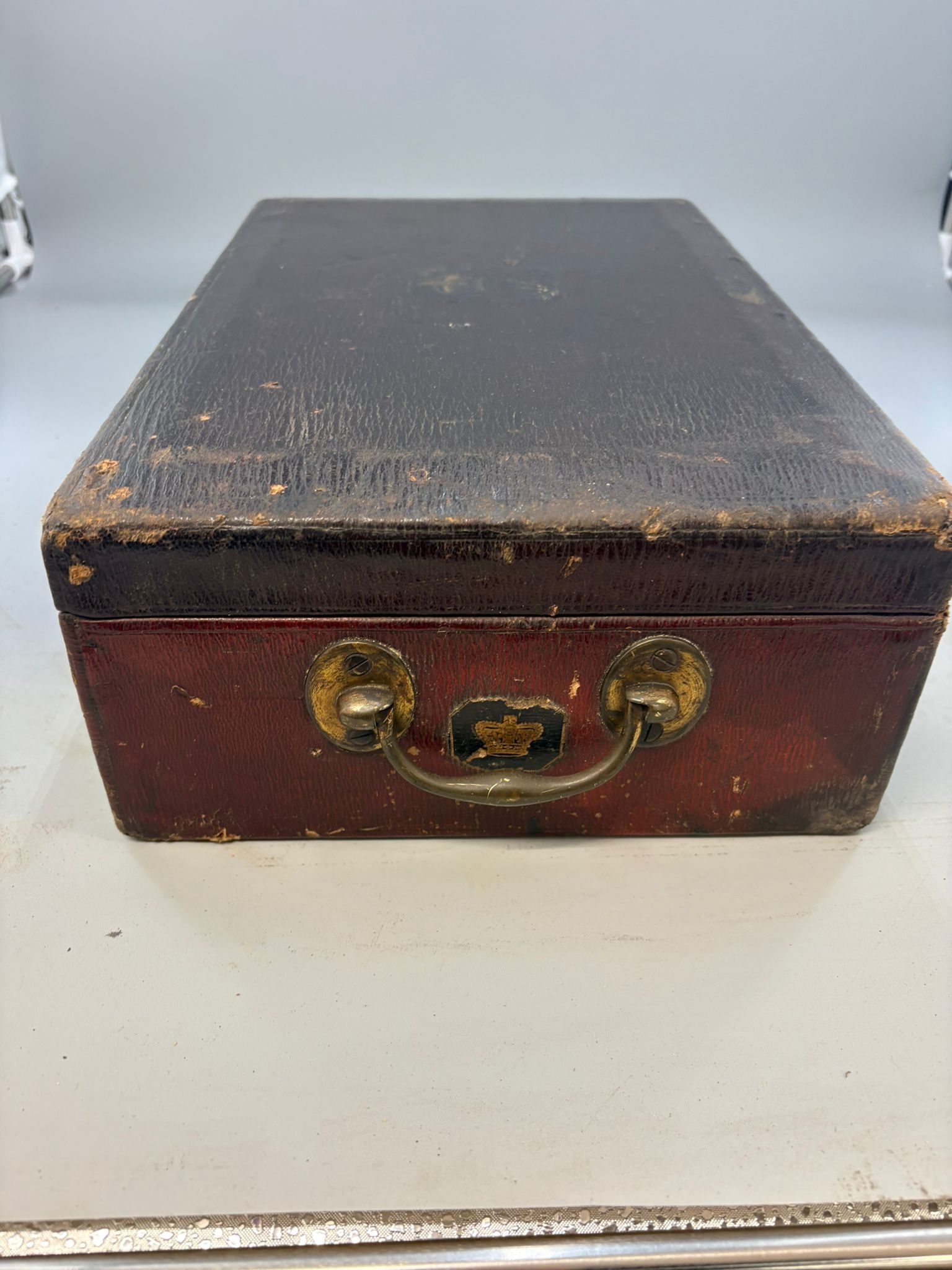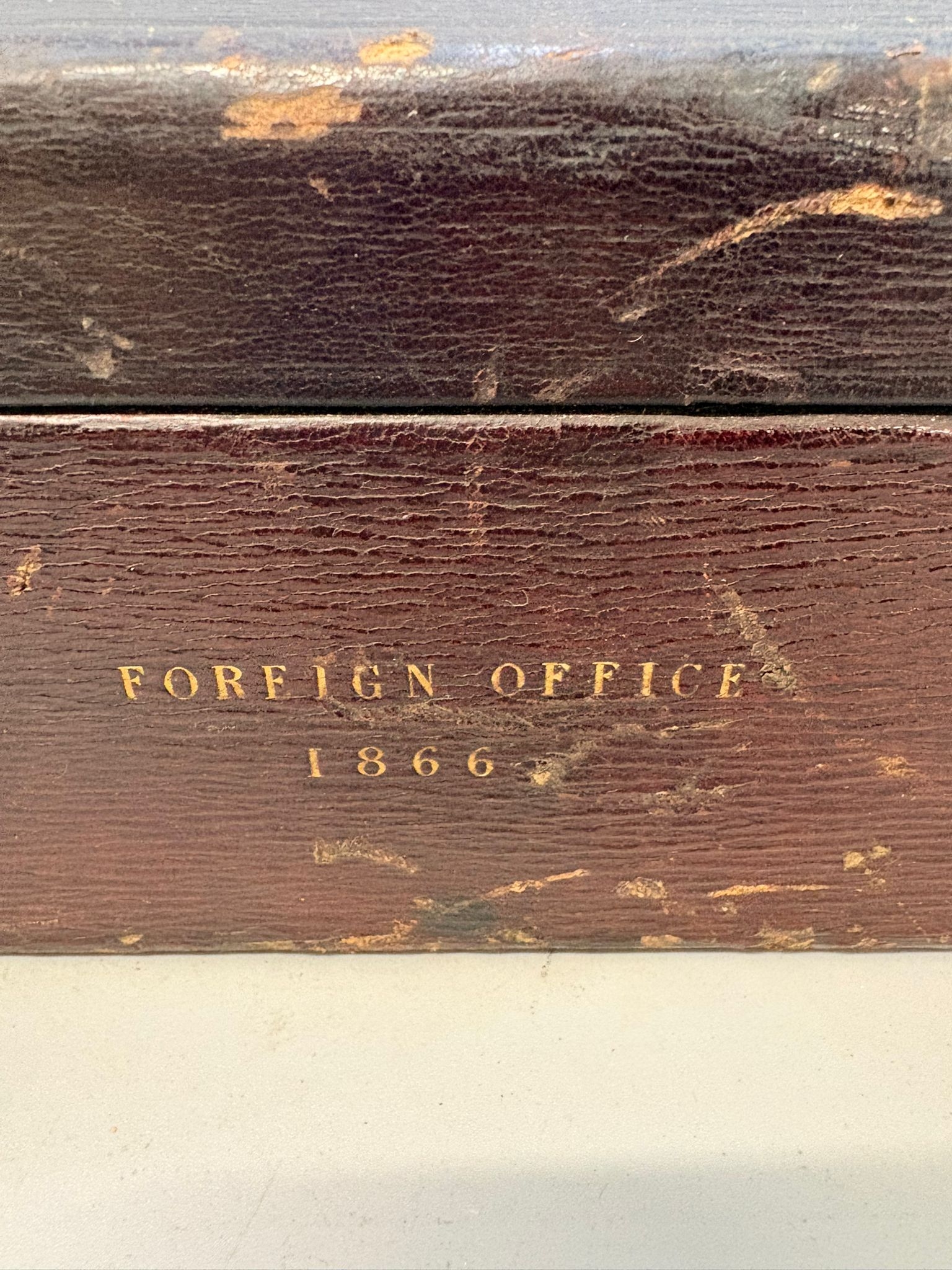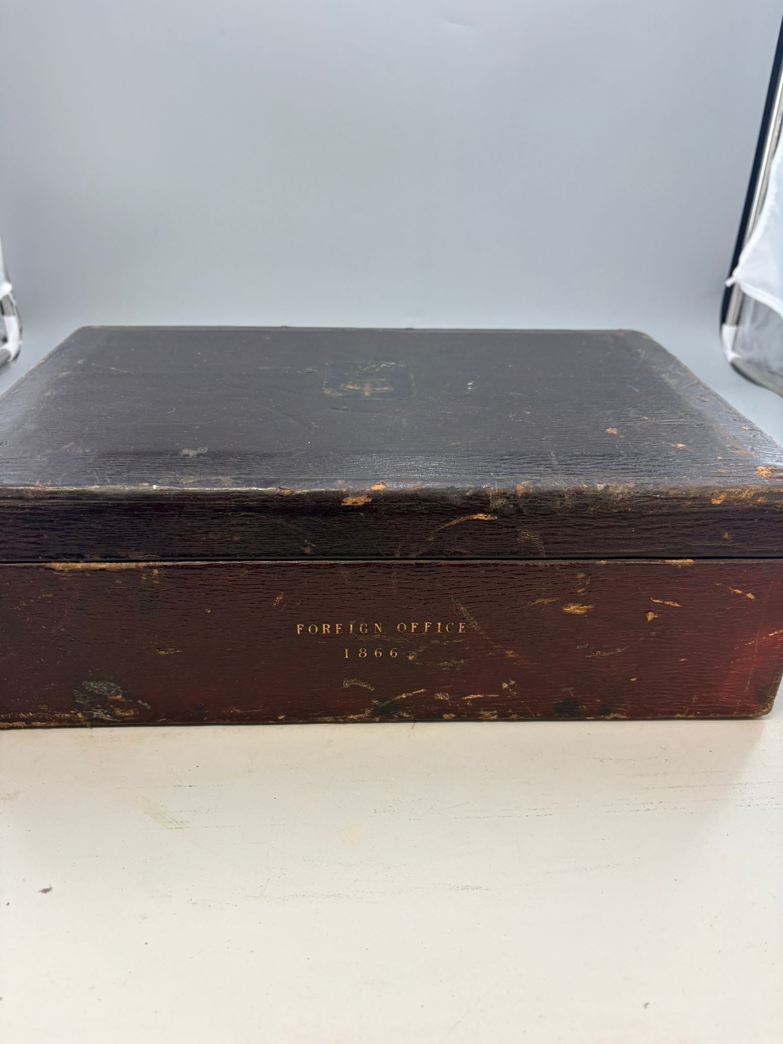 Antique Leather Foreign Office Despatch Box 1866 with Handle