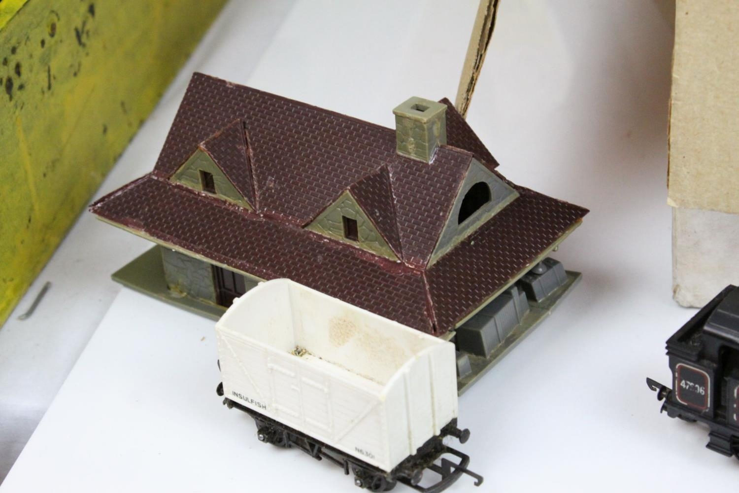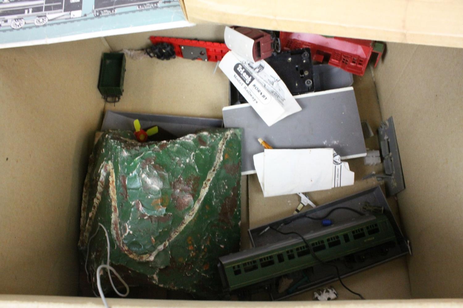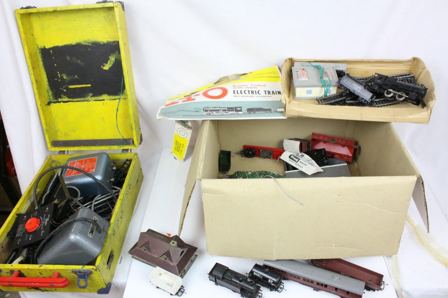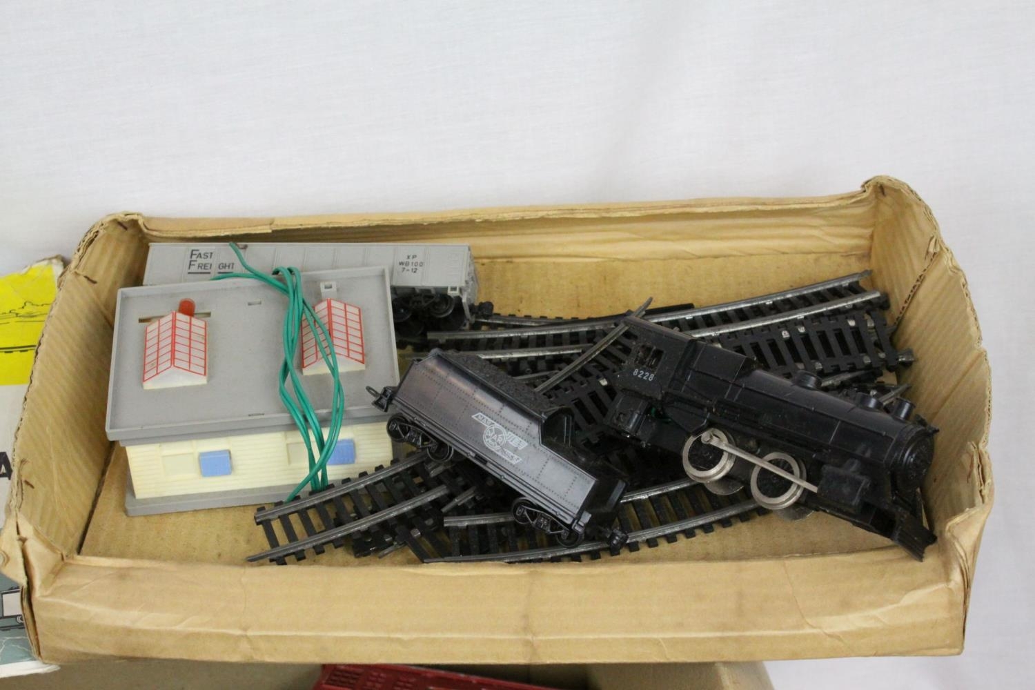 Quantity of OO & HO gauge model railway to include boxed Marx HO Battery Operated electric train set, Triang R52 locomotive, 8 x items of rolling stock, track etc (two boxes)
