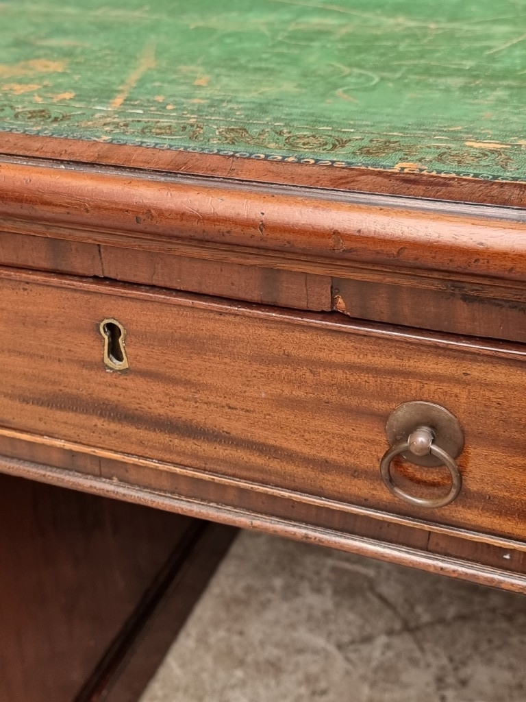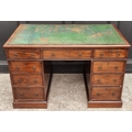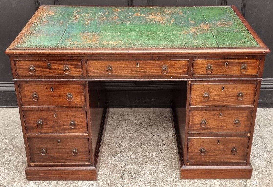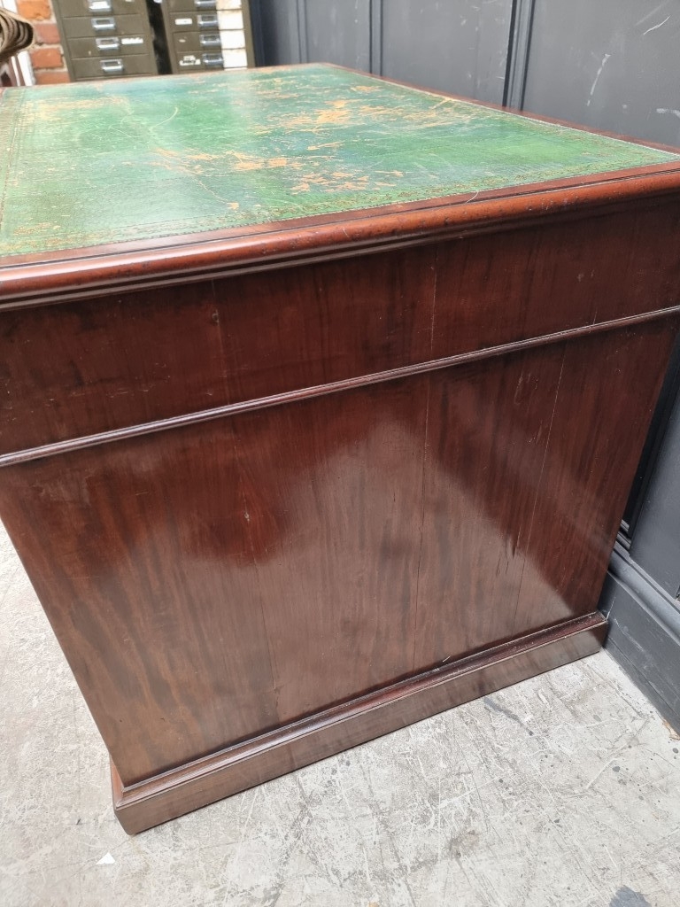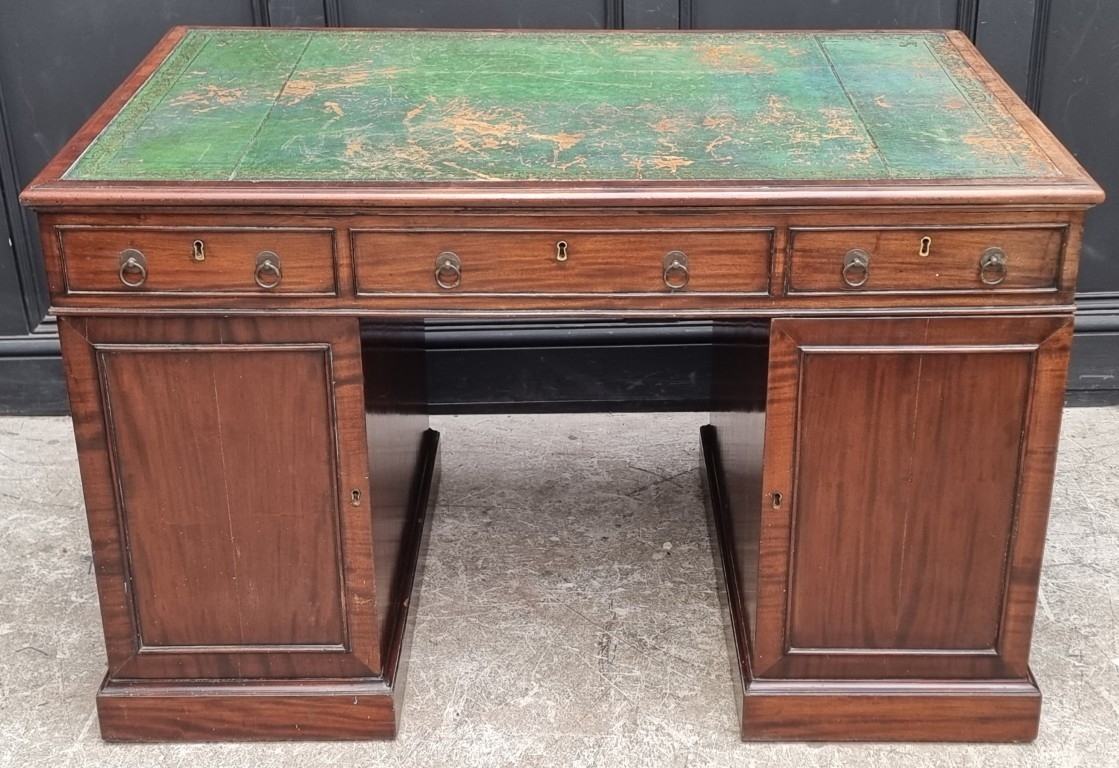 A 19th century mahogany pedestal desk, of free standing form, with dummy drawers and cupboards to the opposing side, the top 121 x 75.5cm.