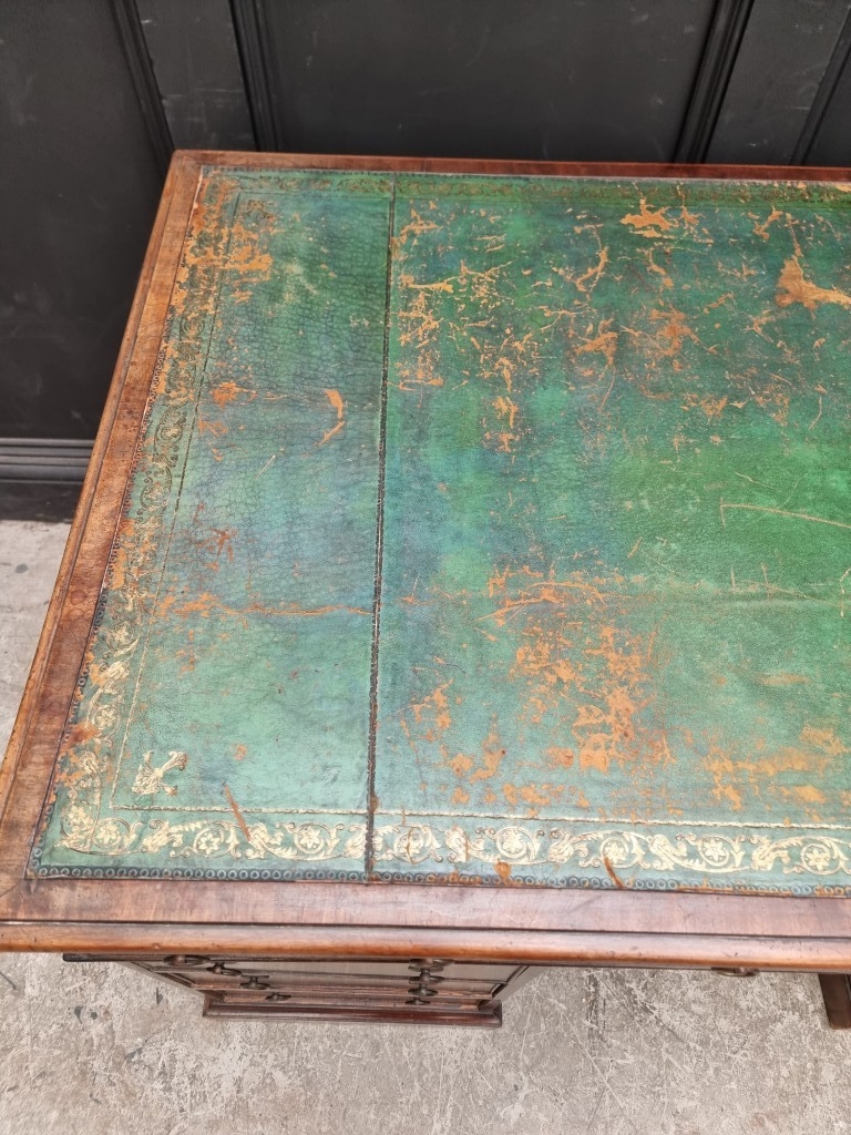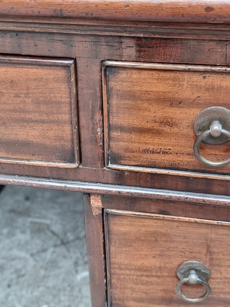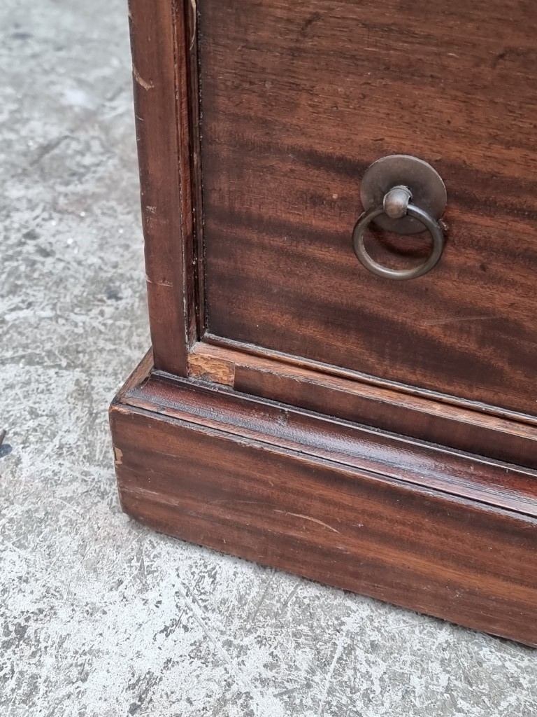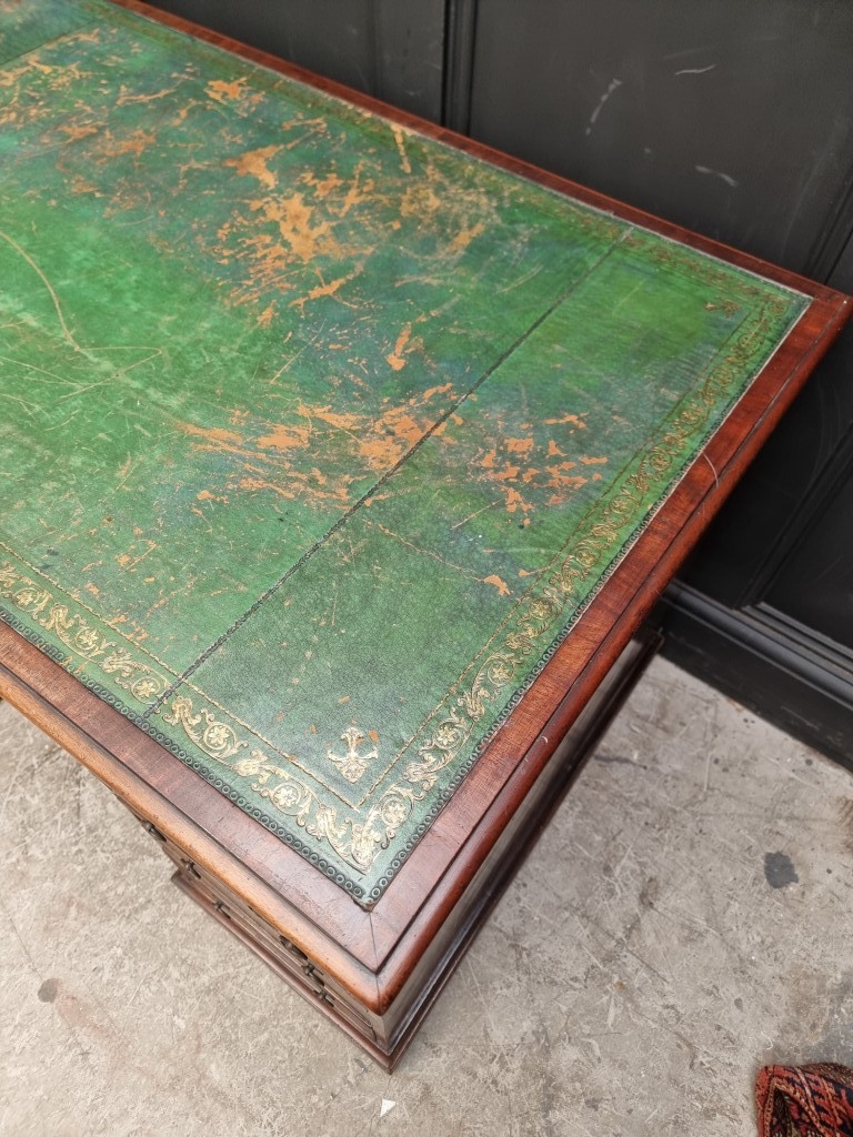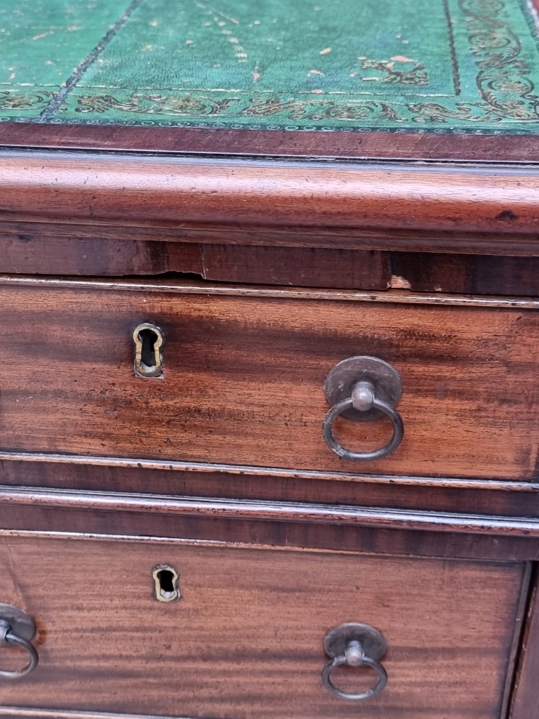 A 19th century mahogany pedestal desk, of free standing form, with dummy drawers and cupboards to the opposing side, the top 121 x 75.5cm.