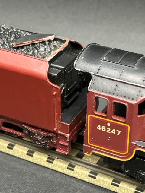 Tender has broken plastic ridge at coal bunker and broken plastic coupling (both shown)