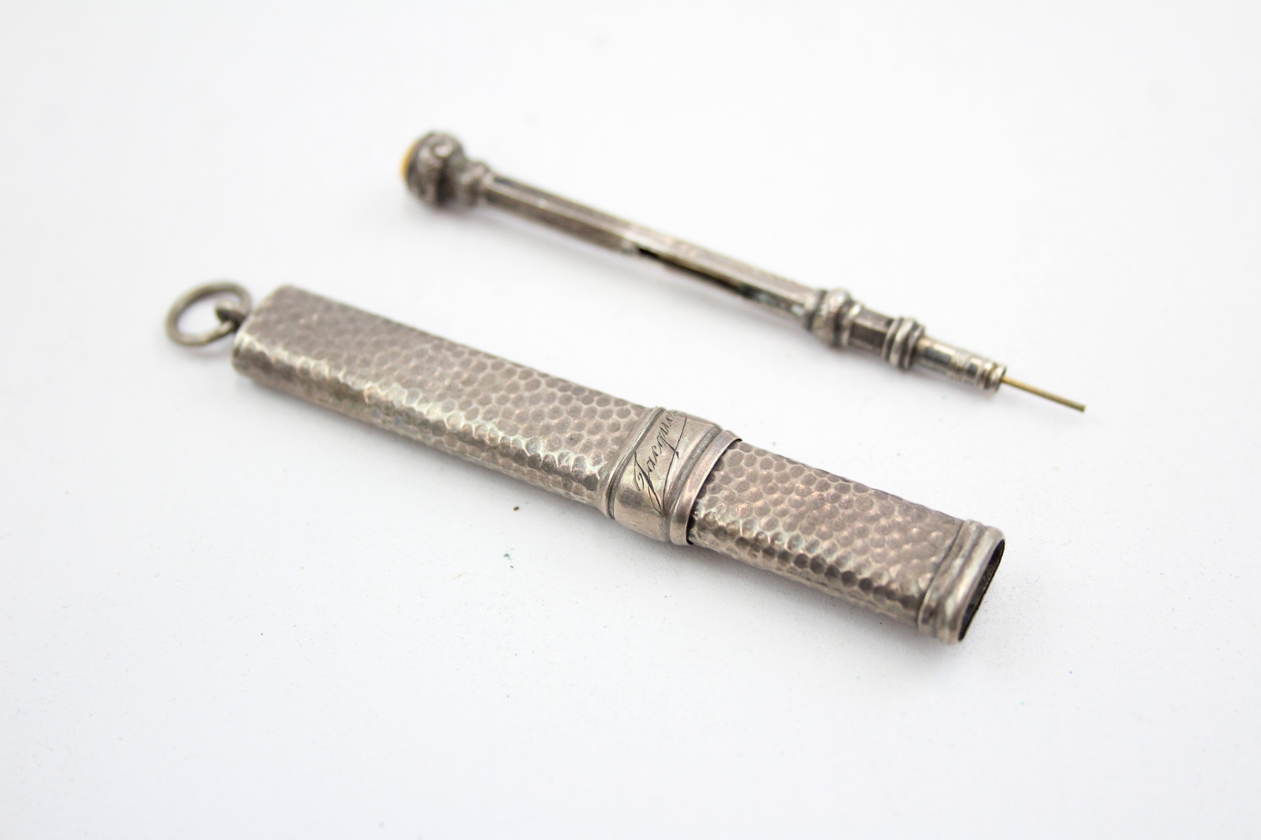2 x Antique / Vintage Stamped .925 STERLING SILVER Pencils Inc Propelling 9g 667021