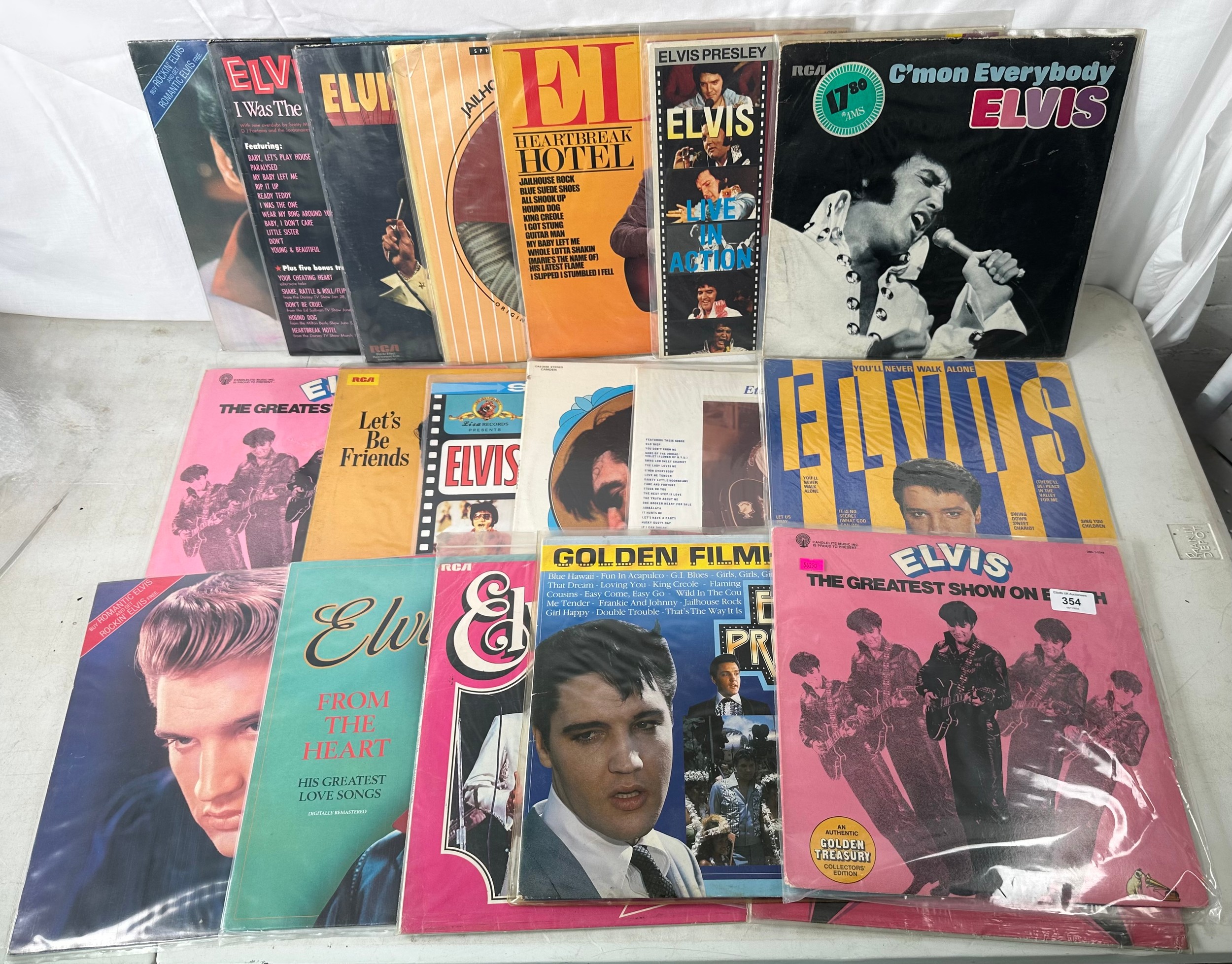 Selection of Elvis records to include The Greatest Show on Earth DML 1-034, That's the way it is LMP 70-01, Lets Be Friends INTS 1103, Golden Film Hits TV-2-LP, Almost in Love CAS-2440 etc