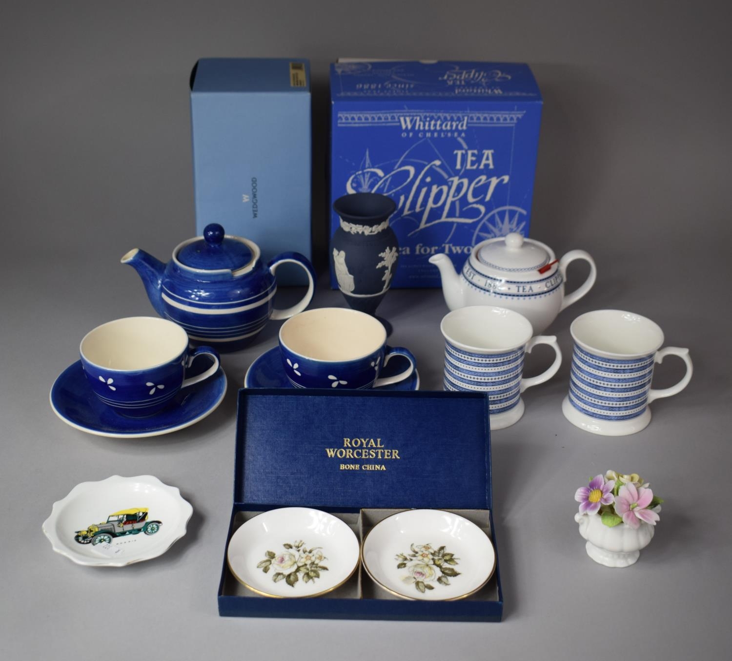 A Collection of Various Ceramics to Include Two Whittard Tea for Two Sets to include Boxed Examples, Boxed Wedgwood Jasperware Vase, Royal Worcester Pin Dishes etc