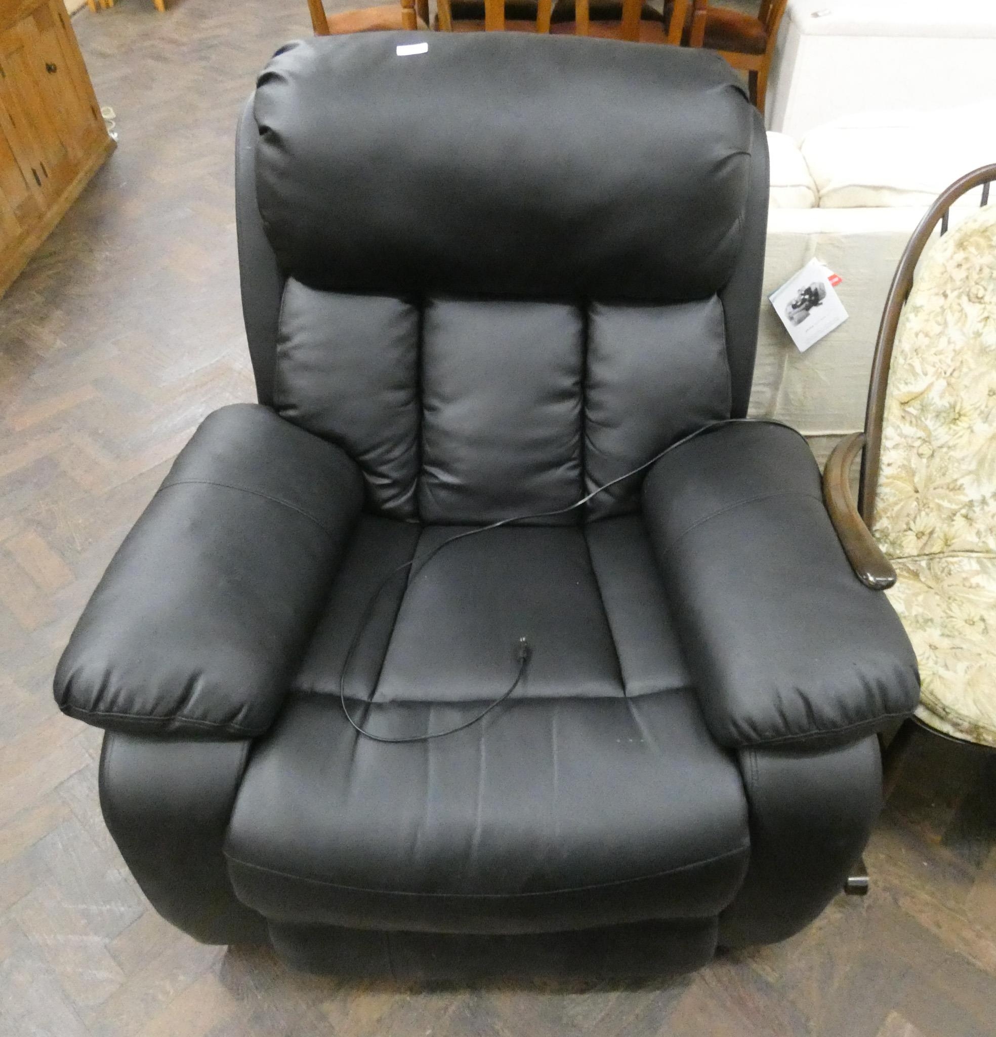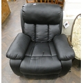 An electric reclining massage easy chair in black faux leather