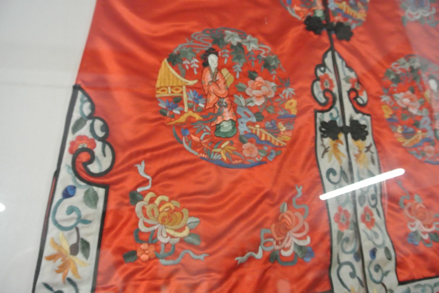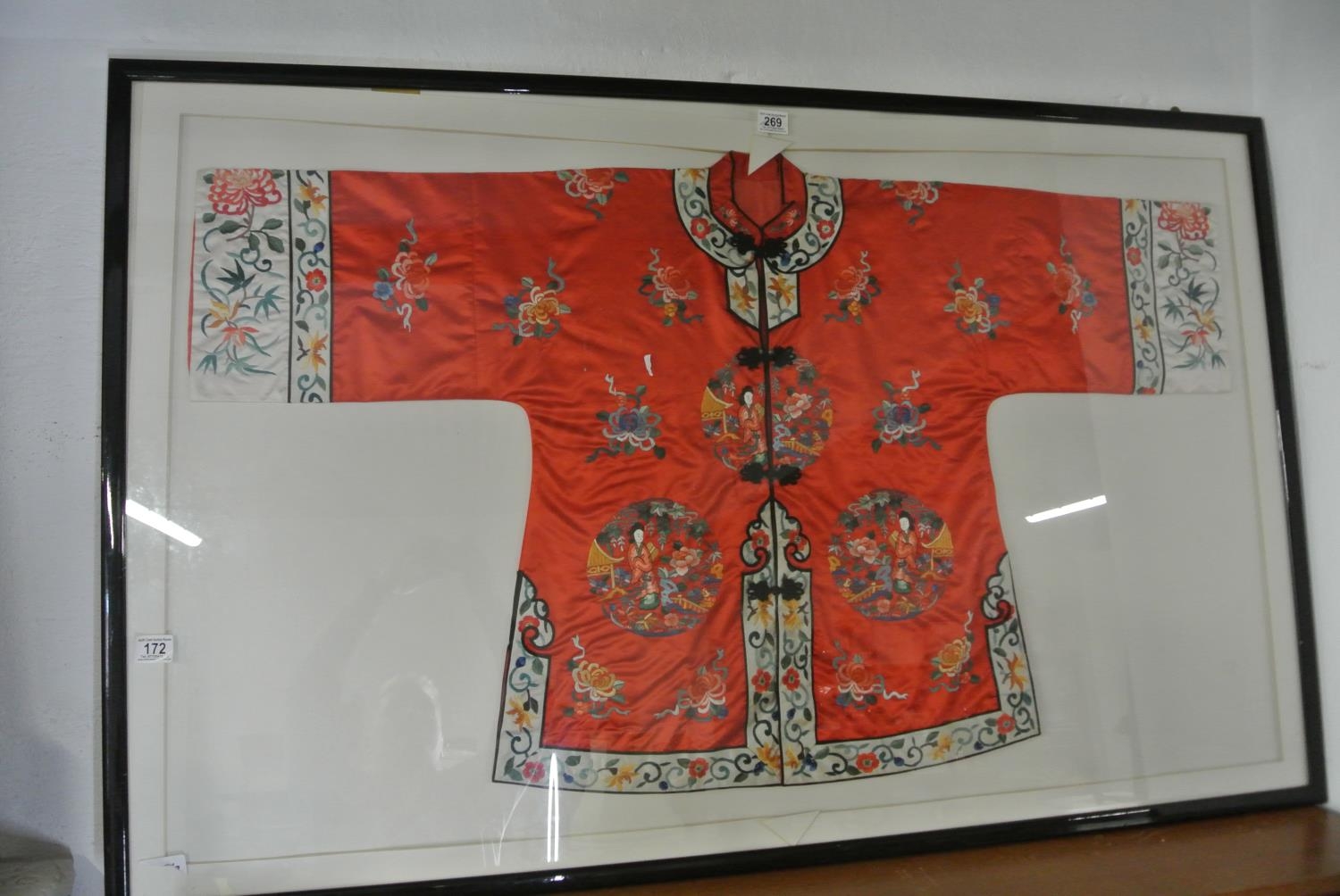 A framed Kimono with stunning needle work.