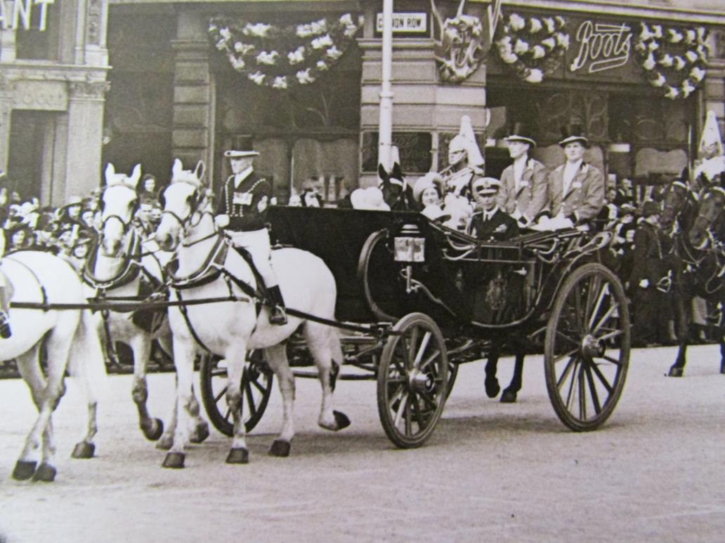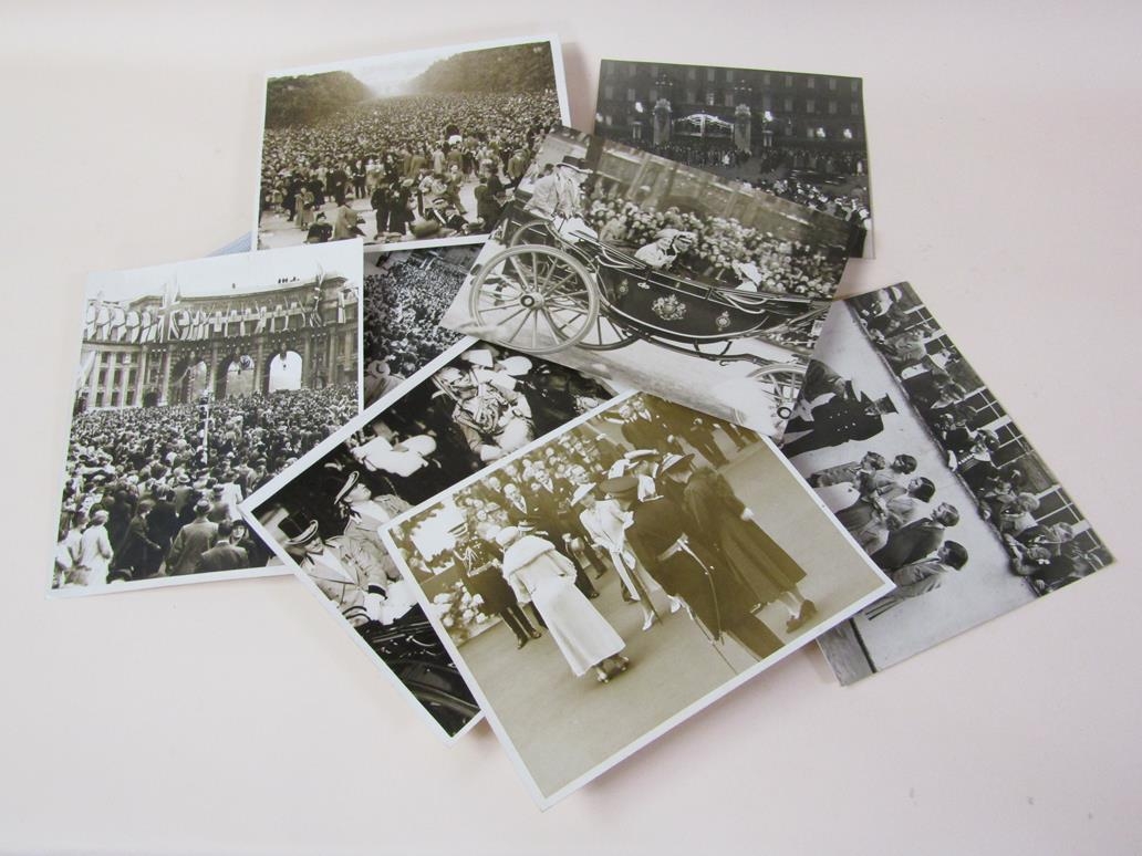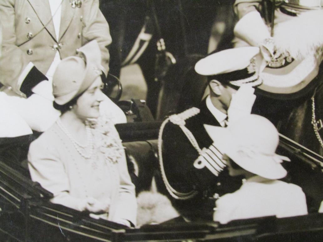 A collection of thirty five black and white press release photographs, stamped and with typed descriptions attached to the reverse, mainly all featuring the Royal family during the late 1930's.