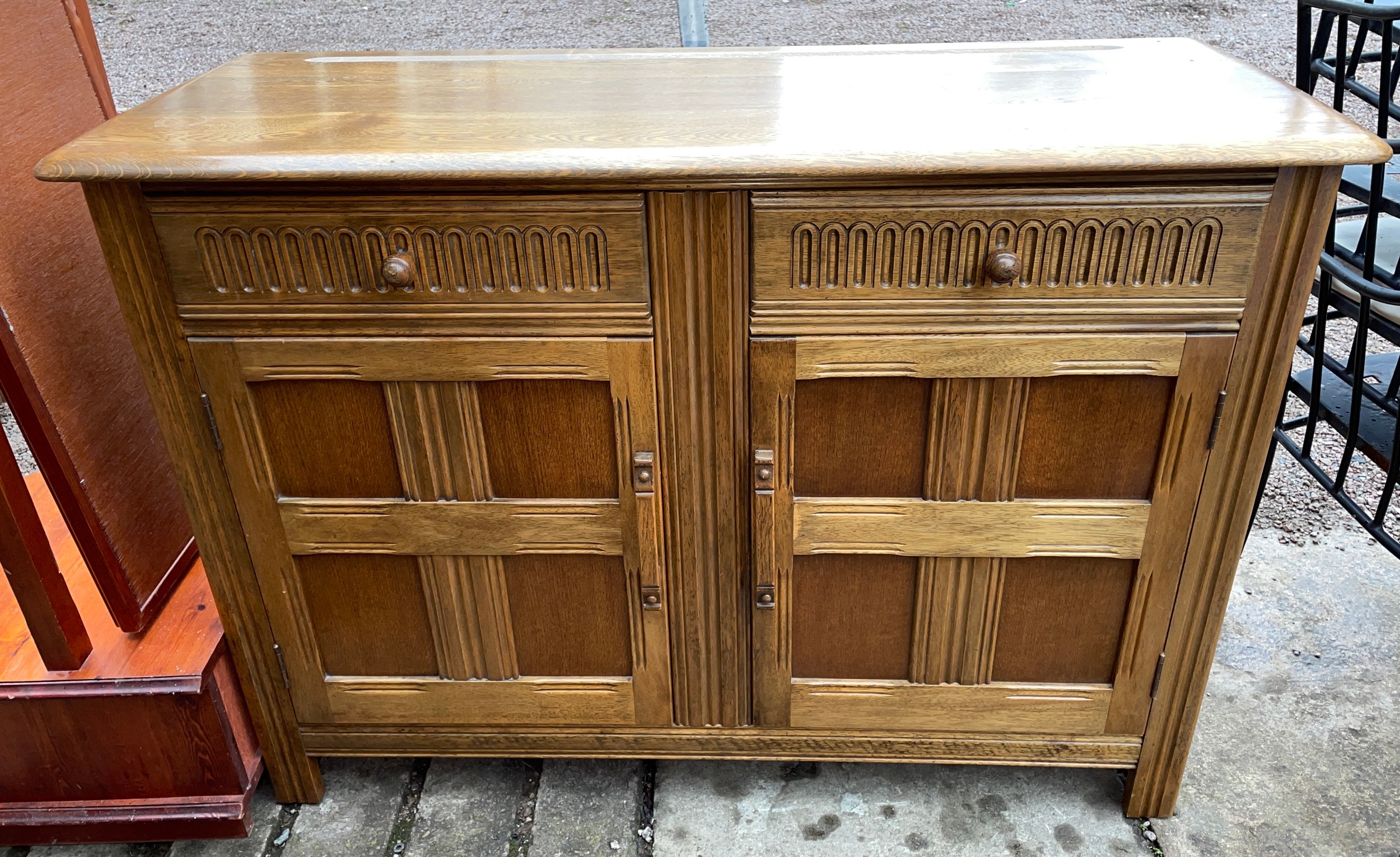 PRIORY STYLE OAK SIDEBOARD WITH LATTICE DOORS
