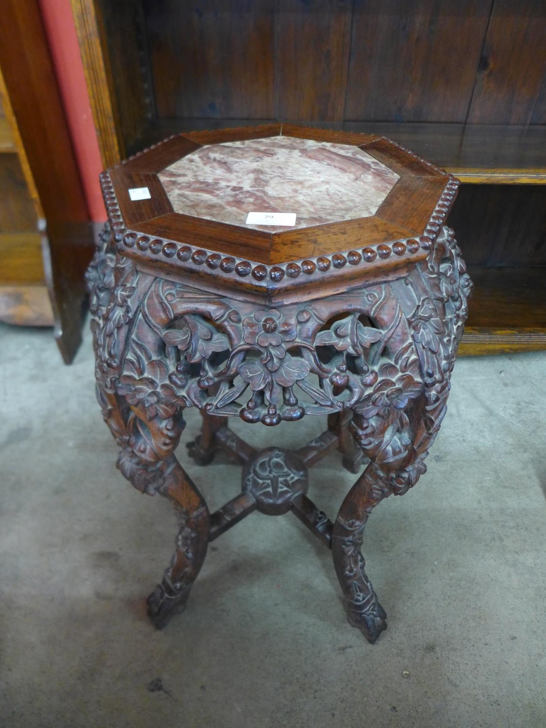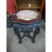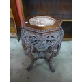 A Chinese marble topped padouk jardiniere stand, 61cms h