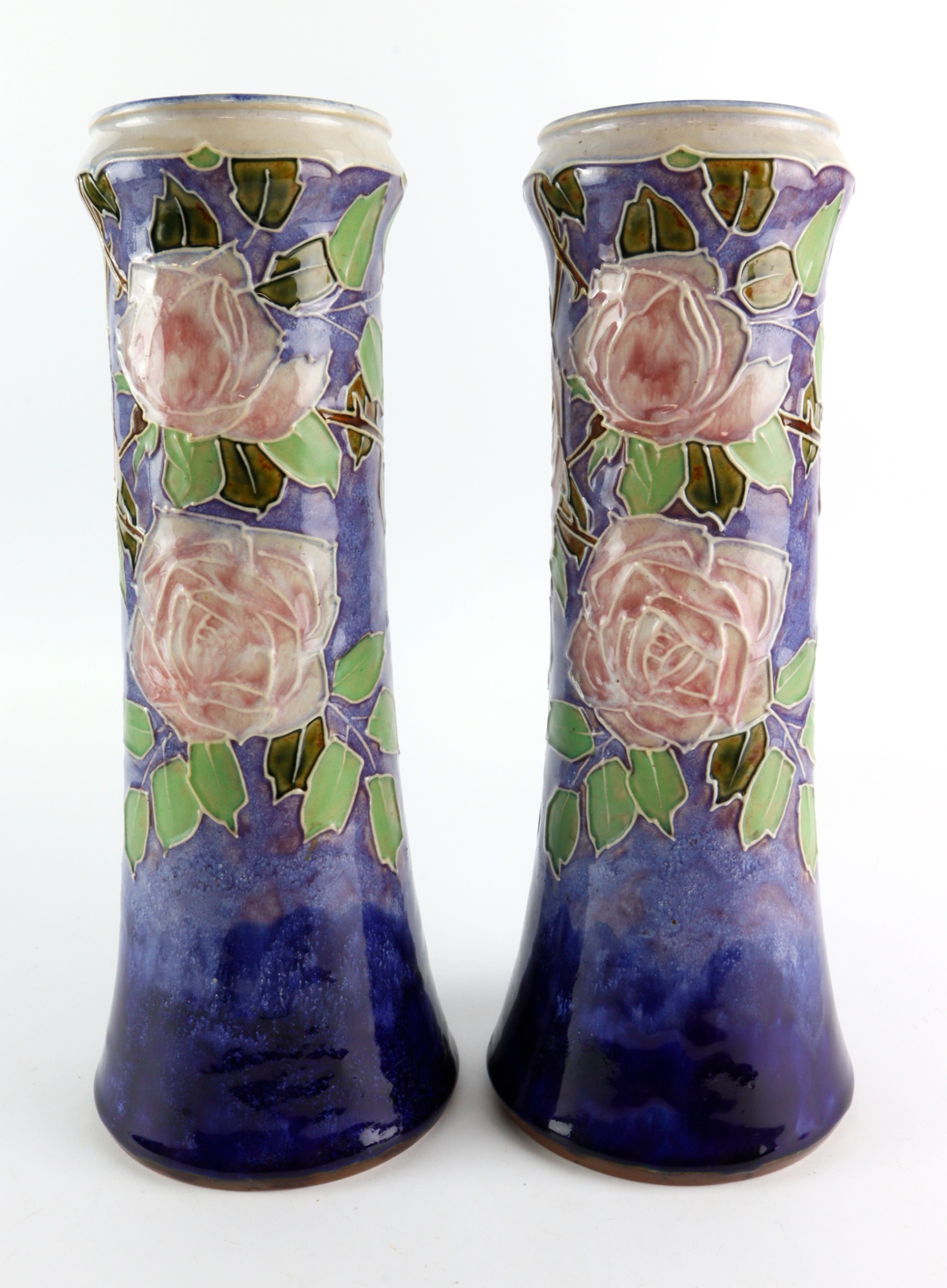 Royal Doulton. A pair of Royal Doulton tall vases, with floral decoration, makers marks to the base, vary slightly in height (32.5cm & 33cm approx.)