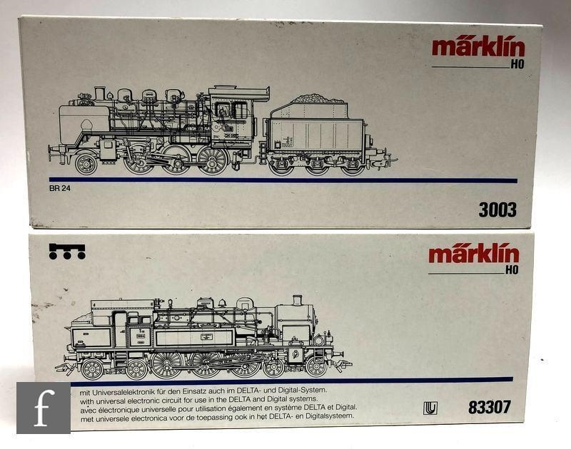 Two Marklin HO gauge 3 rail digital locomotives, comprising 3003 2-6-0 DR Class 24 grey '24 058' locomotive and 83307 4-6-4T Prussian grey and black class T18 '1994' locomotive, both boxed. (2)