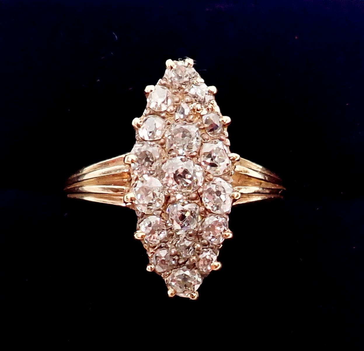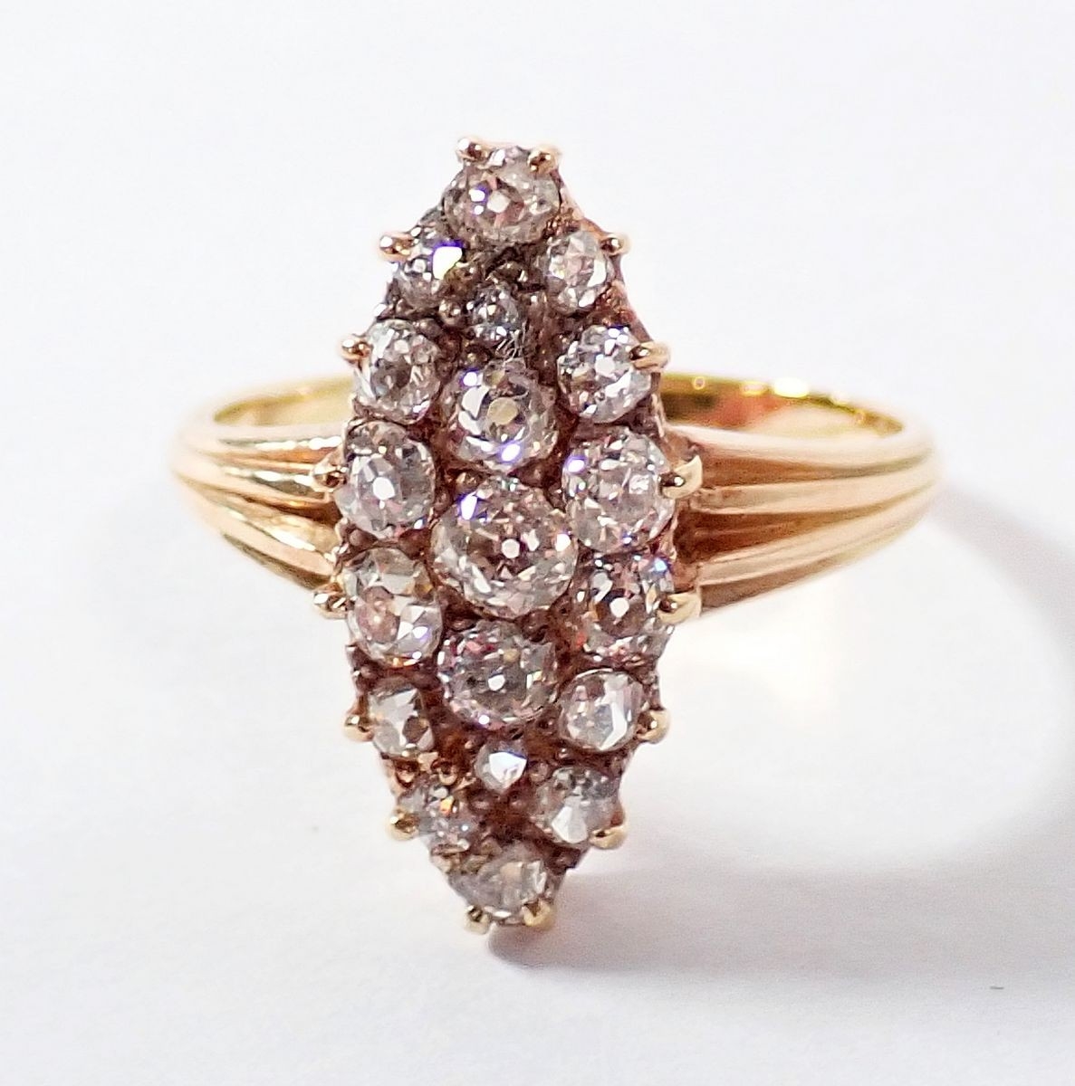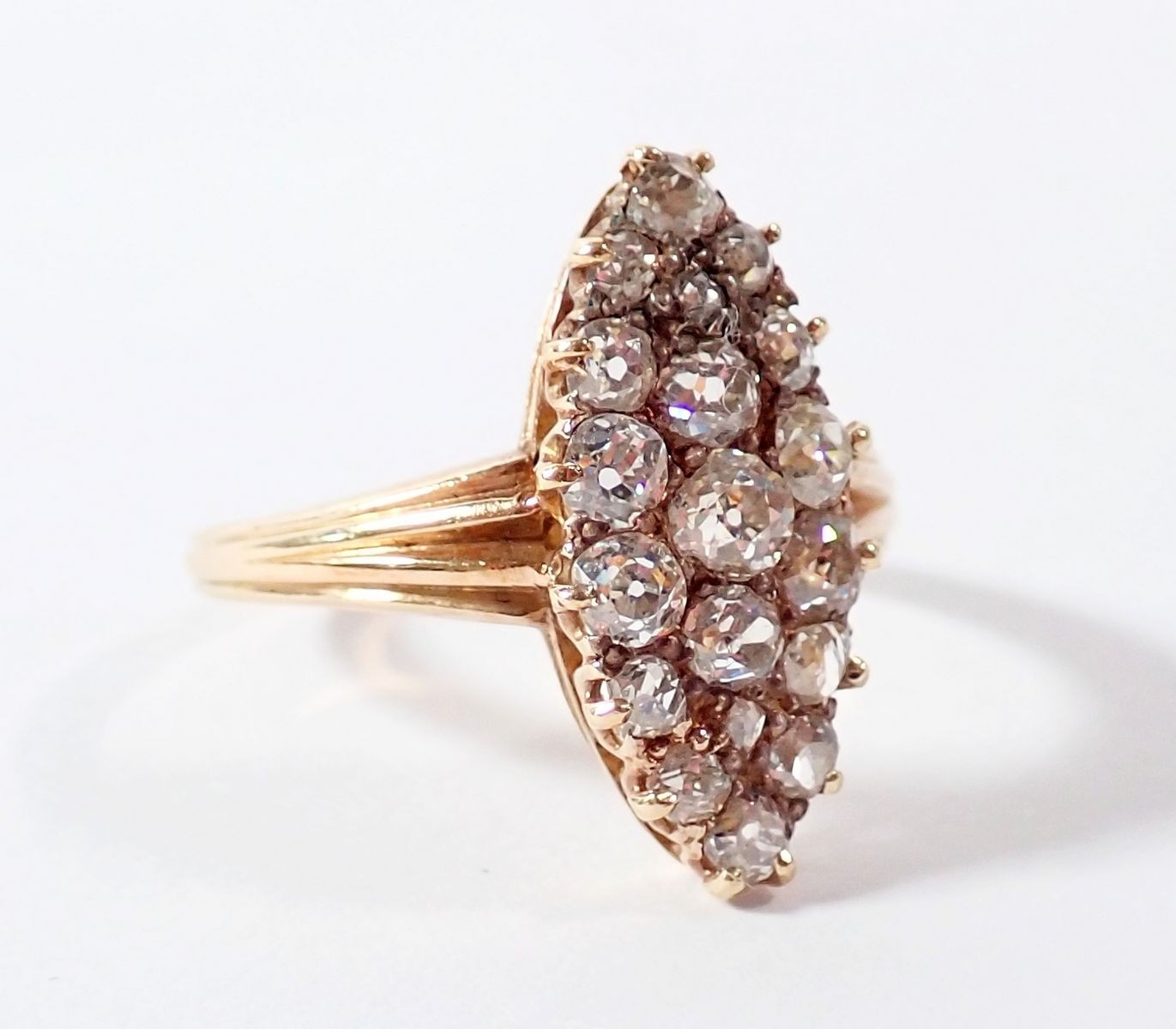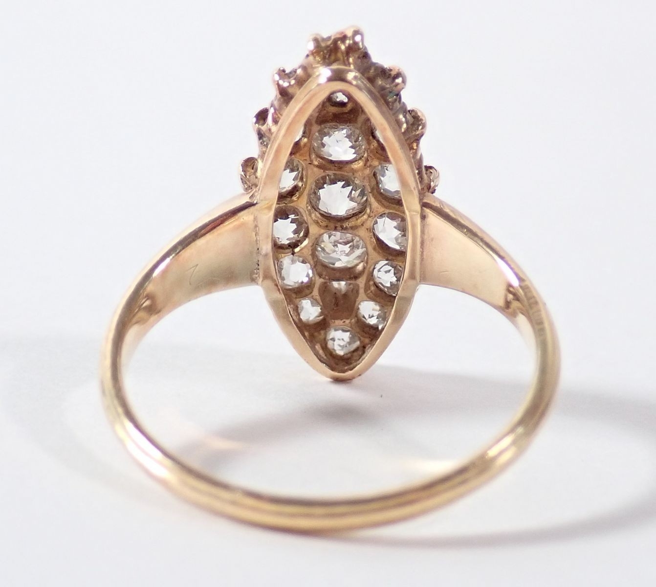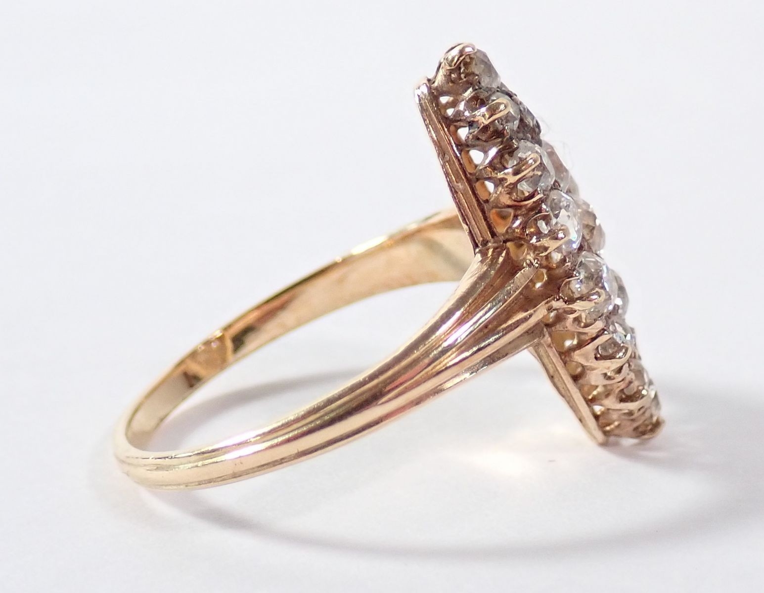 An 18 carat gold marquise diamond ring, size N-O, 3.4g