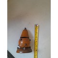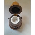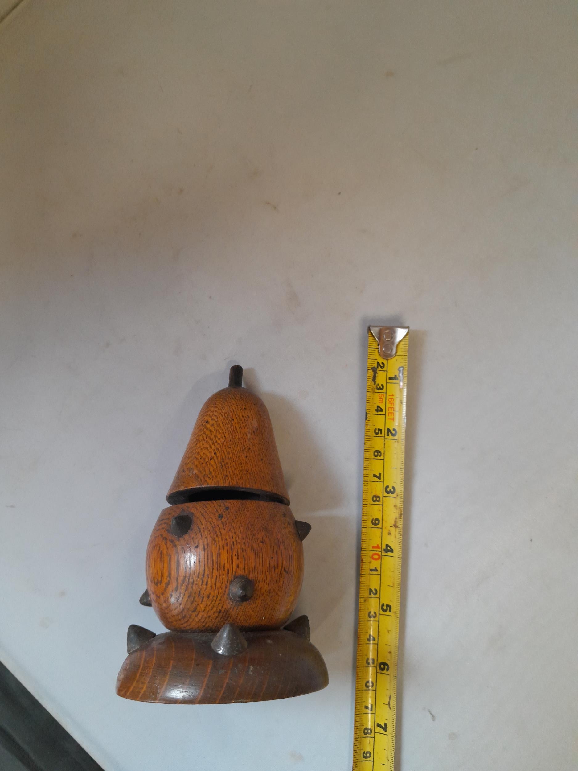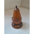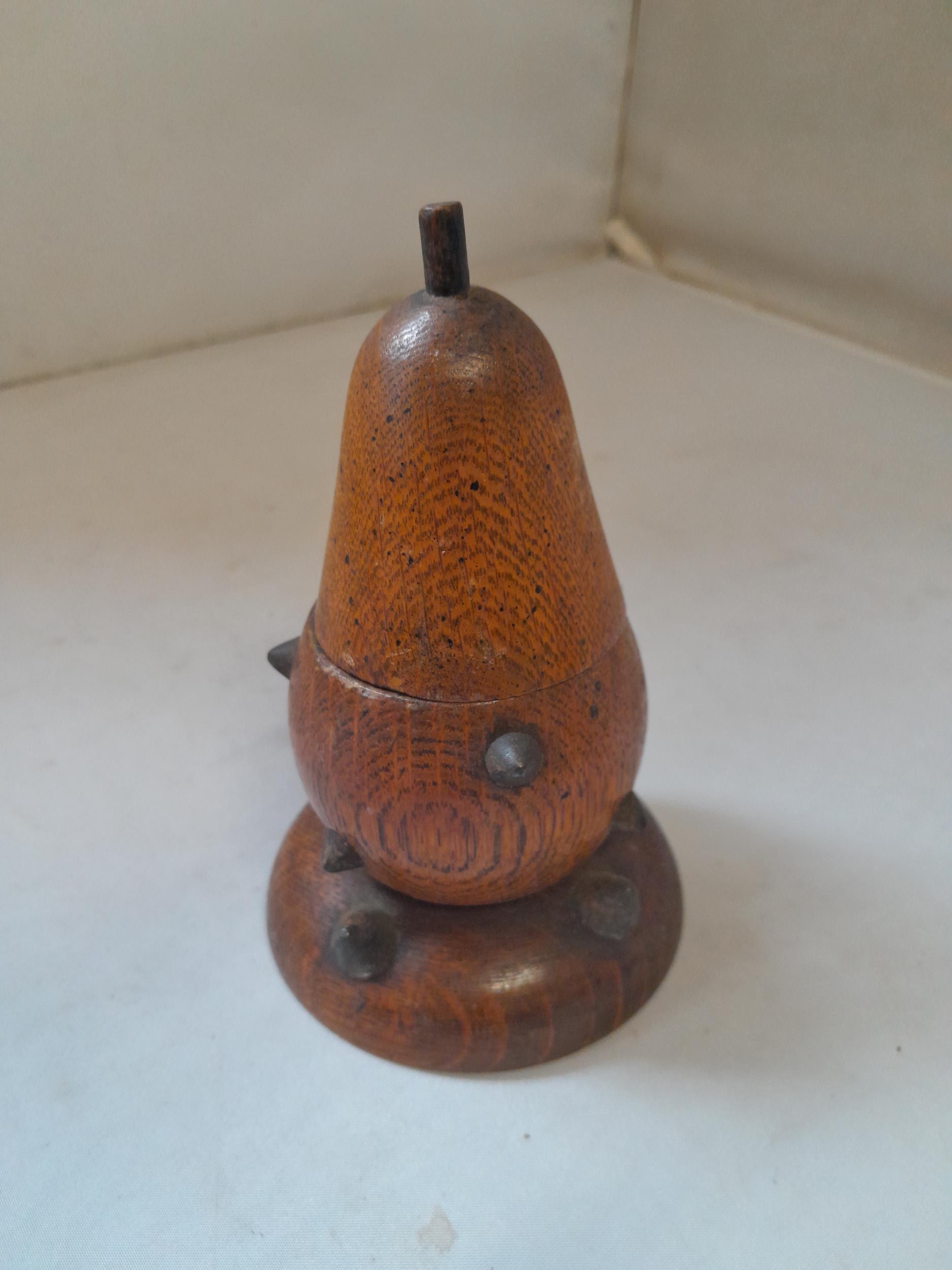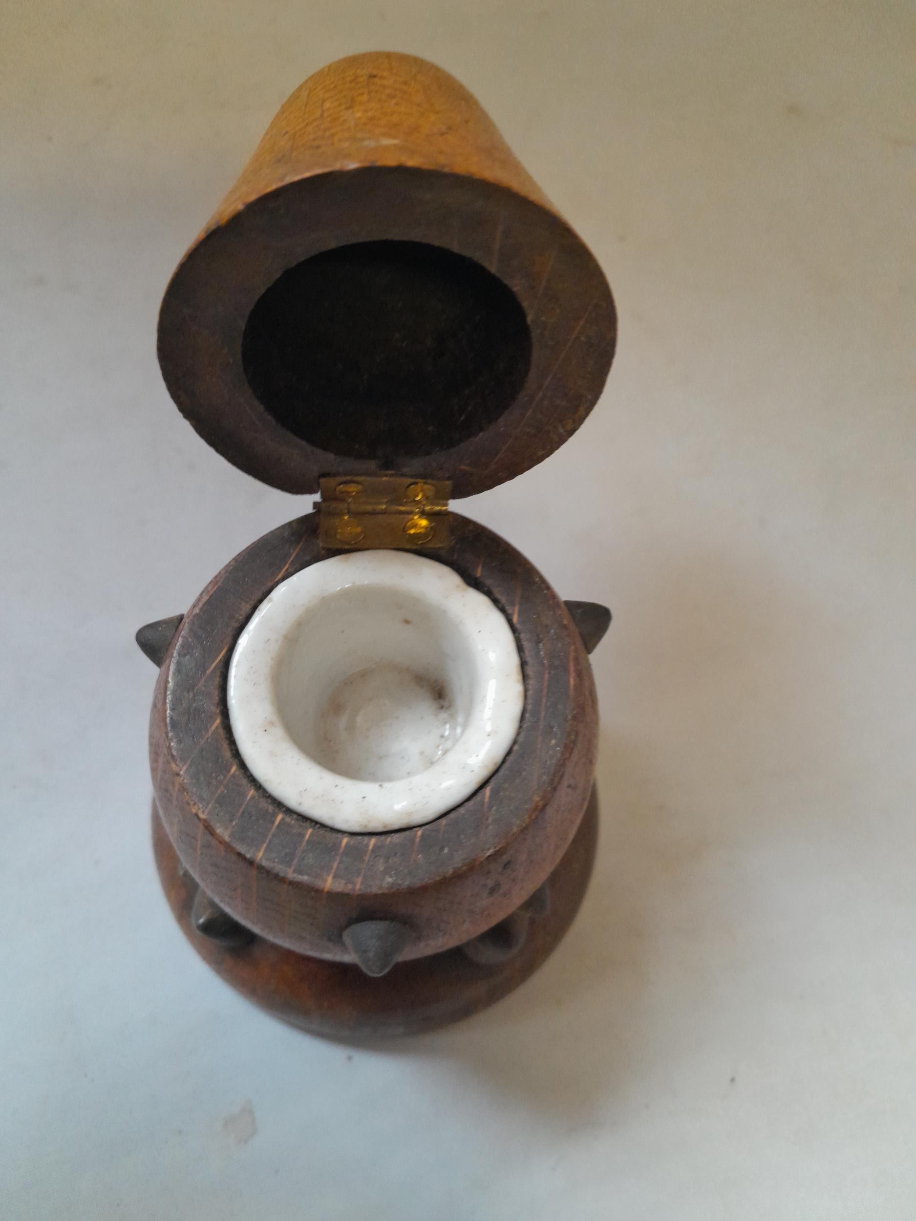 Late Victorian oak inkwell with milk glass liner modelled as a studded pear