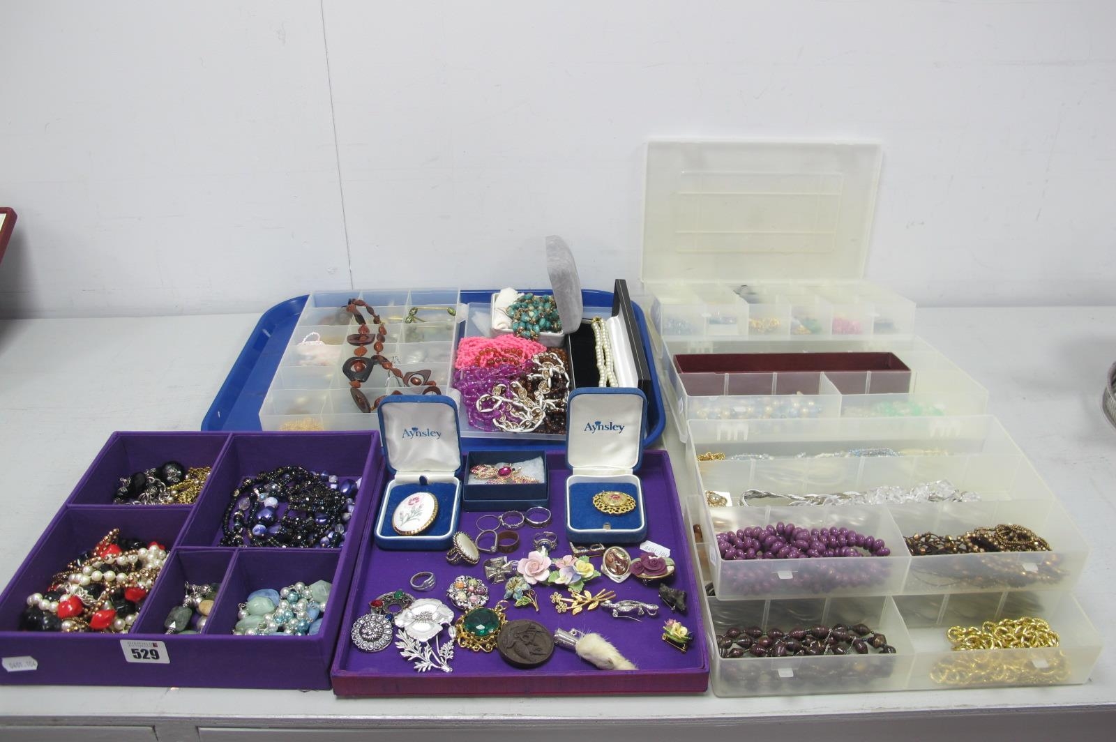 A Large Mixed Lot of Assorted Costume Jewellery, including beads, necklaces, chains, brooches, dress rings, imitation pearls, etc, contained in plastic sectioned boxes.