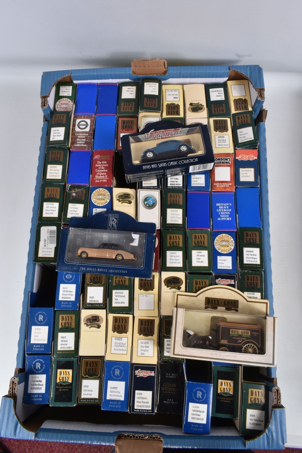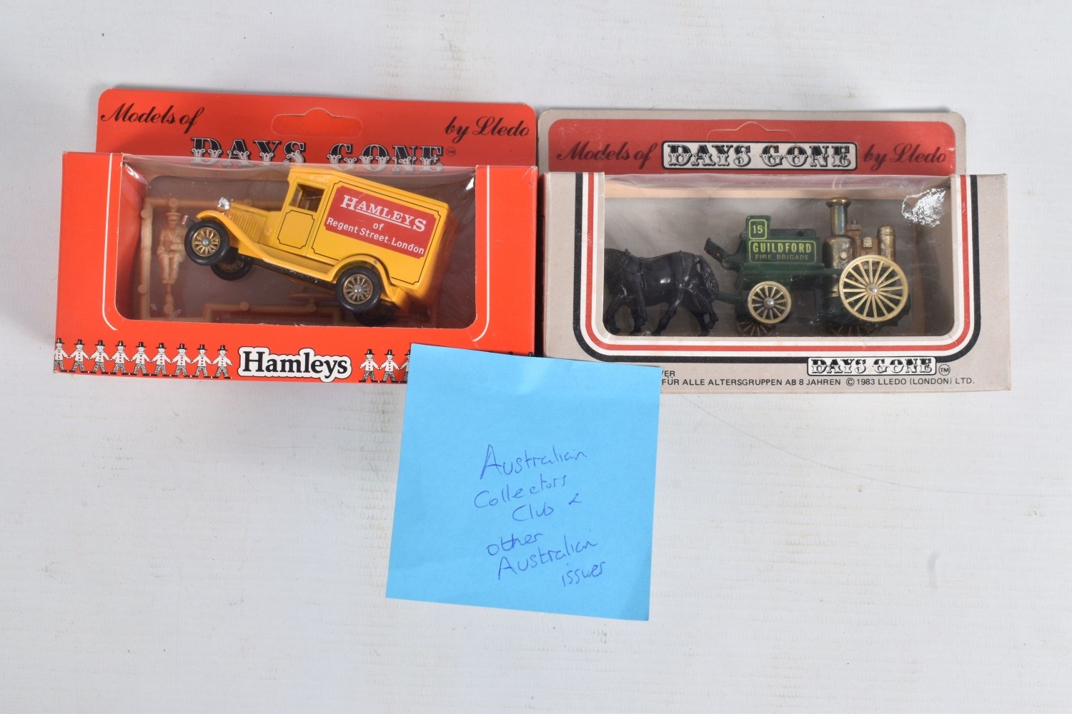 TWO TRAYS OF BOXED LLEDO DAYS GONE MODEL VEHICLES, some models included are Australian collectors club models and other Australian issues, some models included are Tate & Lyle Sentinel steam wagon numbered DG88005, Pickfords Foden Steam Wagon DG91001, Yello Bentley 1930 Bentley 4.5 litre blower numbered SL46003, Imperial airways 1926 Dennis delivery van numbered DG66012, Green morris traveller 1960 Morris minor traveller numbered 65000, Cambrian railway 1920 model T ford van numbered 6119 and more, also included are a small selection of Corgi The village cameo collection, all models appear to be in good condition however contents has not been checked for their completion, housed inside their plastic casing and outer cardboard boxes, outer boxes are in good condition some with light wear to sharp edges and corners