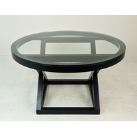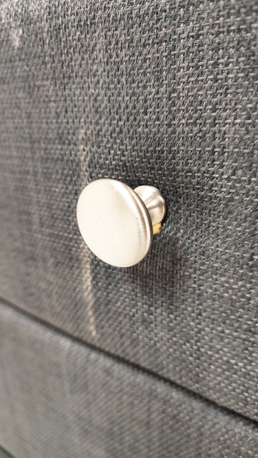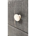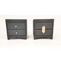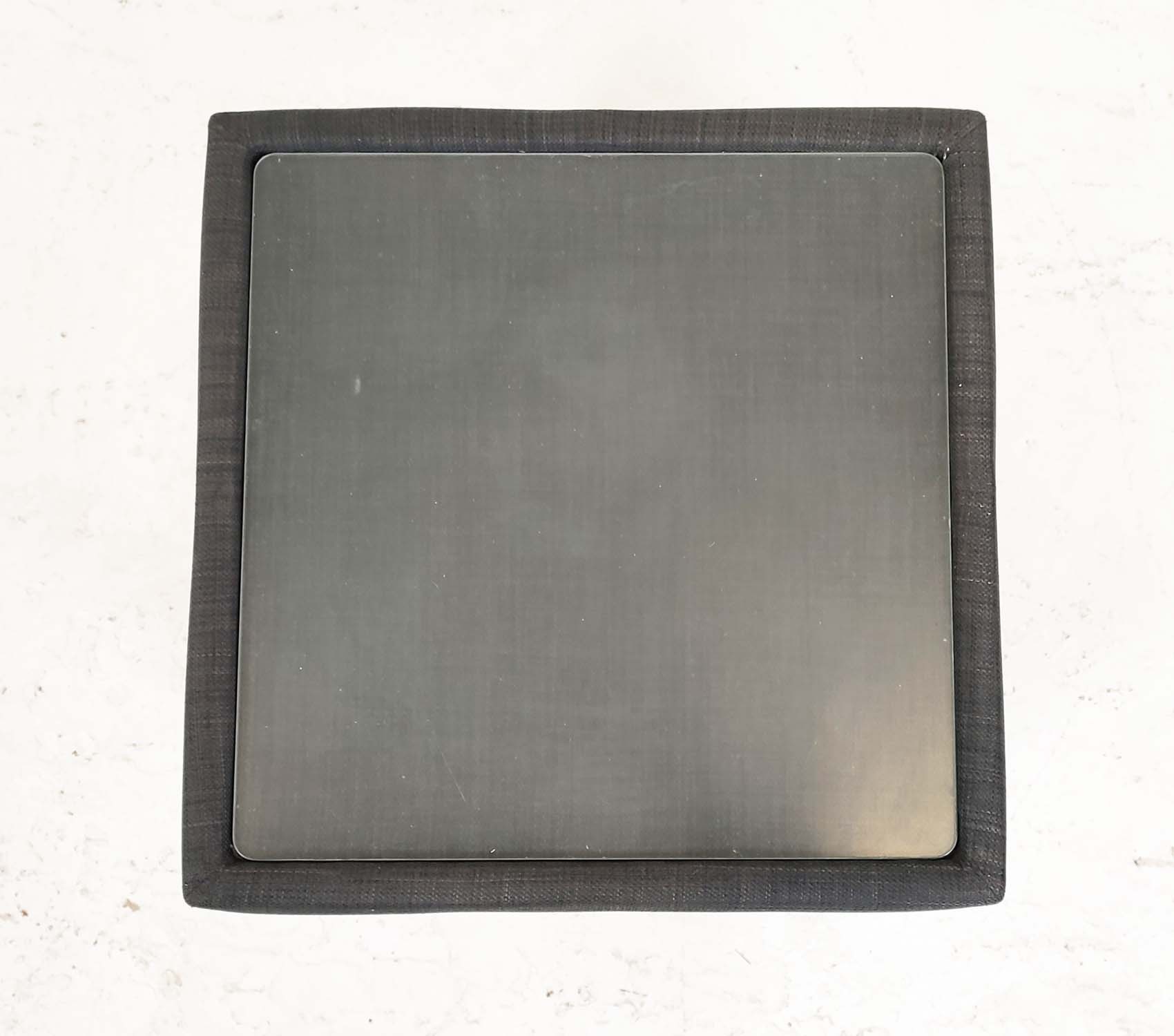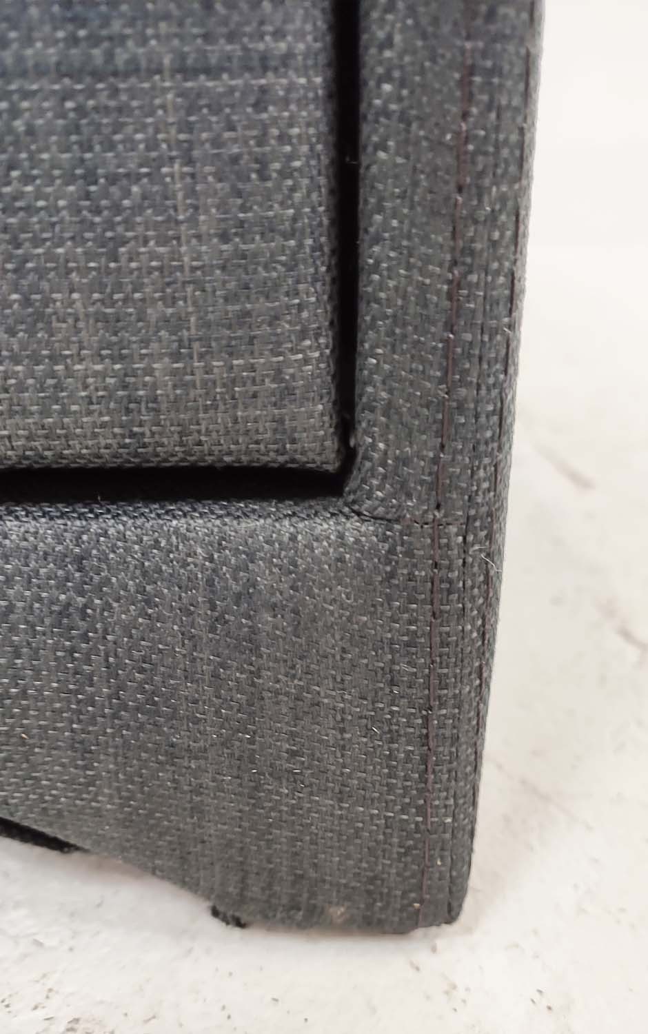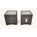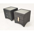 BEDSIDE CHESTS, a pair, grey fabric with two drawers and glass tops, 49cm H x 45cm W x 45cm D. (2)