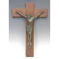 An early 20th century verdigris bronze corpus Christi, mounted on an oak cross, 46cm x 30cm overall