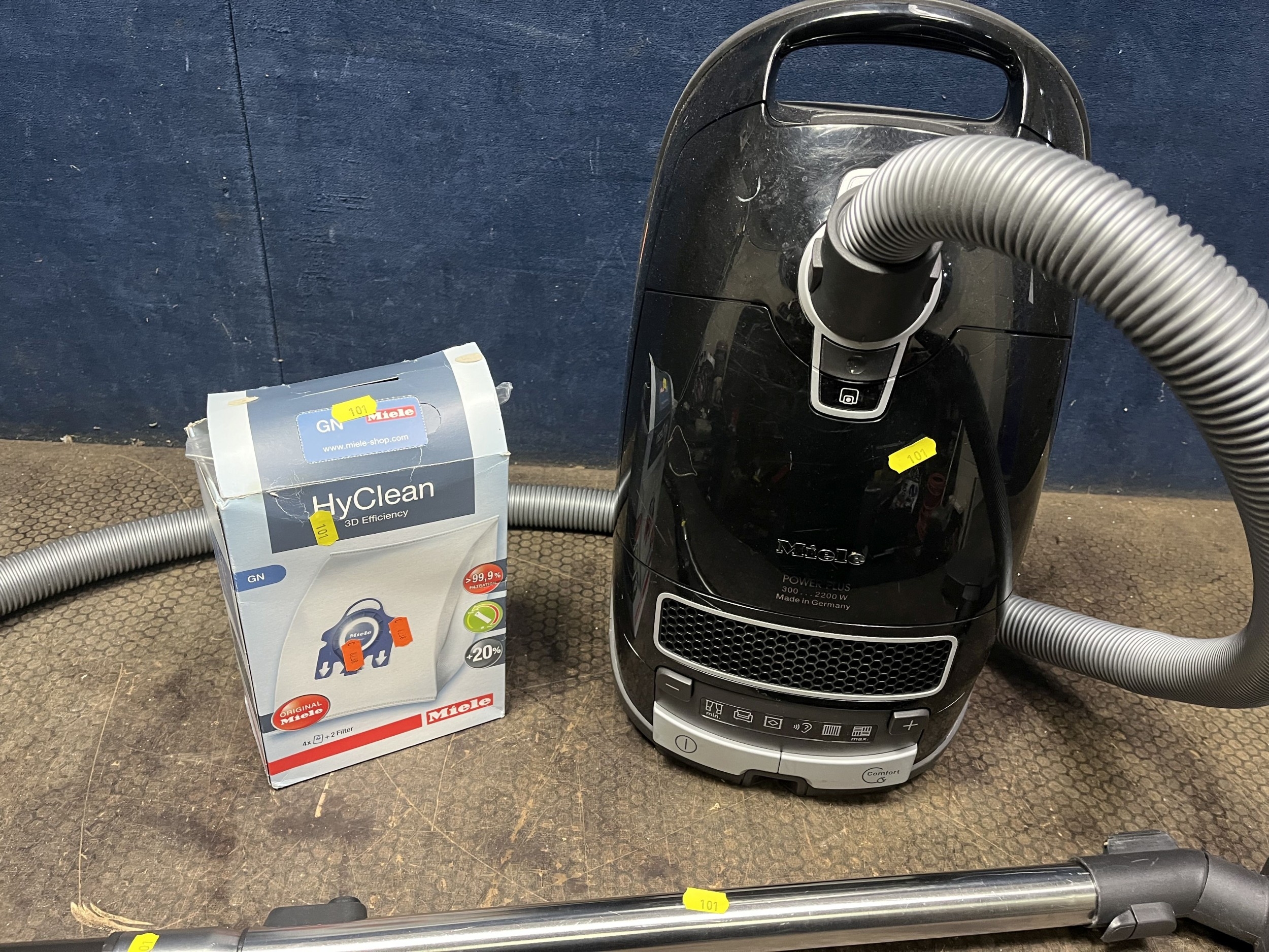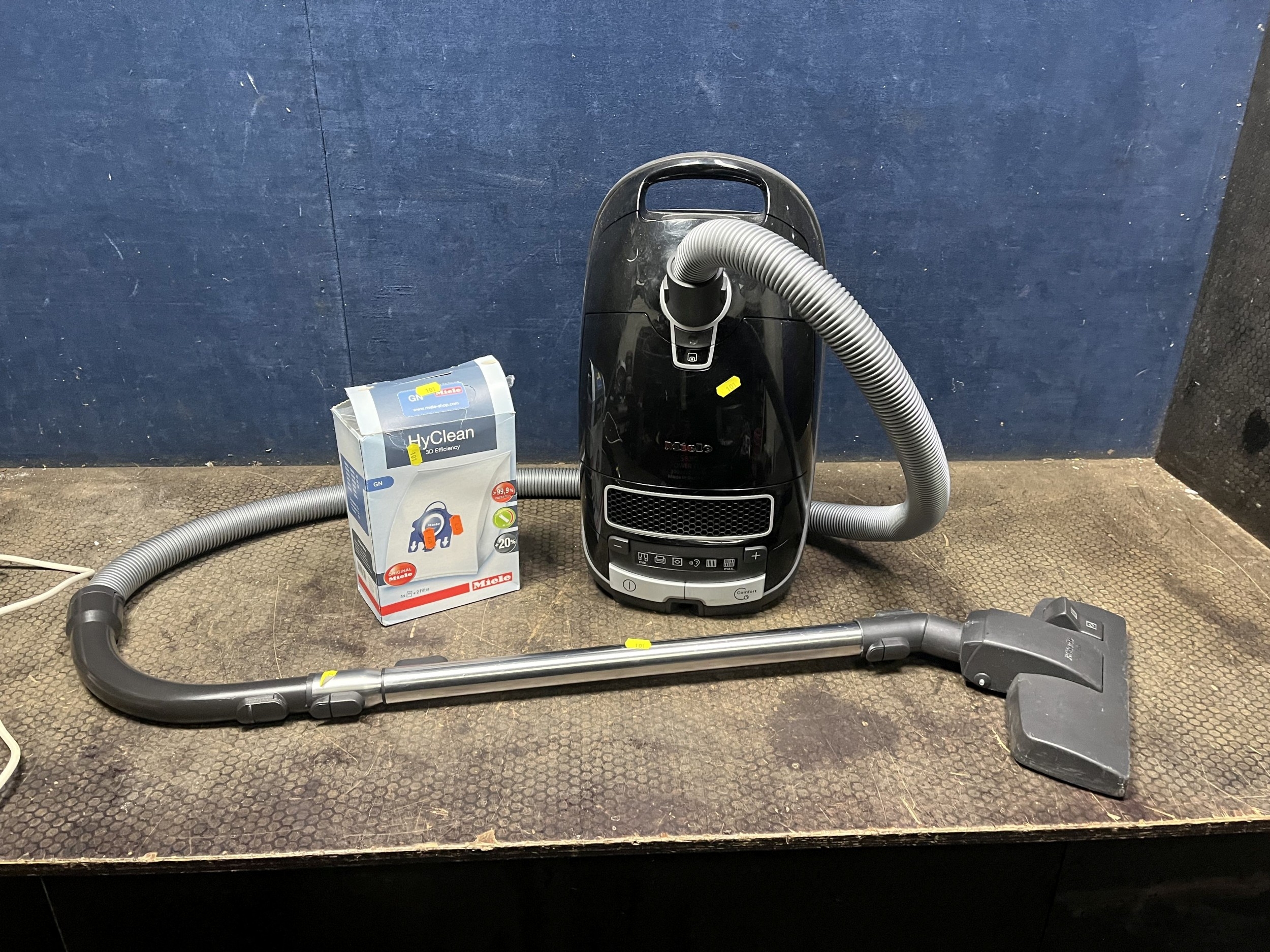 A MIELE S8310 POWER PLUS VACUUM CLEANER (PAT pass and working) and a box with two spare bags