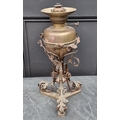 An Arts & Crafts brass and steel oil lamp, total height 51cm.