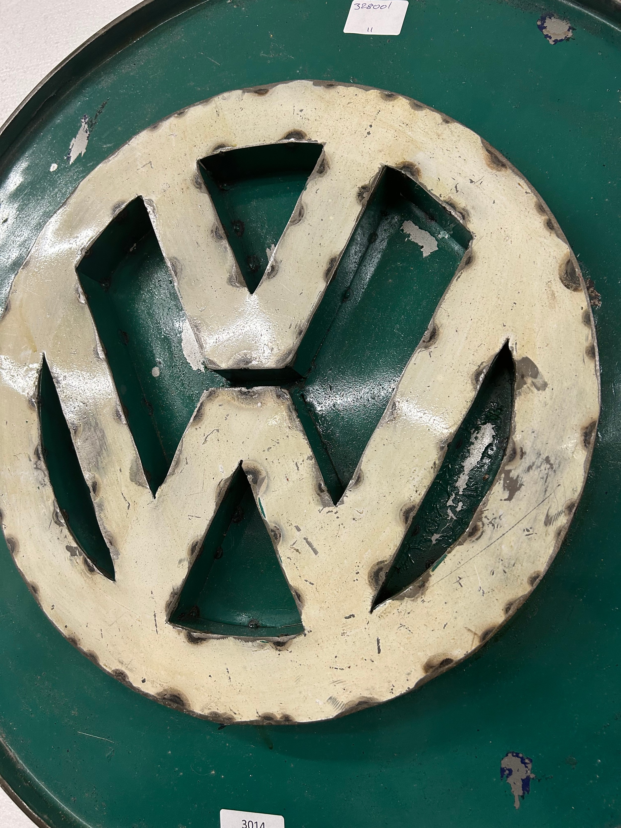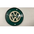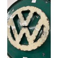 A metal plaque bearing the VW inscription