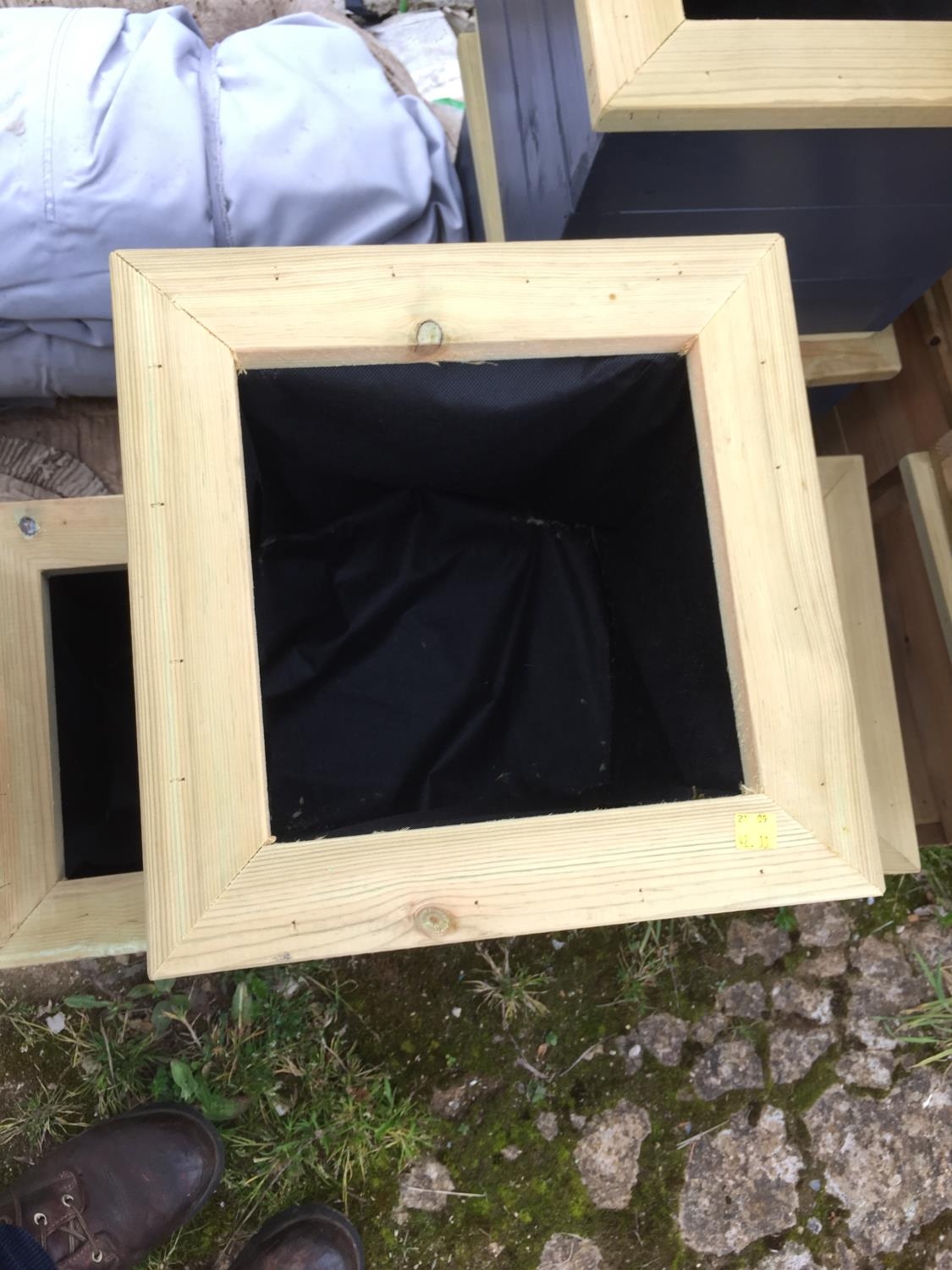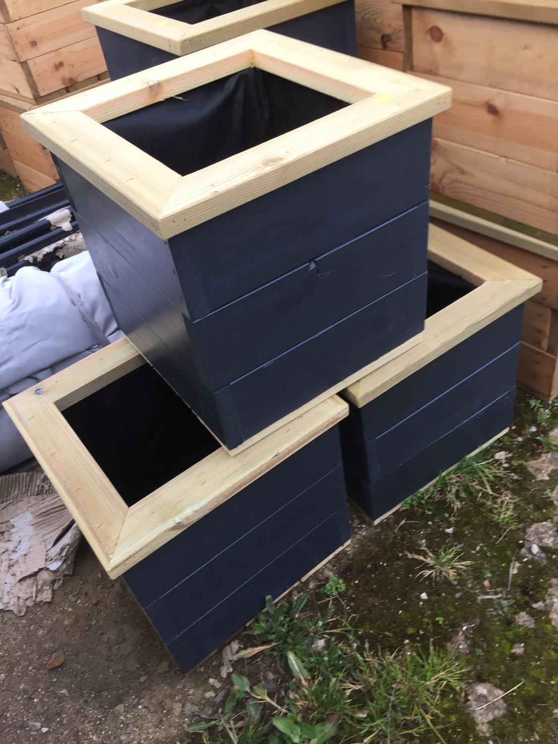 3 GRAY WOODEN PLANTERS