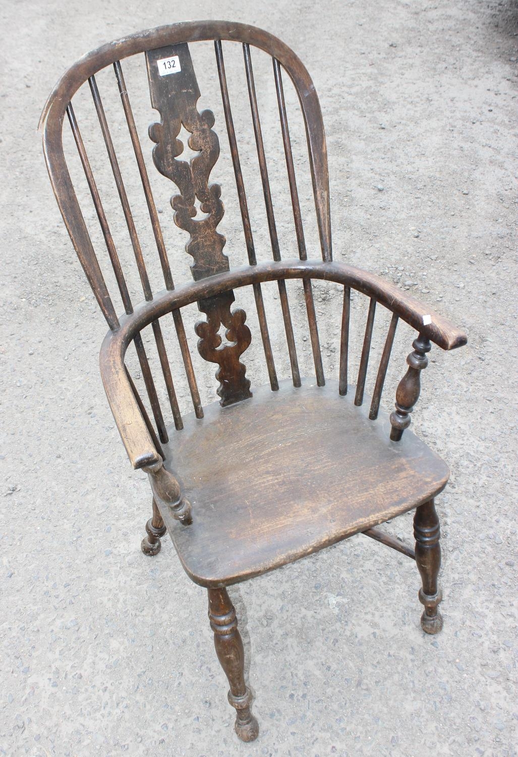 Antique farmhouse Windsor armchair with hoop back