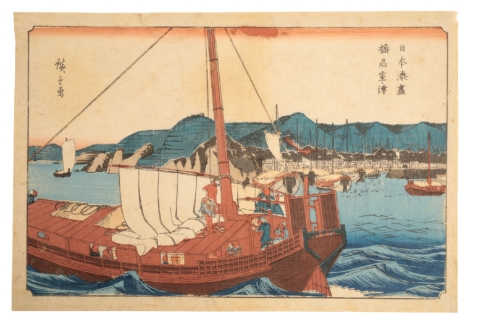 UTAGAWA HIROSHIGE I (1797-1858) Muronotsu Harbour in Banshu Province, from the series of Famous Harbours of Japan 1840-1842, woodblock print on paper, 25cm x 37cm.