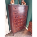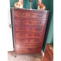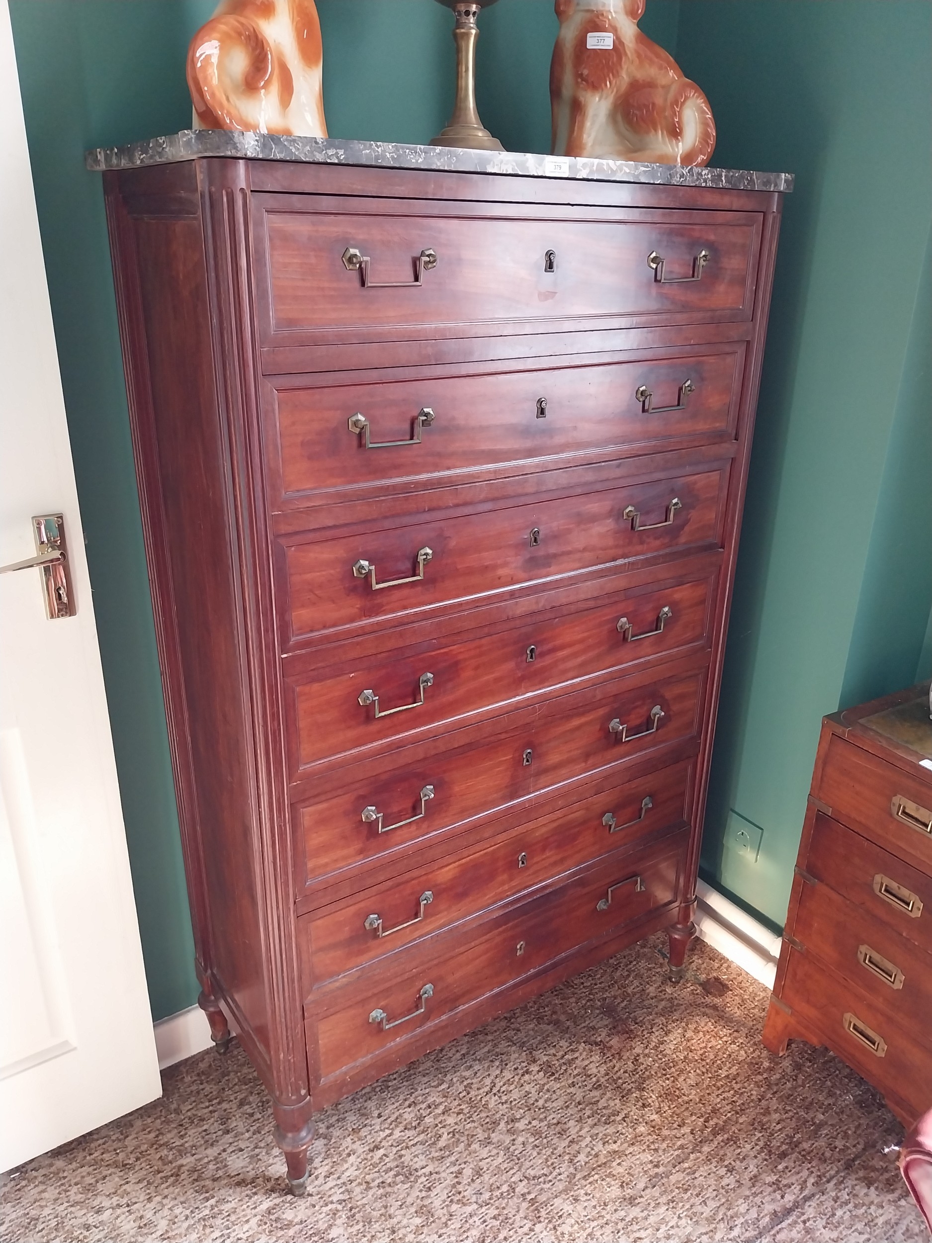 19th. C. French mahogany tallboy, the marble top above seven long drawers, raised on turned legs. { 160cm H X 97cm W X 43cm D }.