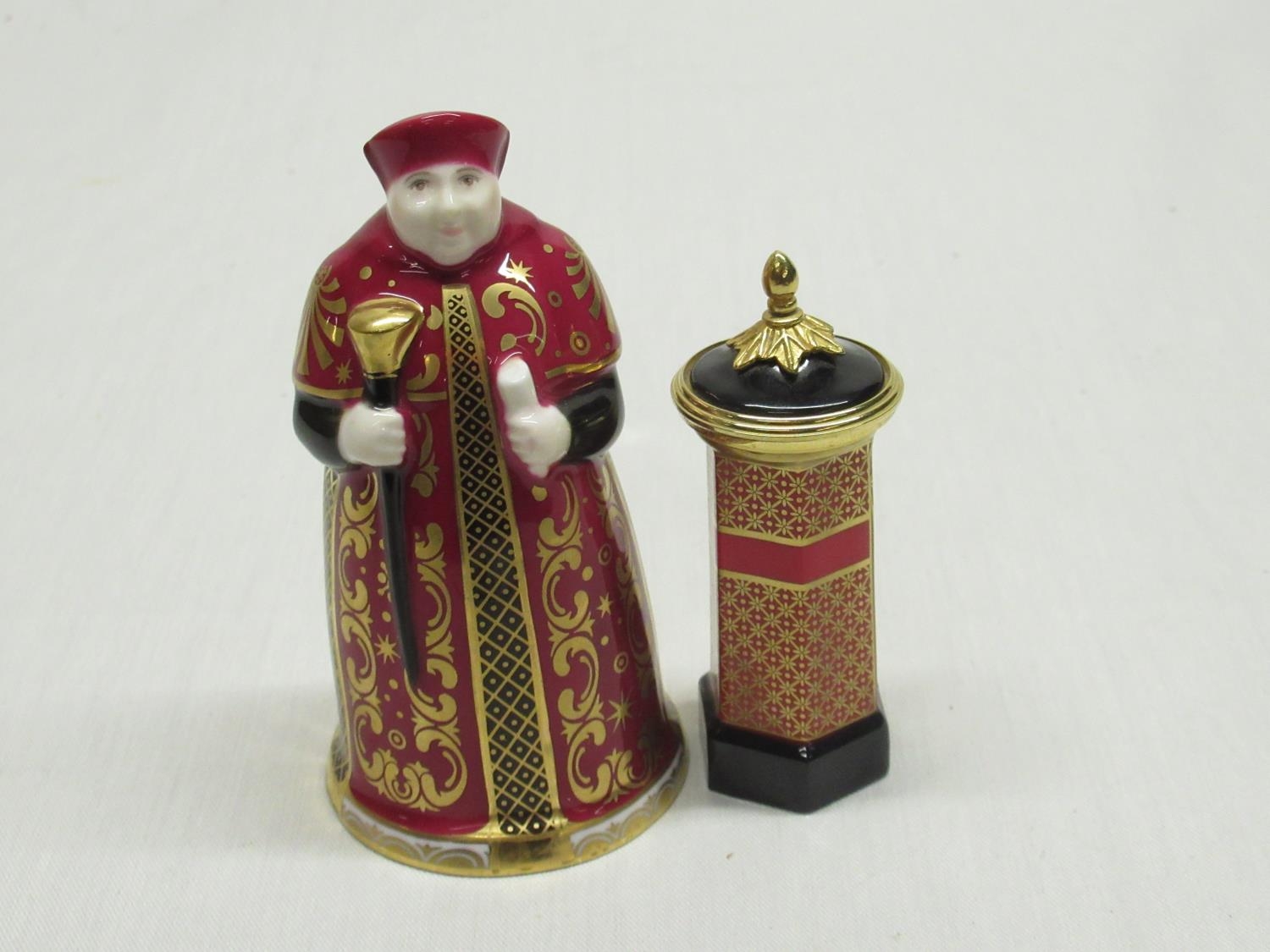 Royal Worcester Cardinal Wolsey Ltd Ed. 318/500 candle snuffer H10.5cm, Royal Worcester Connoisseur Collection Victorian letterbox H9cm (2)