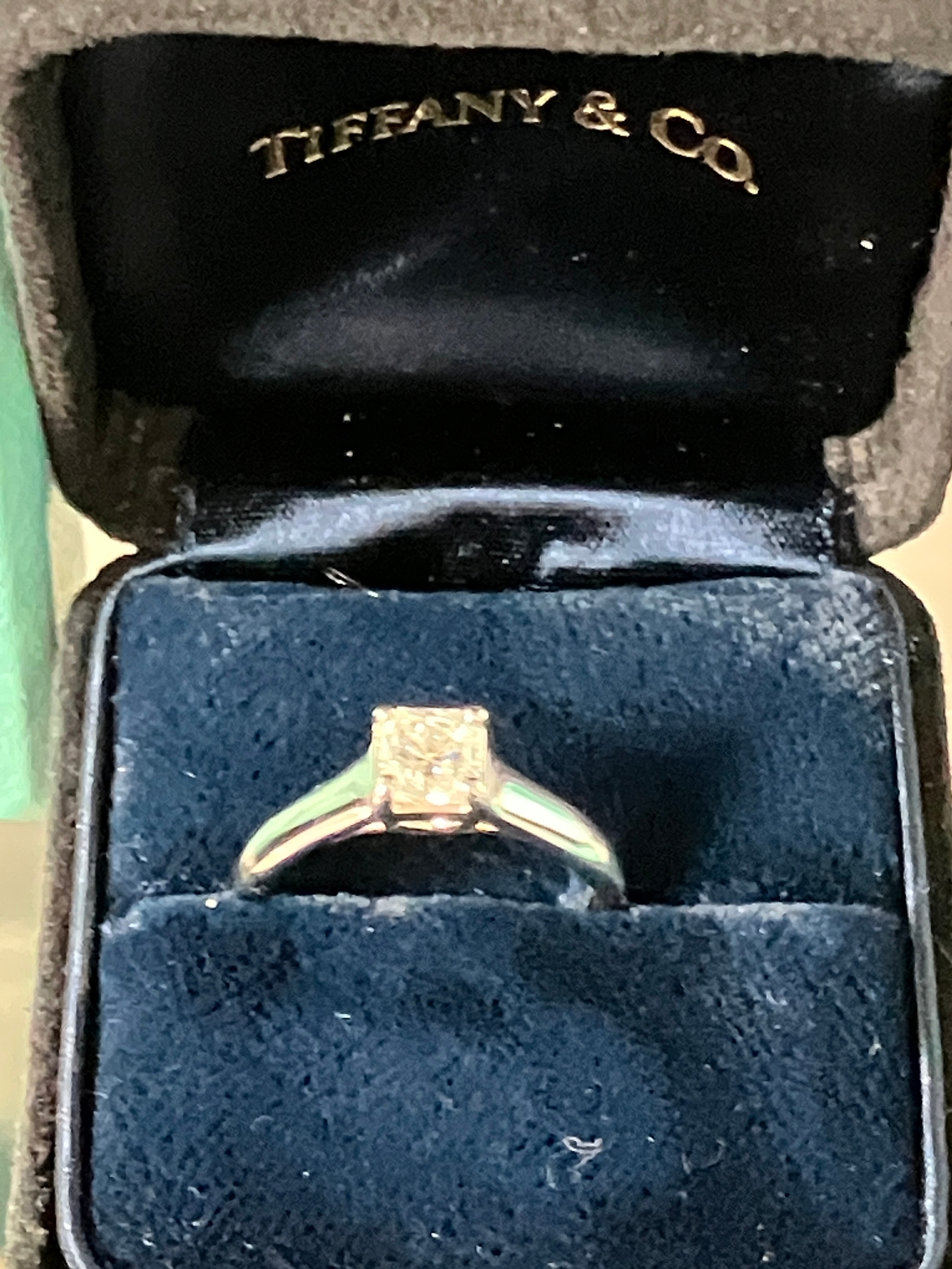 Tiffany & Co Lucida solitaire .65 diamond ring in platinum. Not available anymore. comes with Tiffany box and certificate. would be about £9k to buy today.