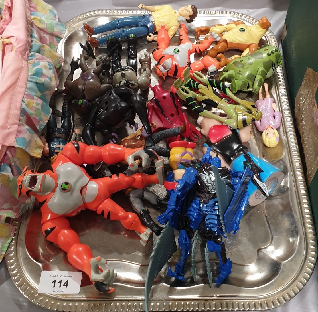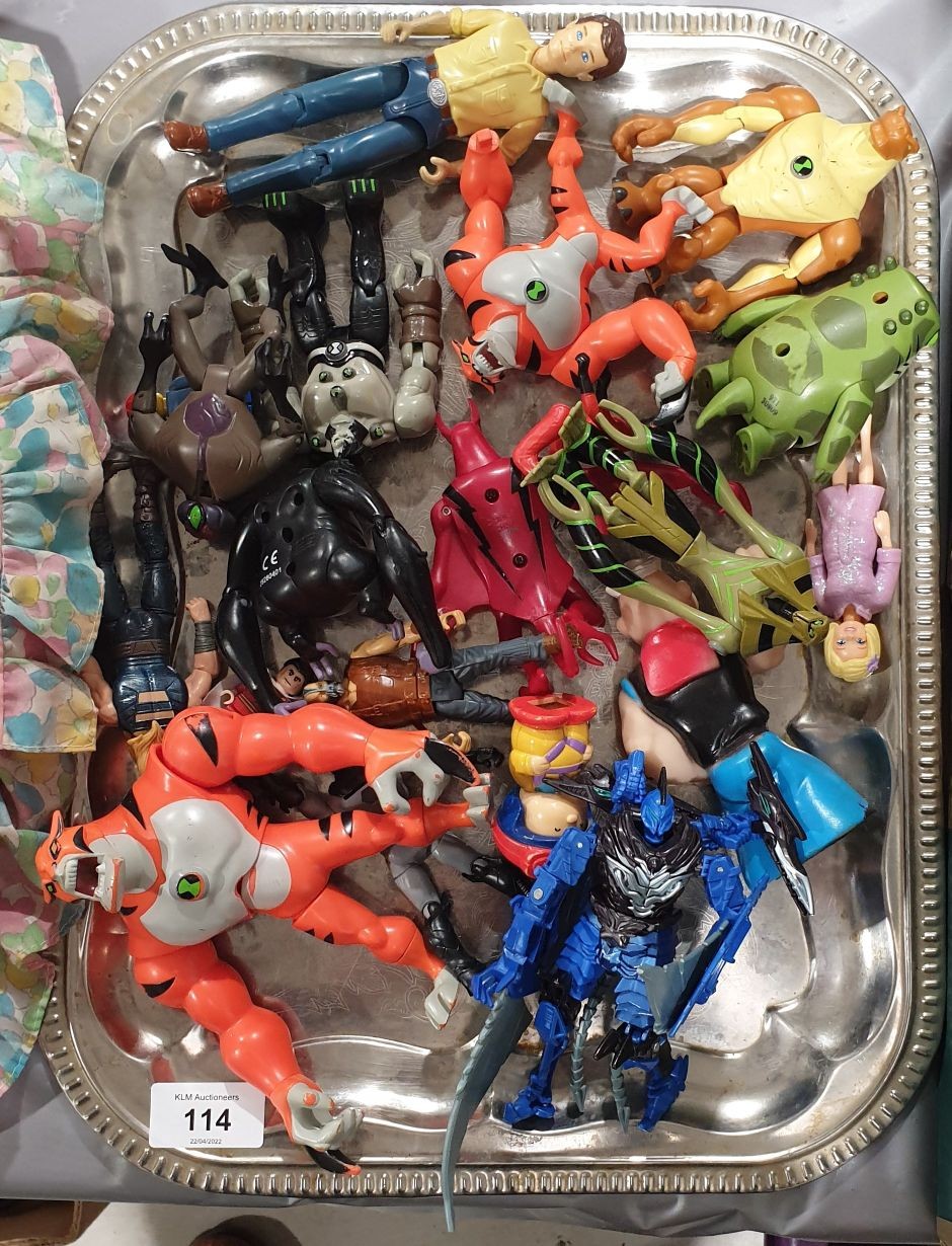 A tray of action figures.UK shipping £14.