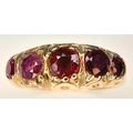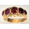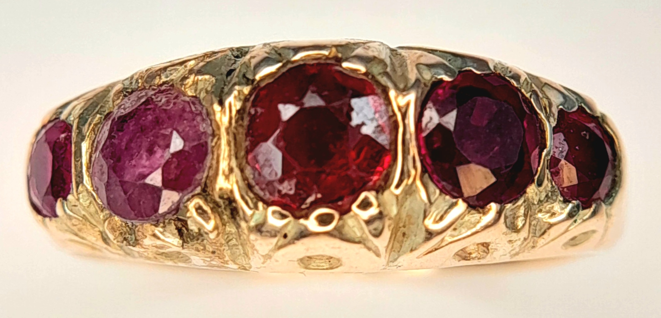 A Vintage 9K Gold Garnet, Amethyst and Ruby Five Stone Ring....