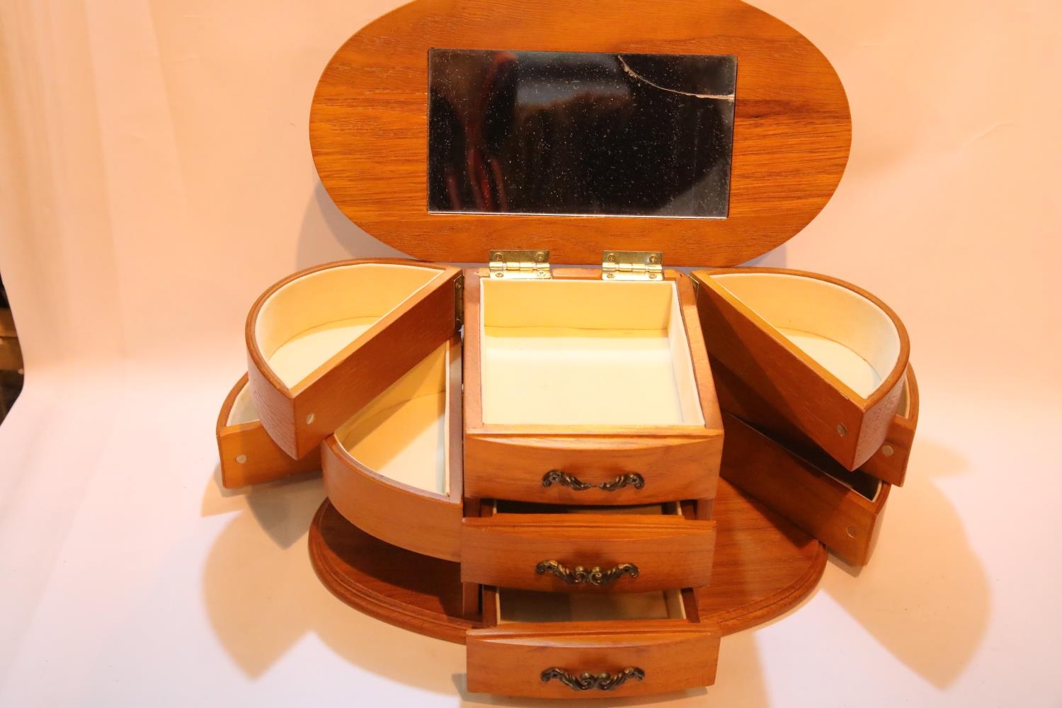 Stained pine small jewellery box. P&P Group 1 (£14+VAT for the first lot and £1+VAT for subsequent lots)