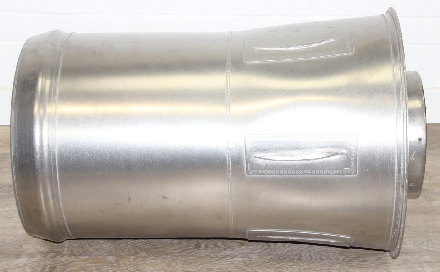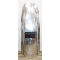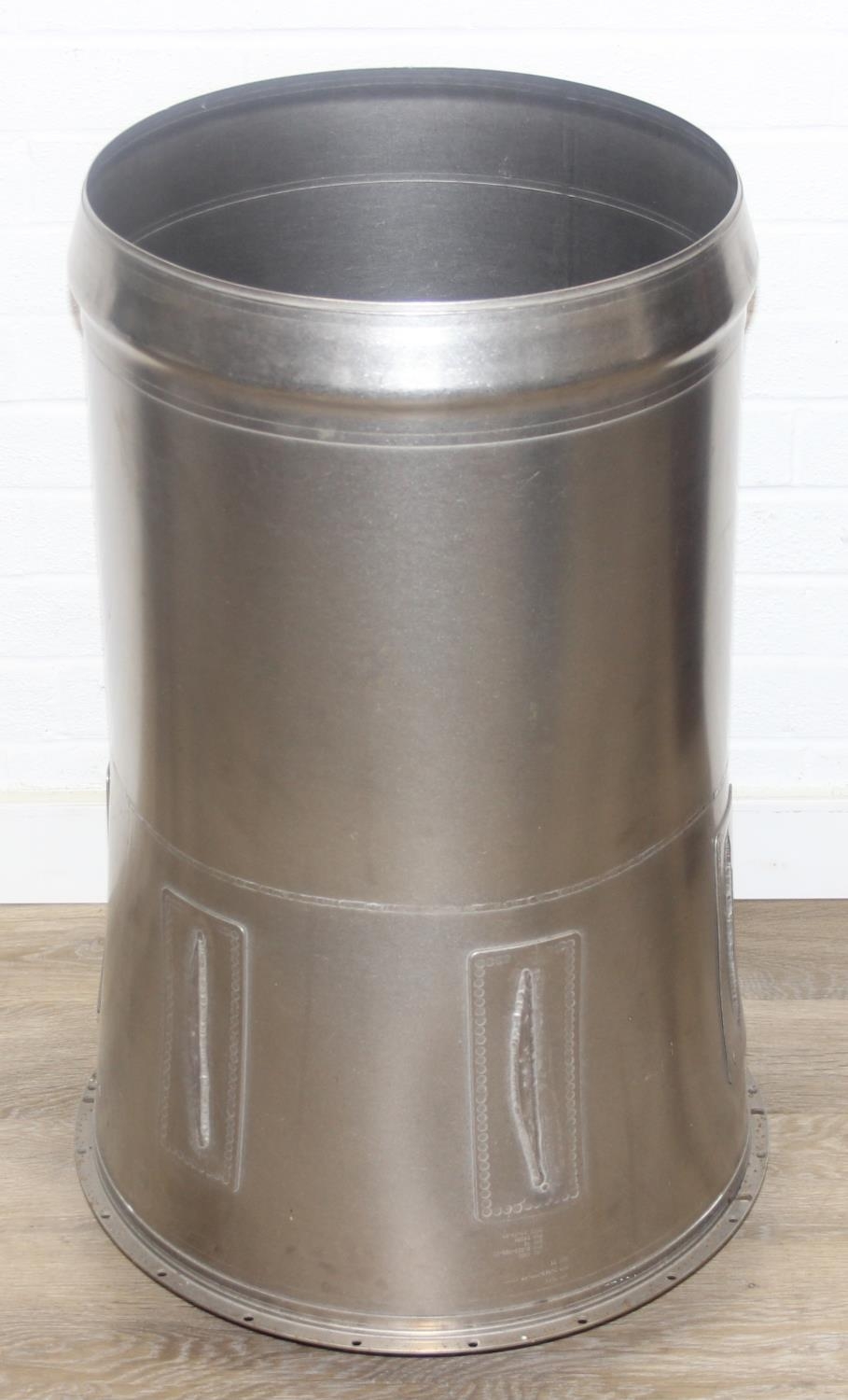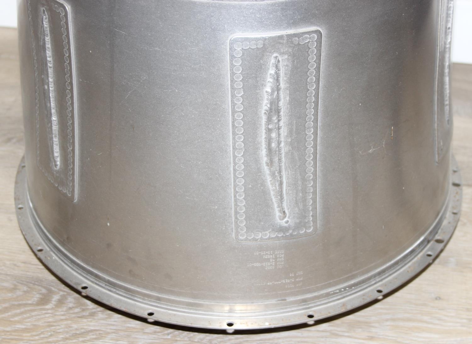 A modern metal aeroplane engine cowling, polished metal finish, would make an ideal table base with glass top, 45cm diameter x 79cm