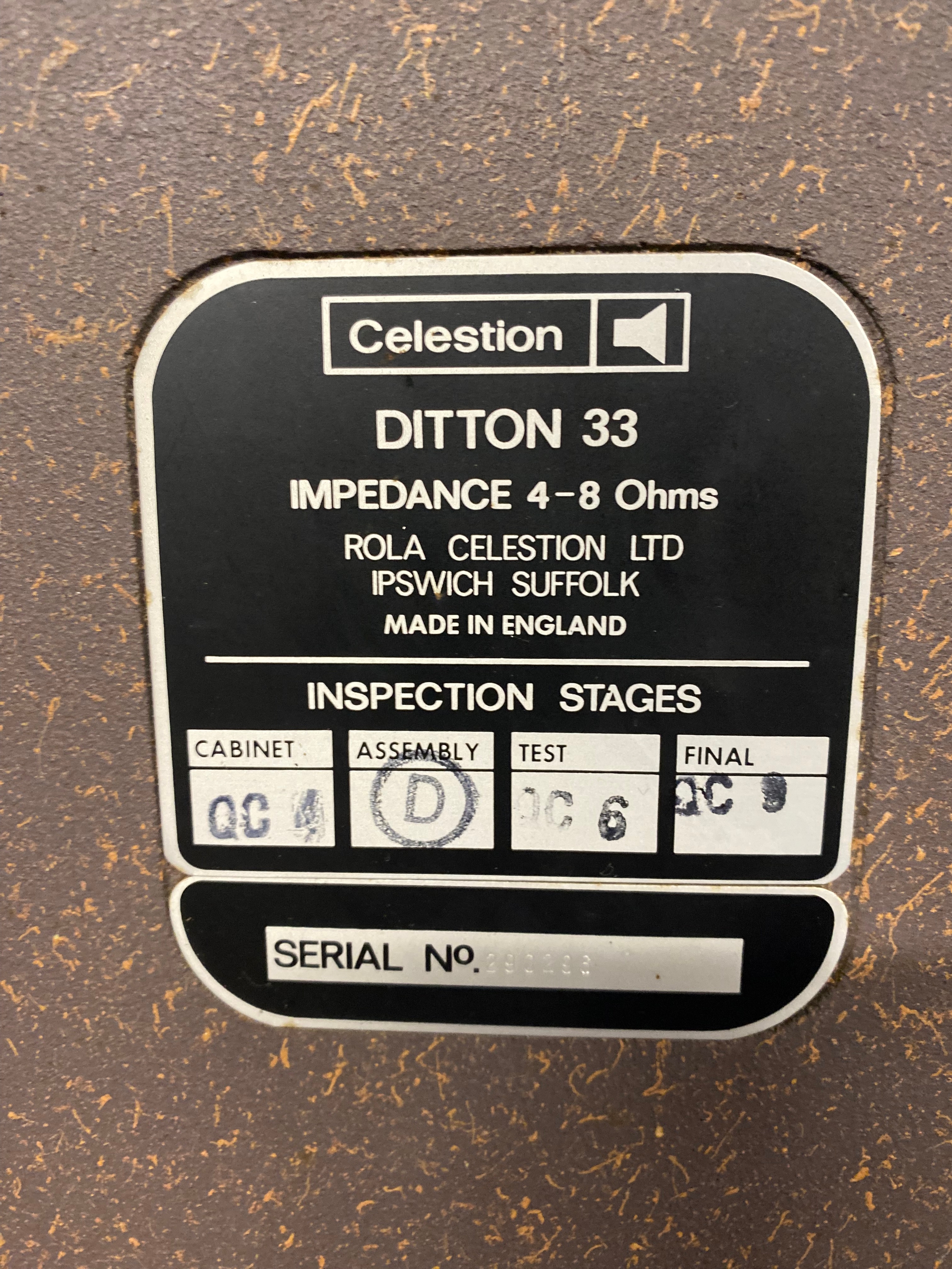 A Pair of Celestion Ditton 33 speakers Serial Number 290296