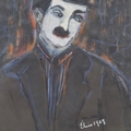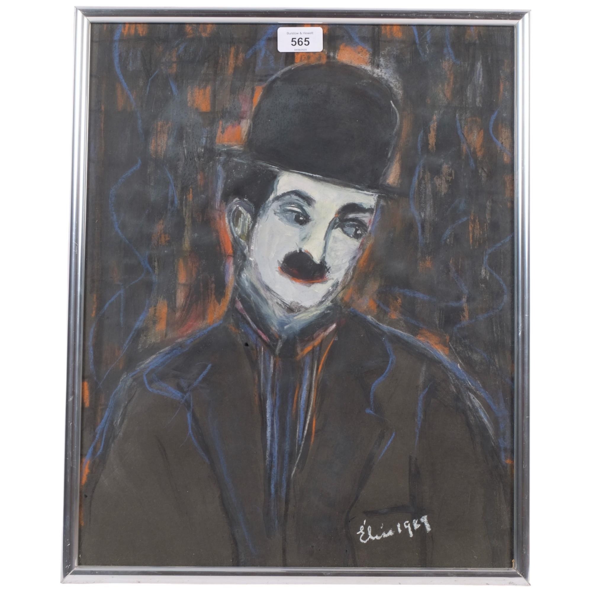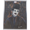 Elise Atkinson, chalk and acrylic study of Charlie Chaplin, framed, 48cm x 38cm