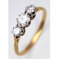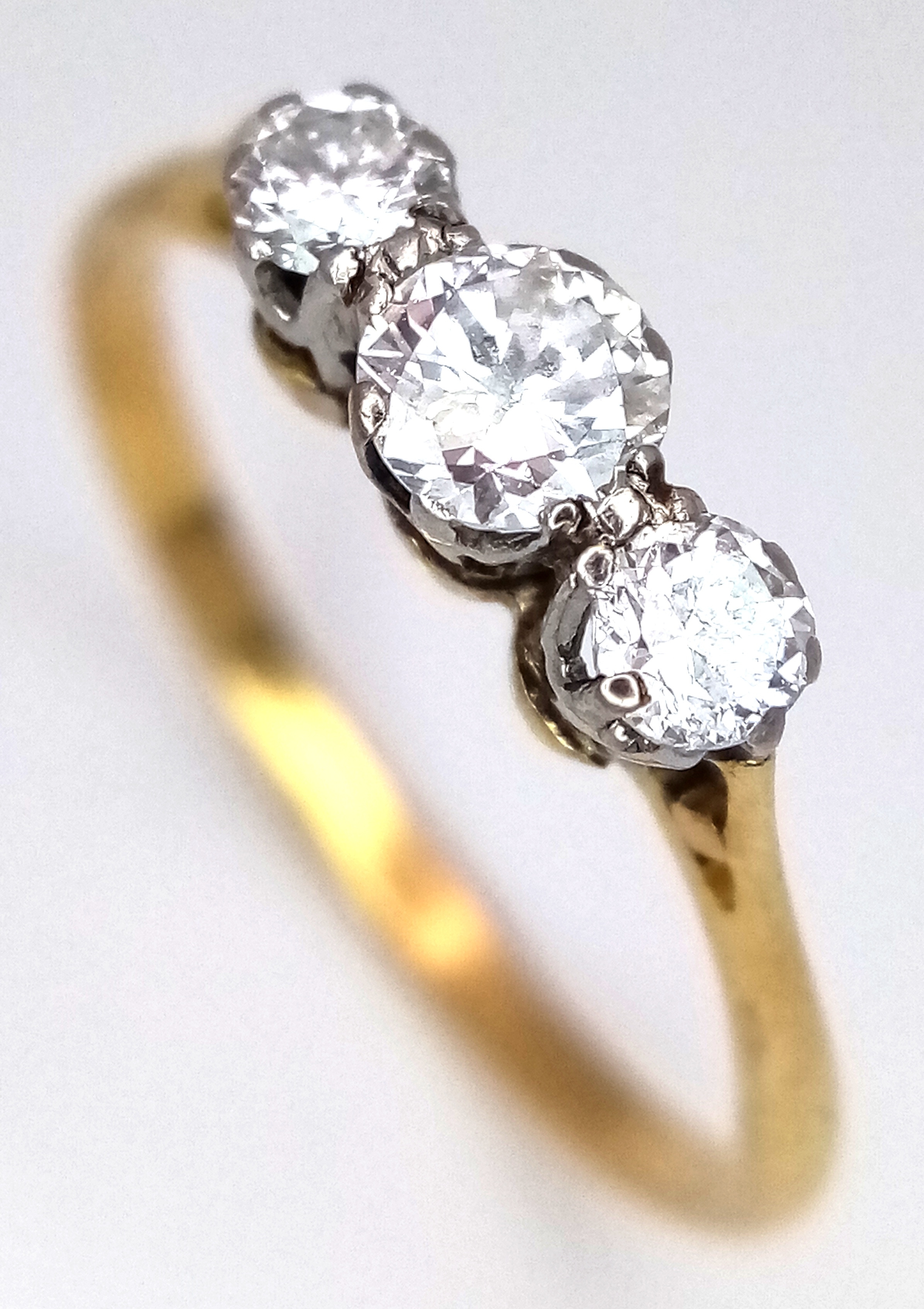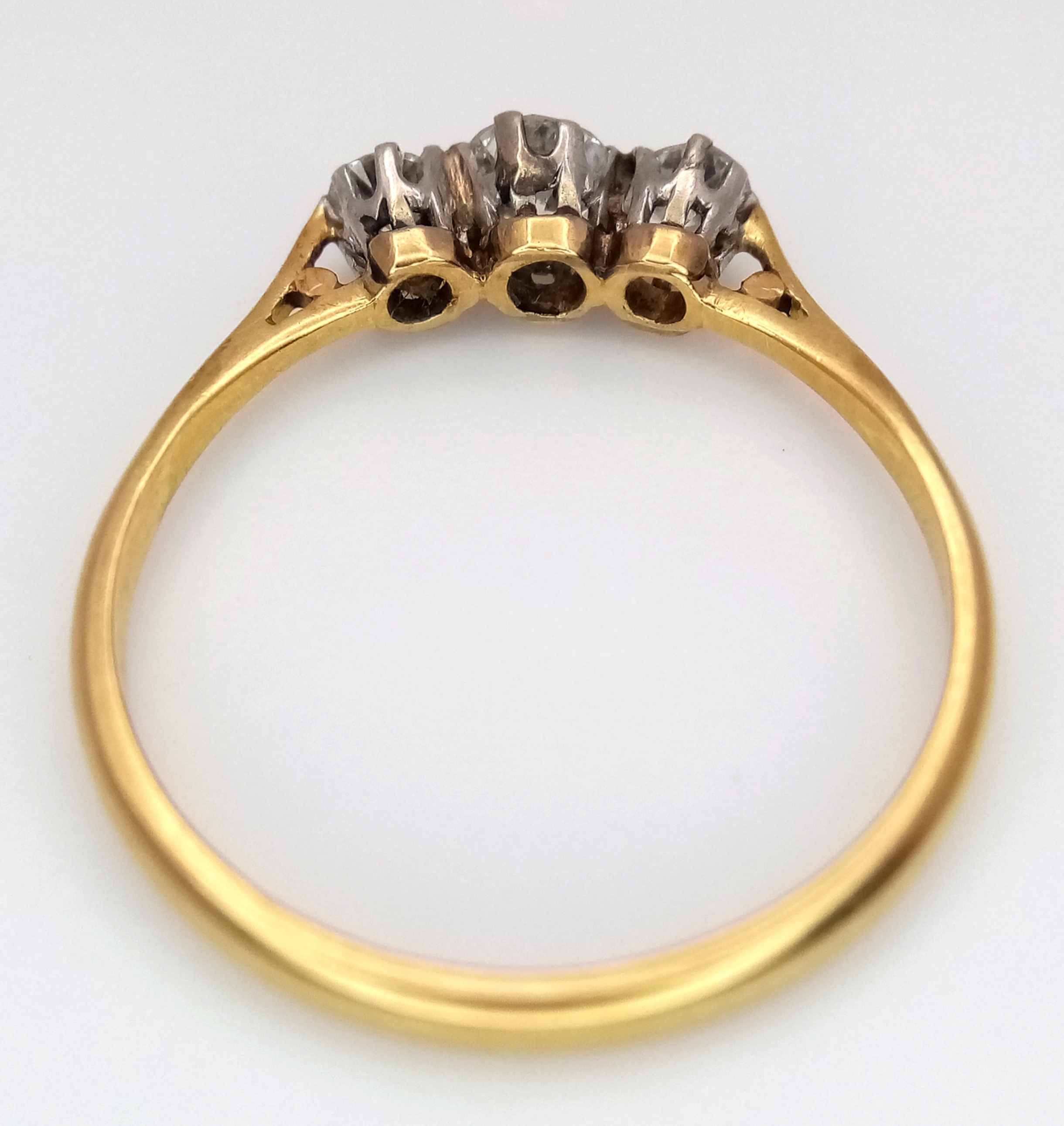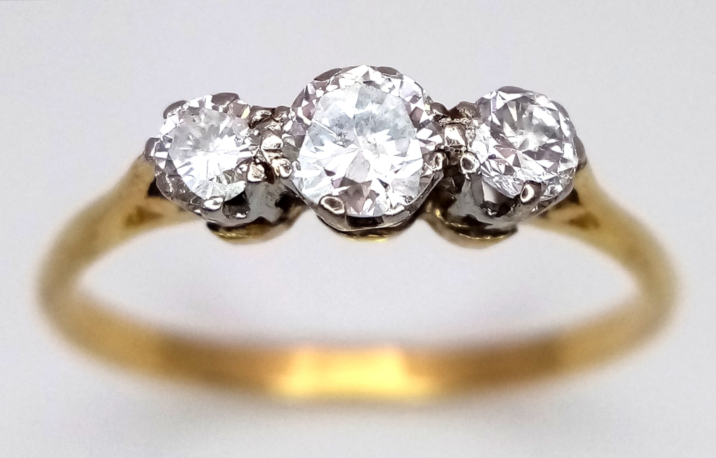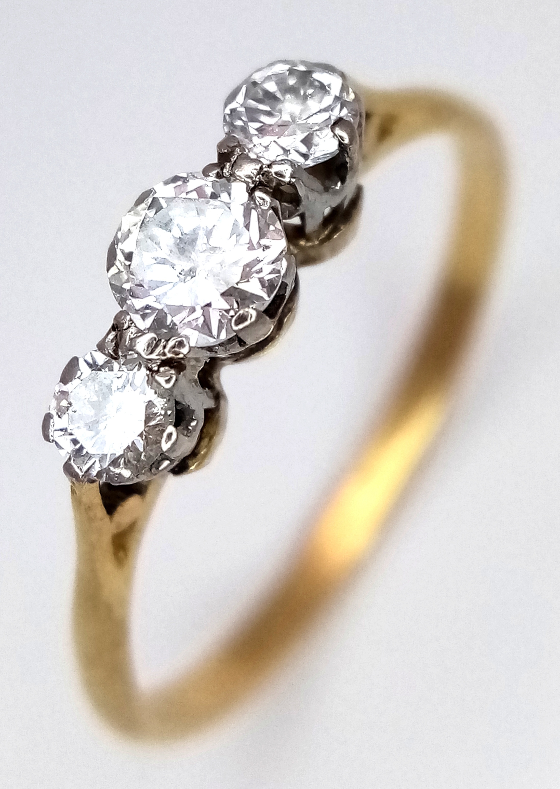 AN 18K YELLOW GOLD 3 STONE DIAMOND RING. 0.40CTW. 2G. SIZE Q. 9788.