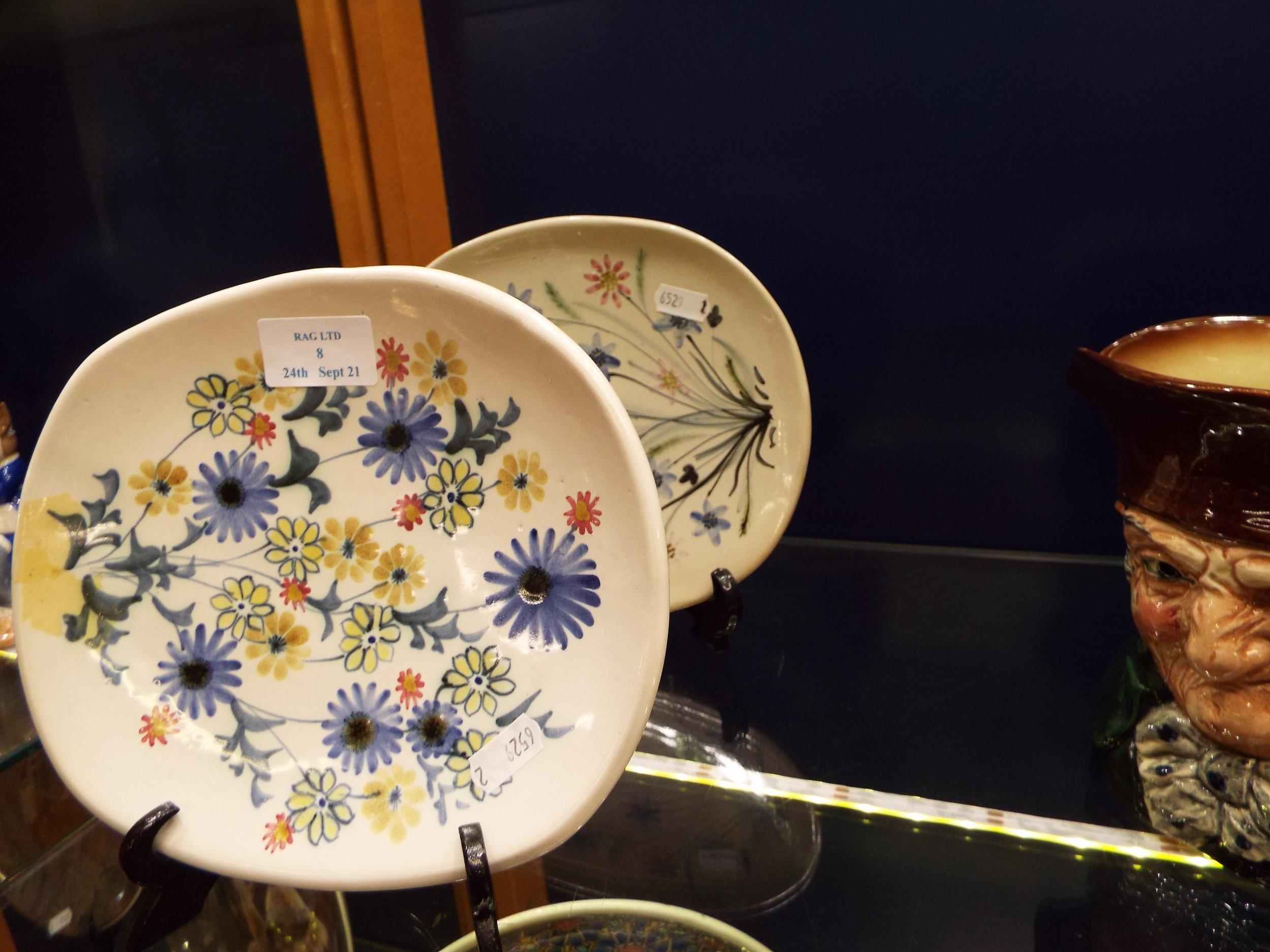 A 1970's Rye Pottery hand painted small oval plate with floral decoration and a 1970's Rye Pottery hand painted small oval plate with floral decoration