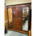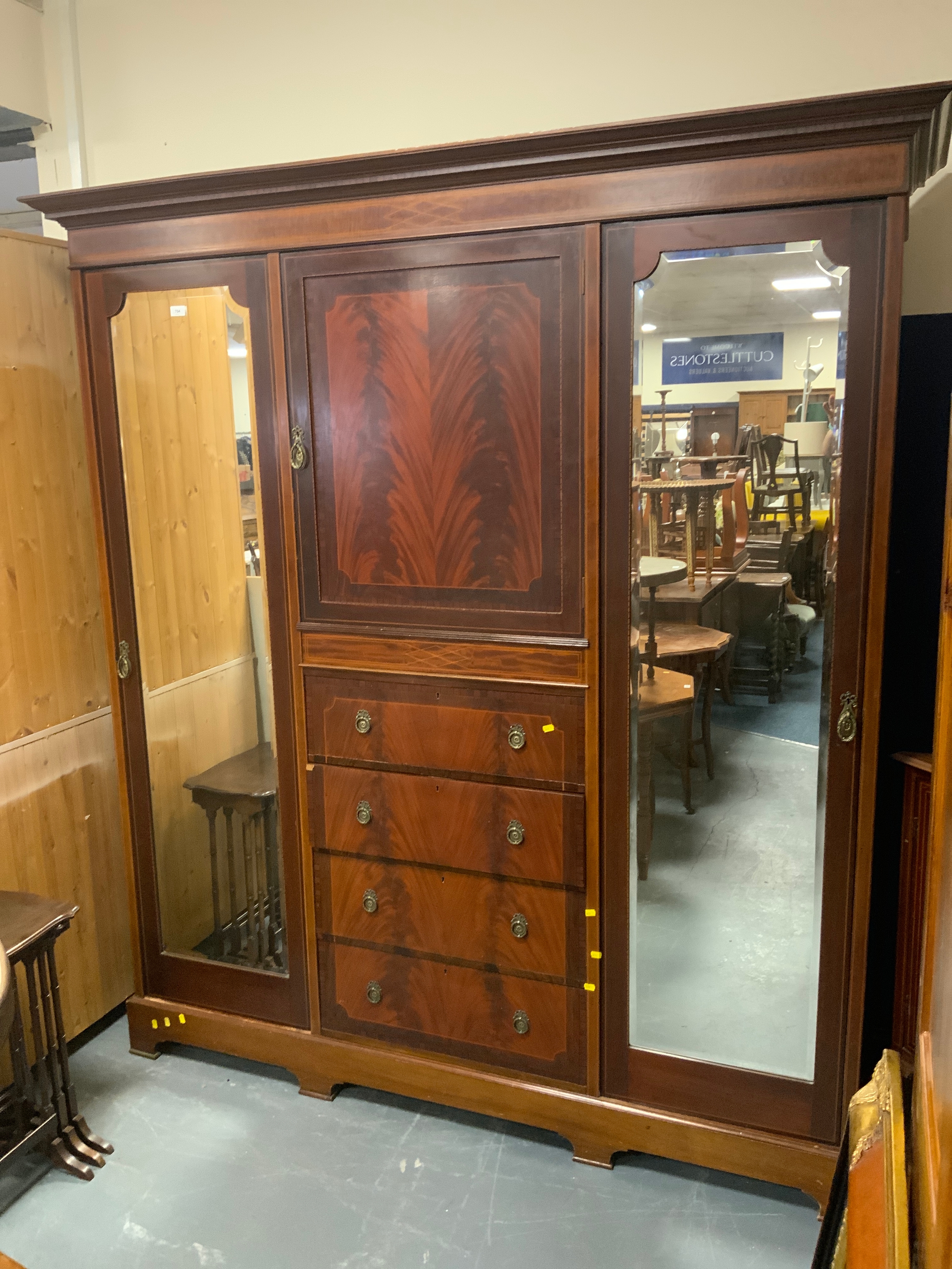 A large Edwardian mahogany inlaid triple wardrobe W 200 cm