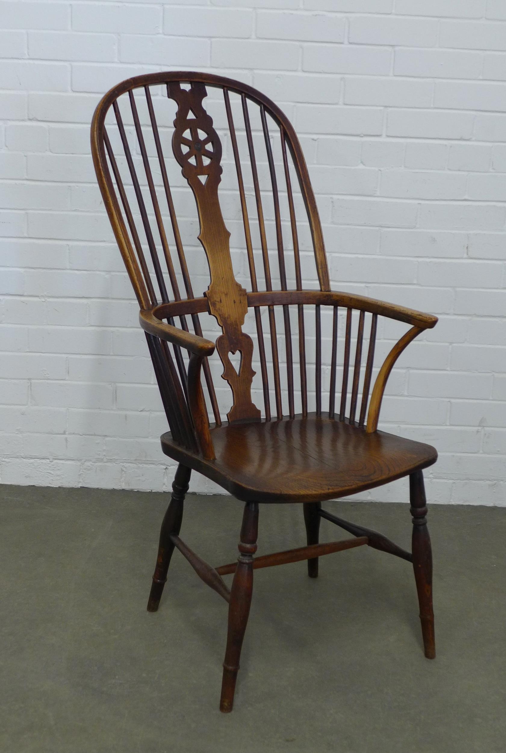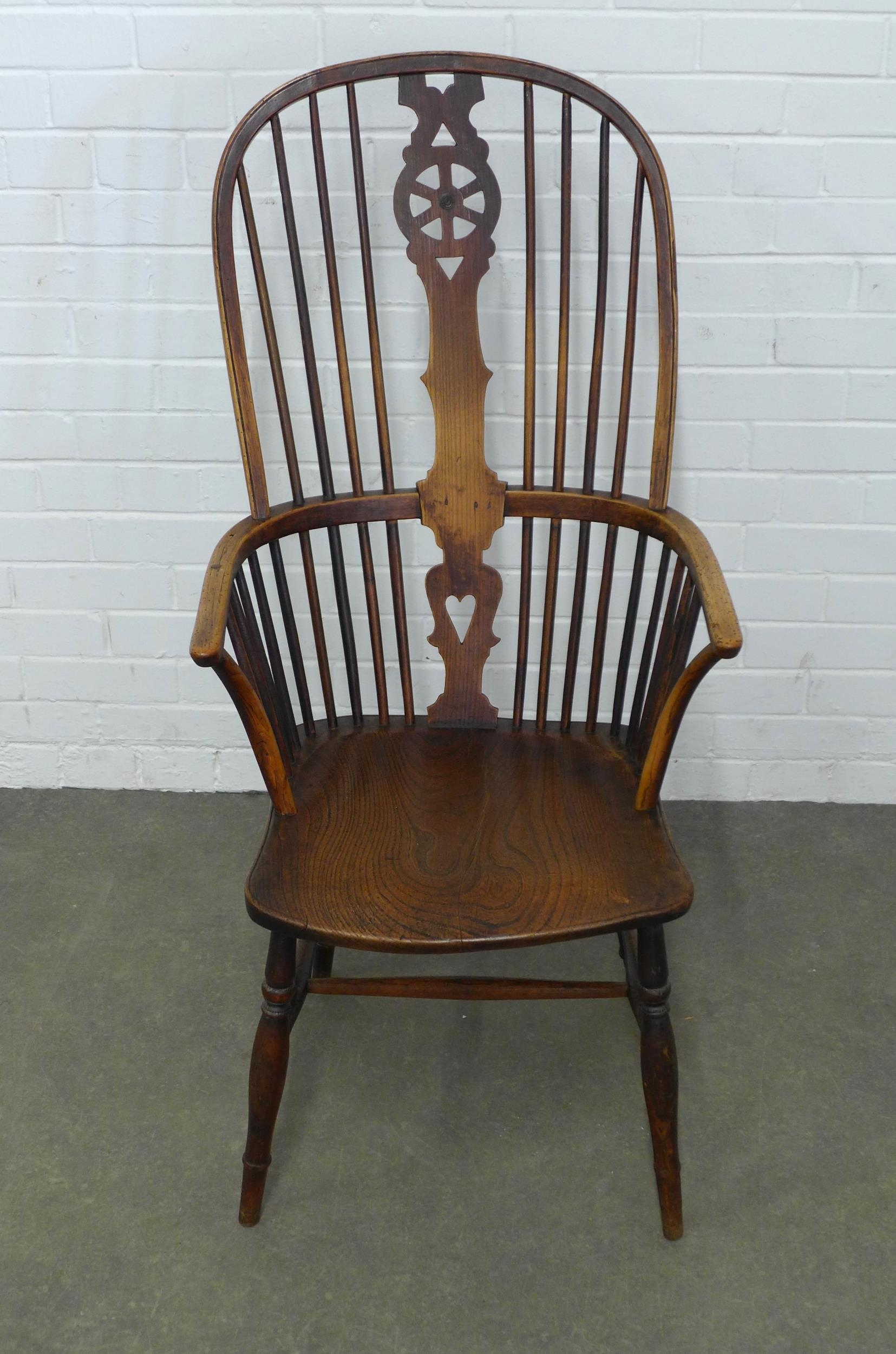 Beech and Elm hooped back Windsor chair, 55 x 112 x 44cm.