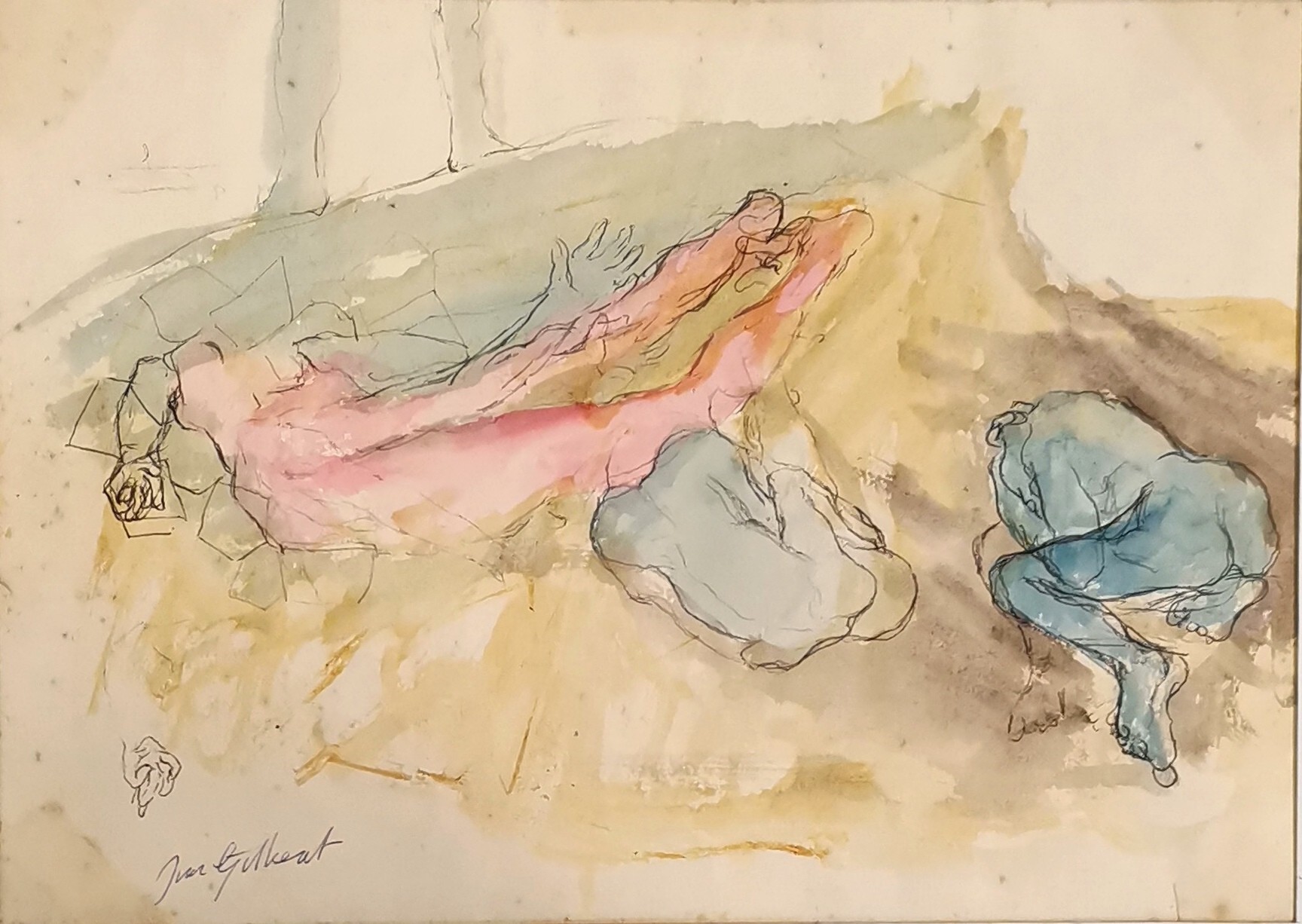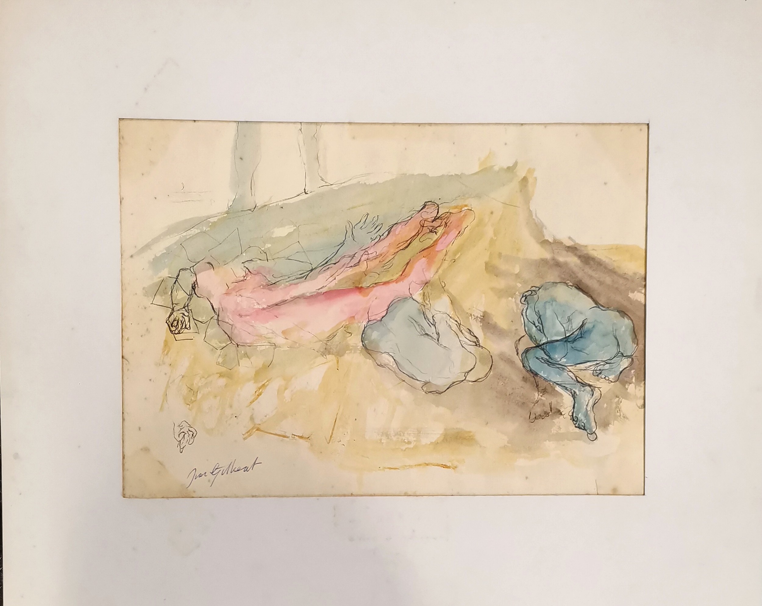 Jim Gilbert (1933-95) watercolour painting of 3 nude figures - mount 41.5cm x 34cm