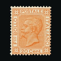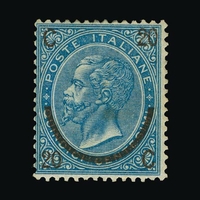 Italy : (SG 21) 1877 10c blue, a rare unmounted mint example, centered a litttle to lower right (Sassone SA27, 9000 for unmounted), with Diena 1964 certificate. (image available) [US1]