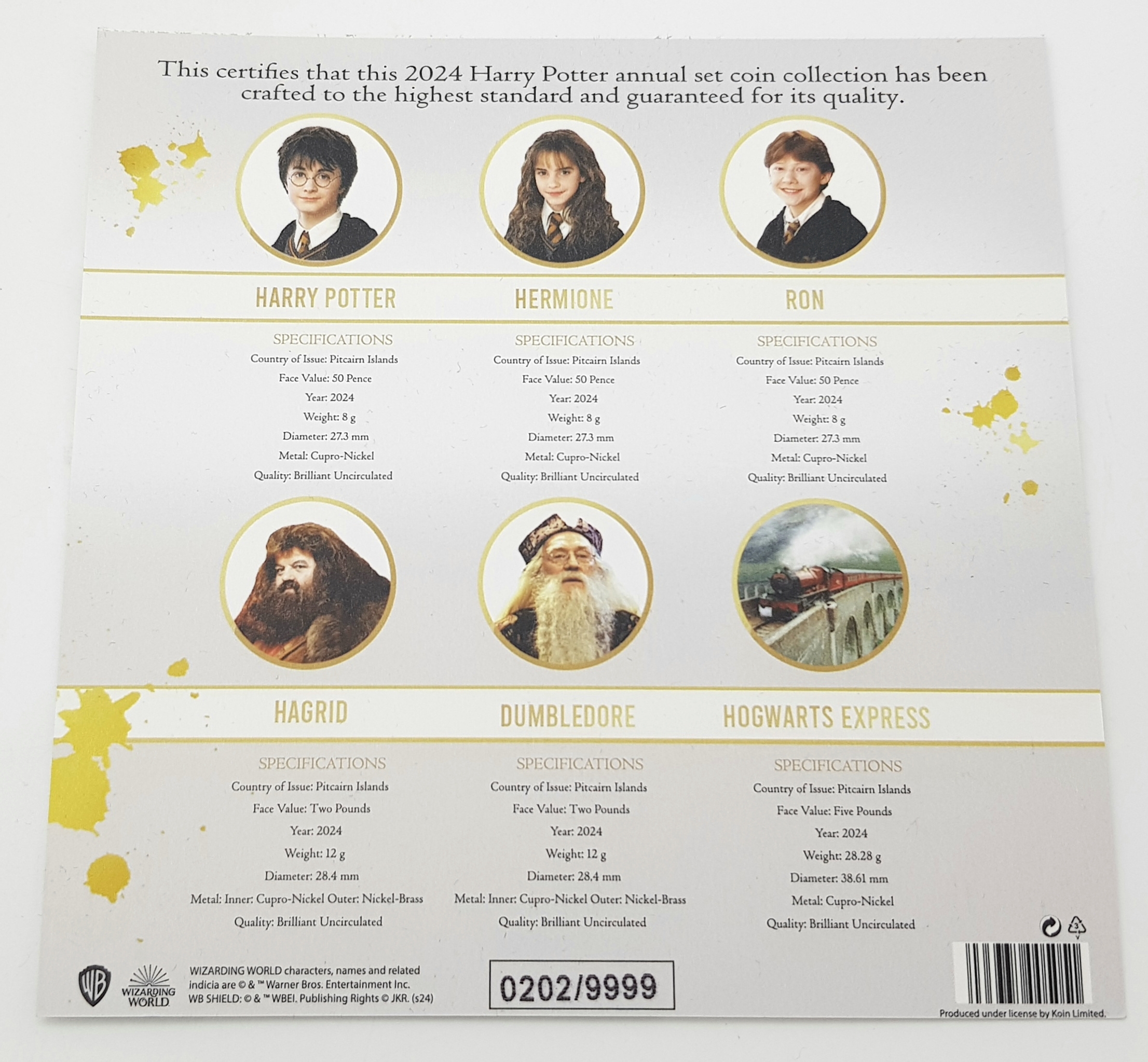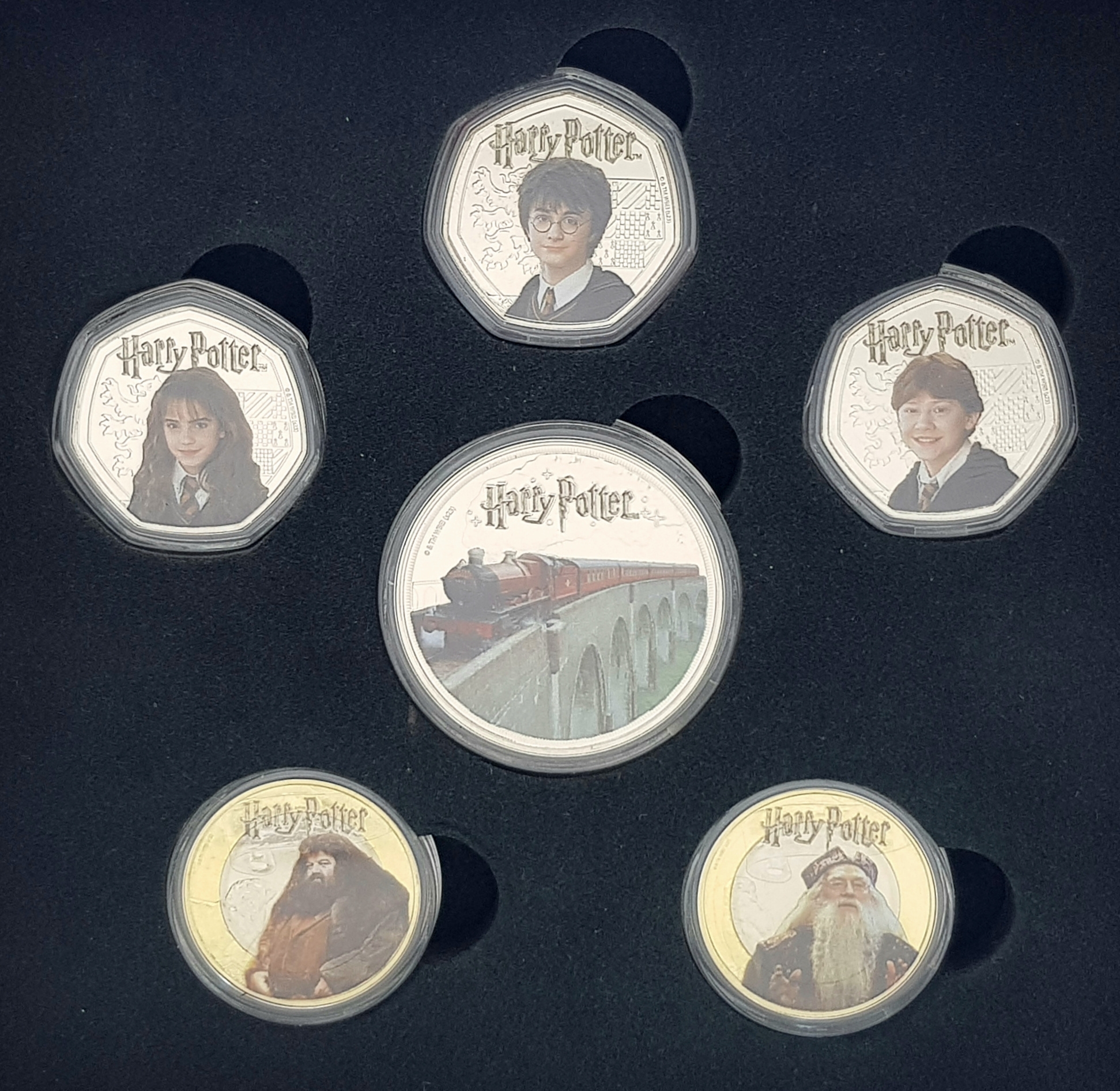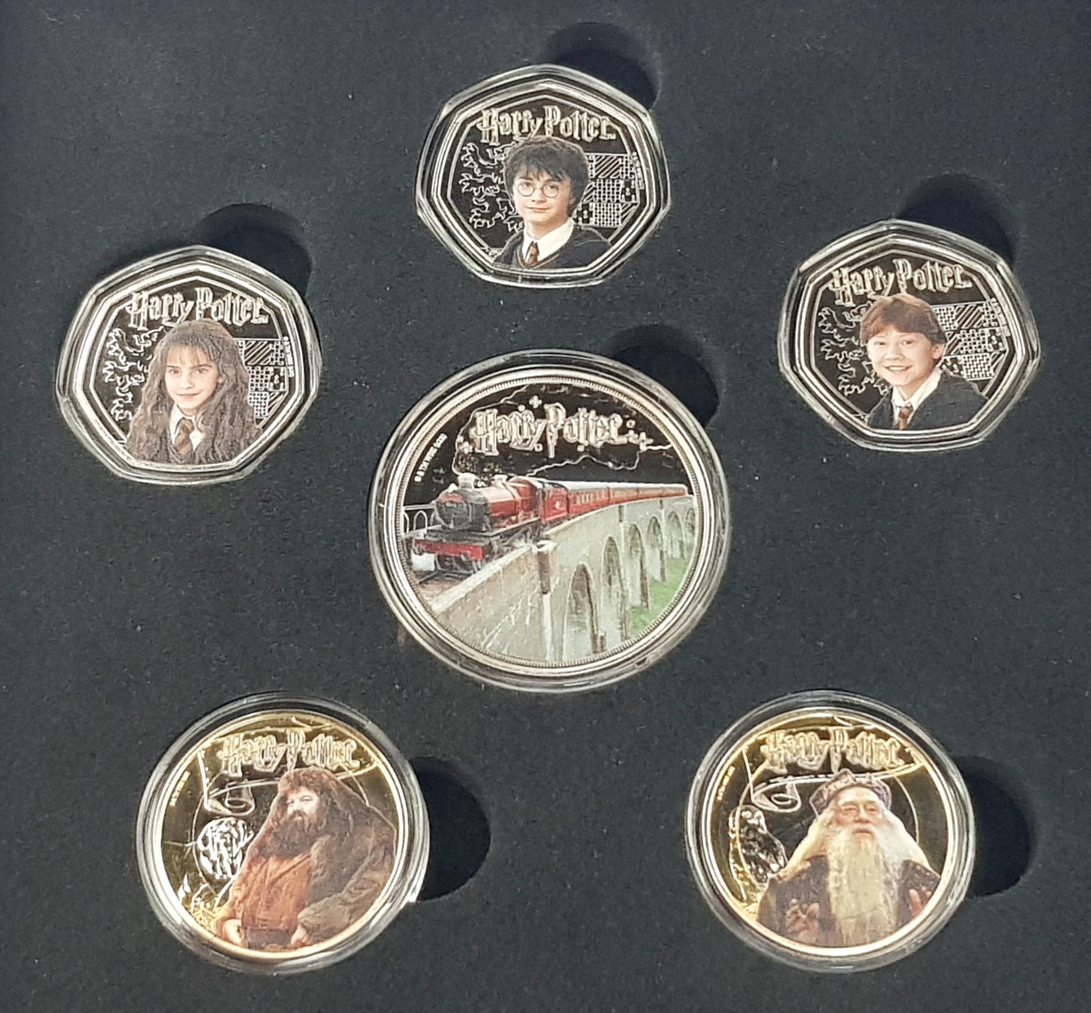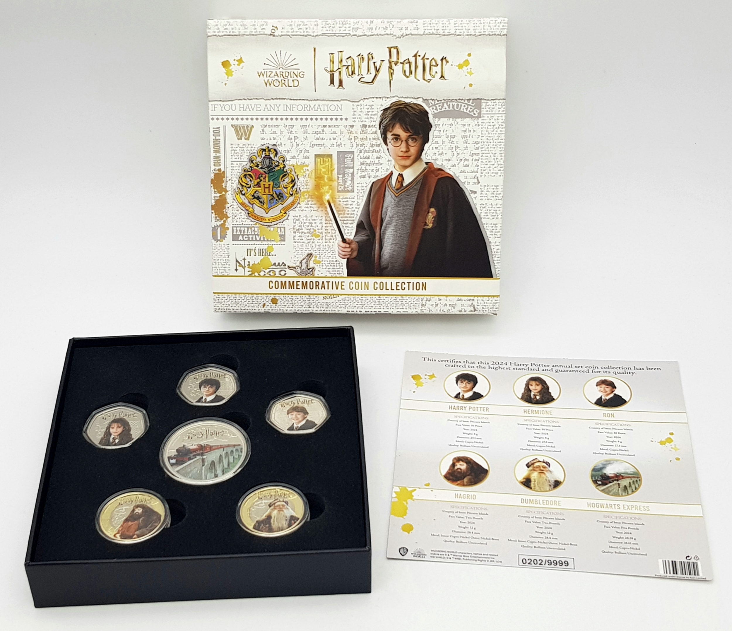 A Harry Potter 2024 Commemorative Coin Set. Comes with COA and case. Limited edition six coin set.