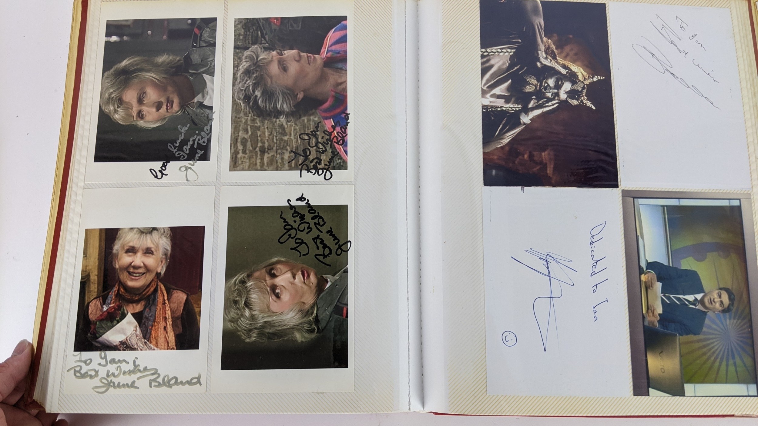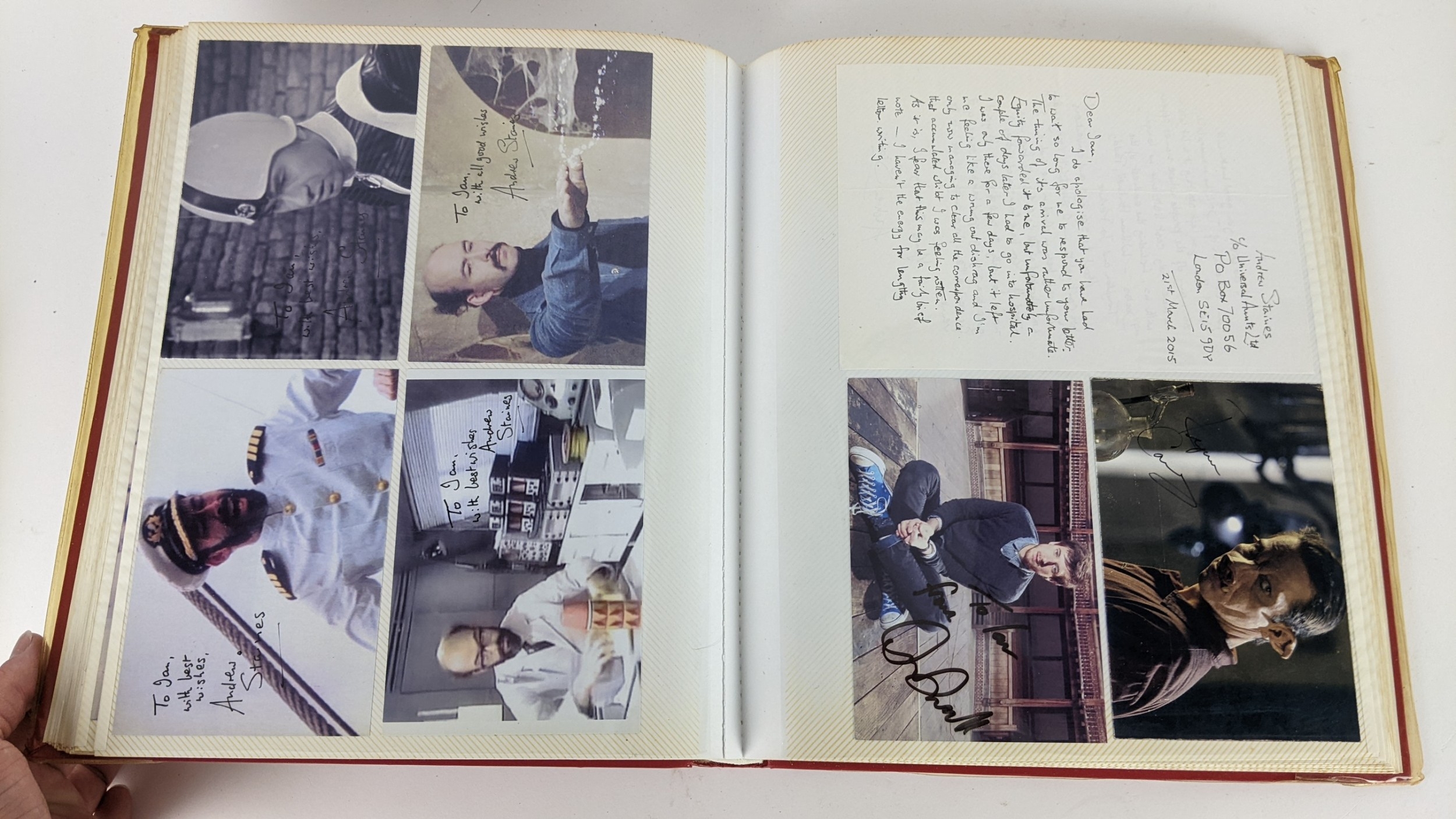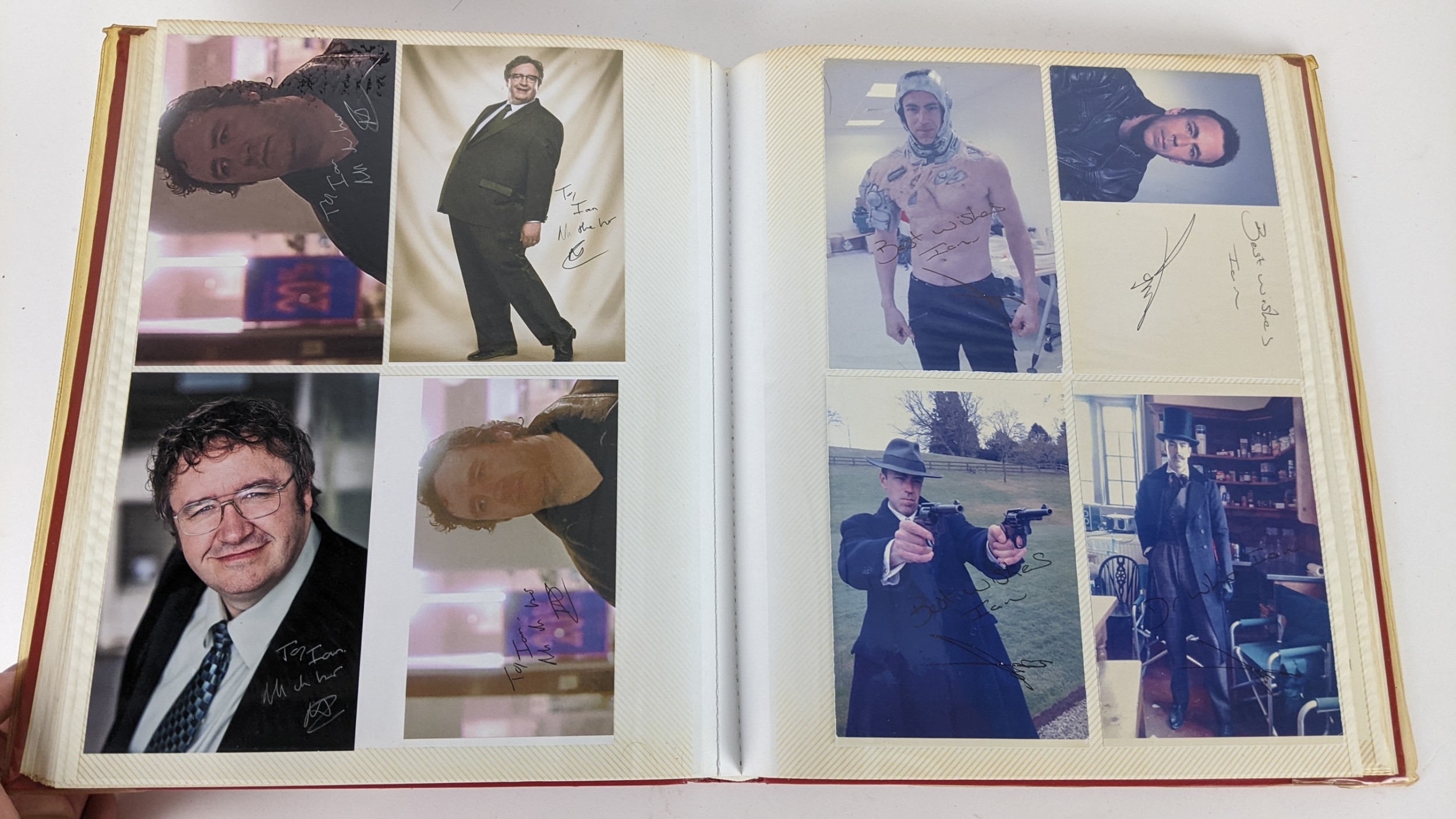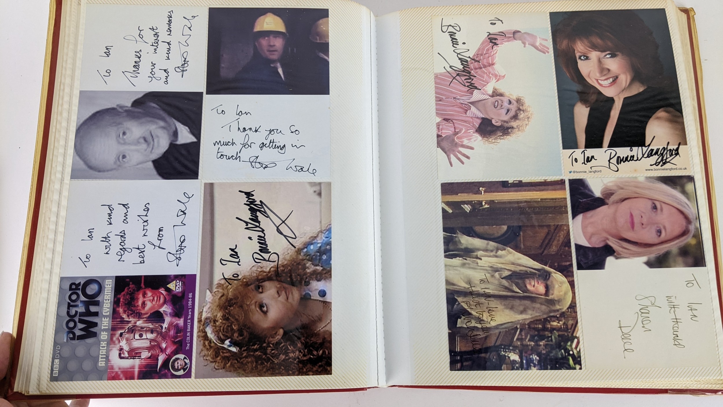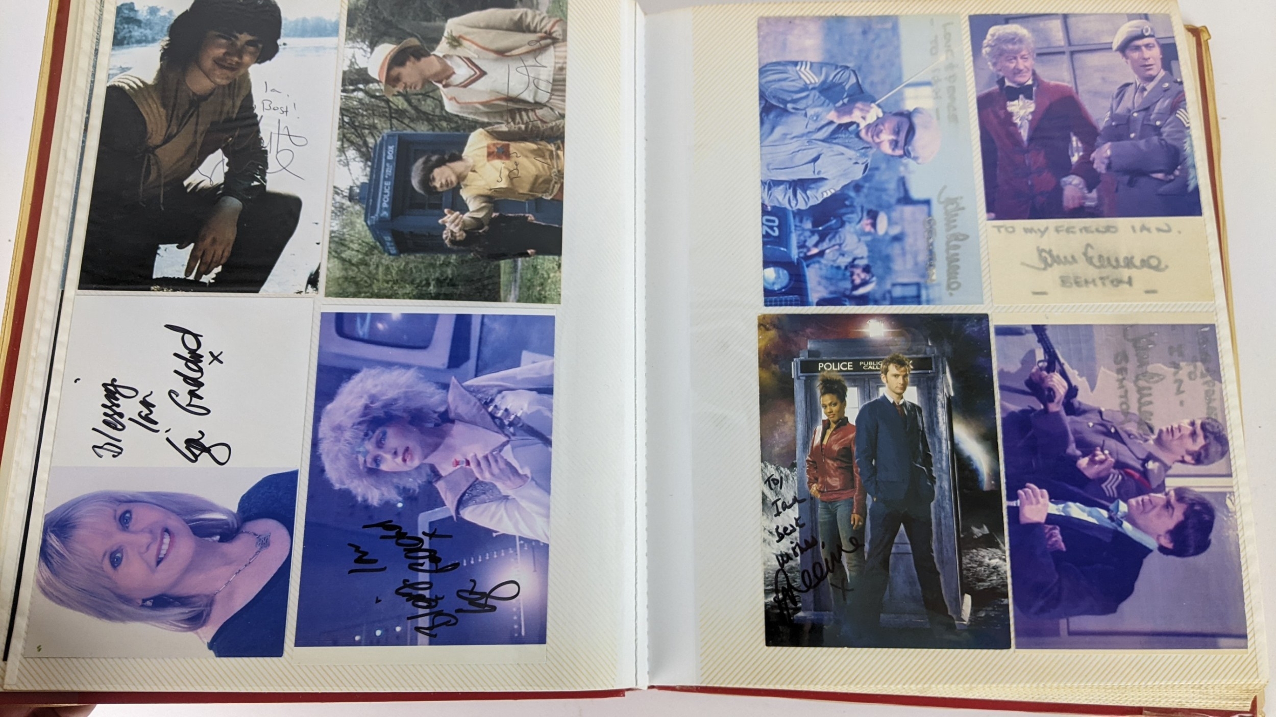 A Doctor Who album of autographs on photos, signed by several cast members to include Louise Jameson, Simon Pegg, Mark Strickson and others