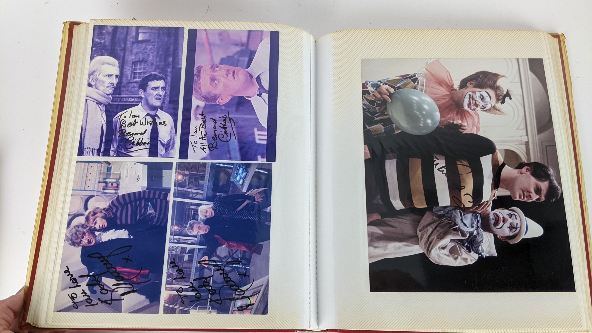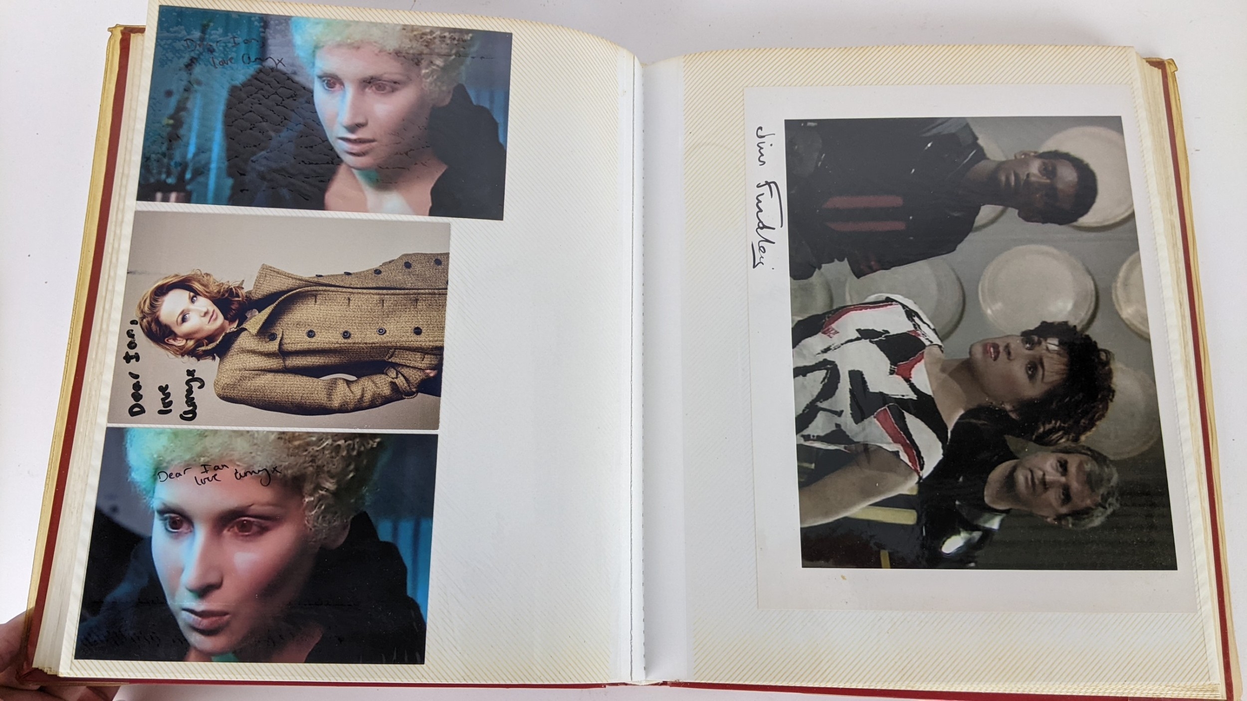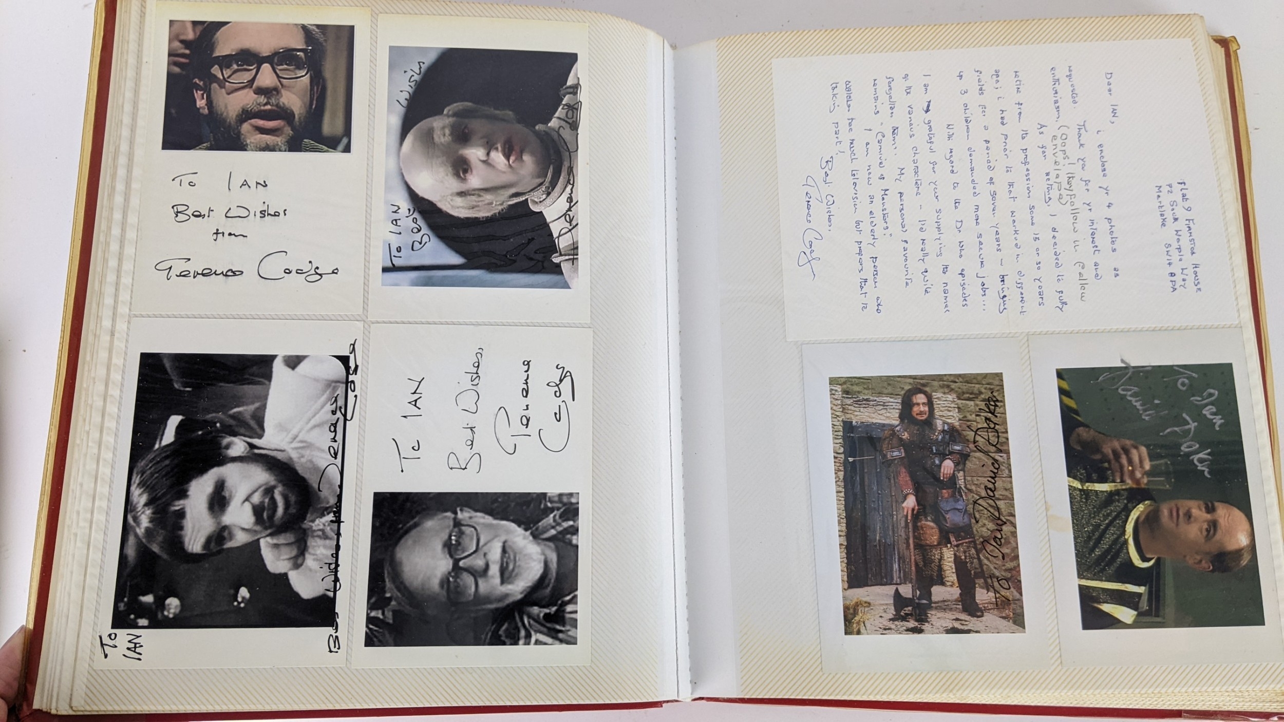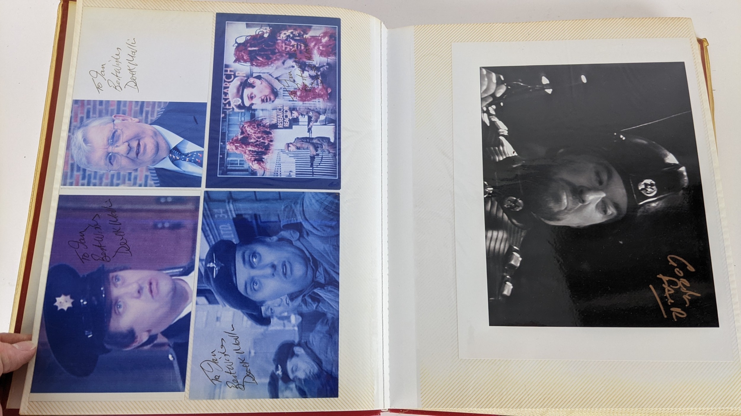 A Doctor Who album of autographs on photos, signed by several cast members to include Louise Jameson, Simon Pegg, Mark Strickson and others