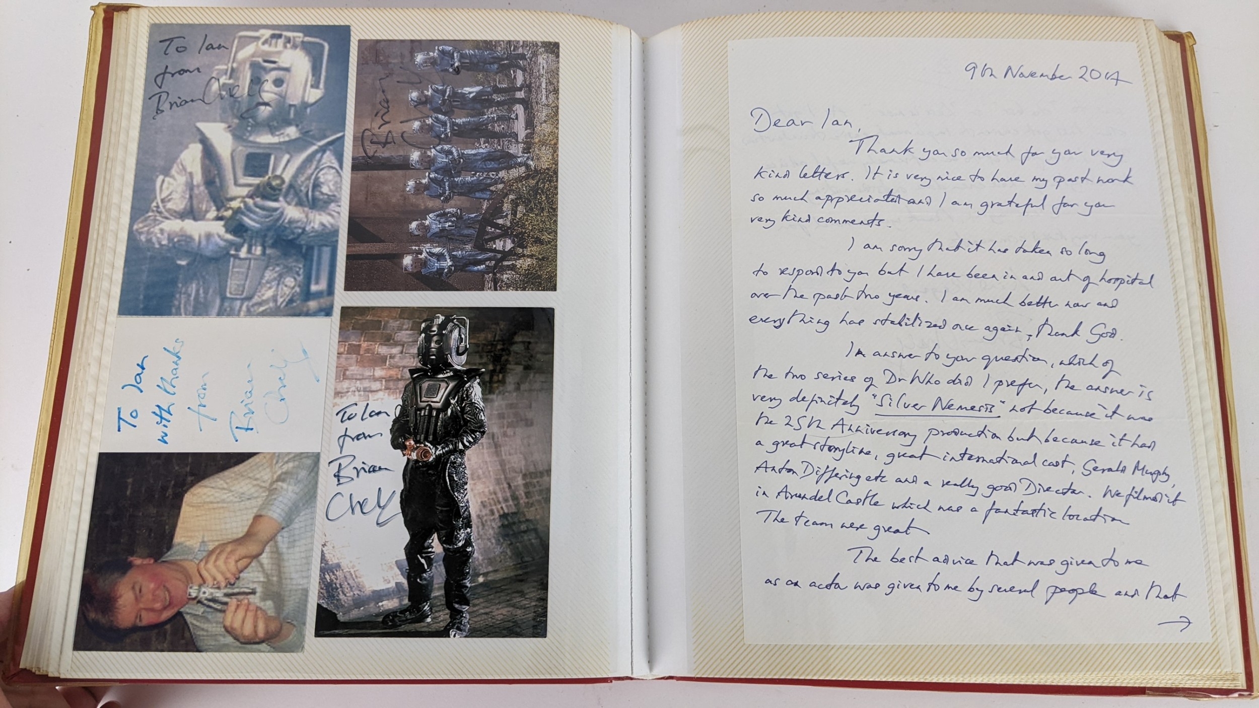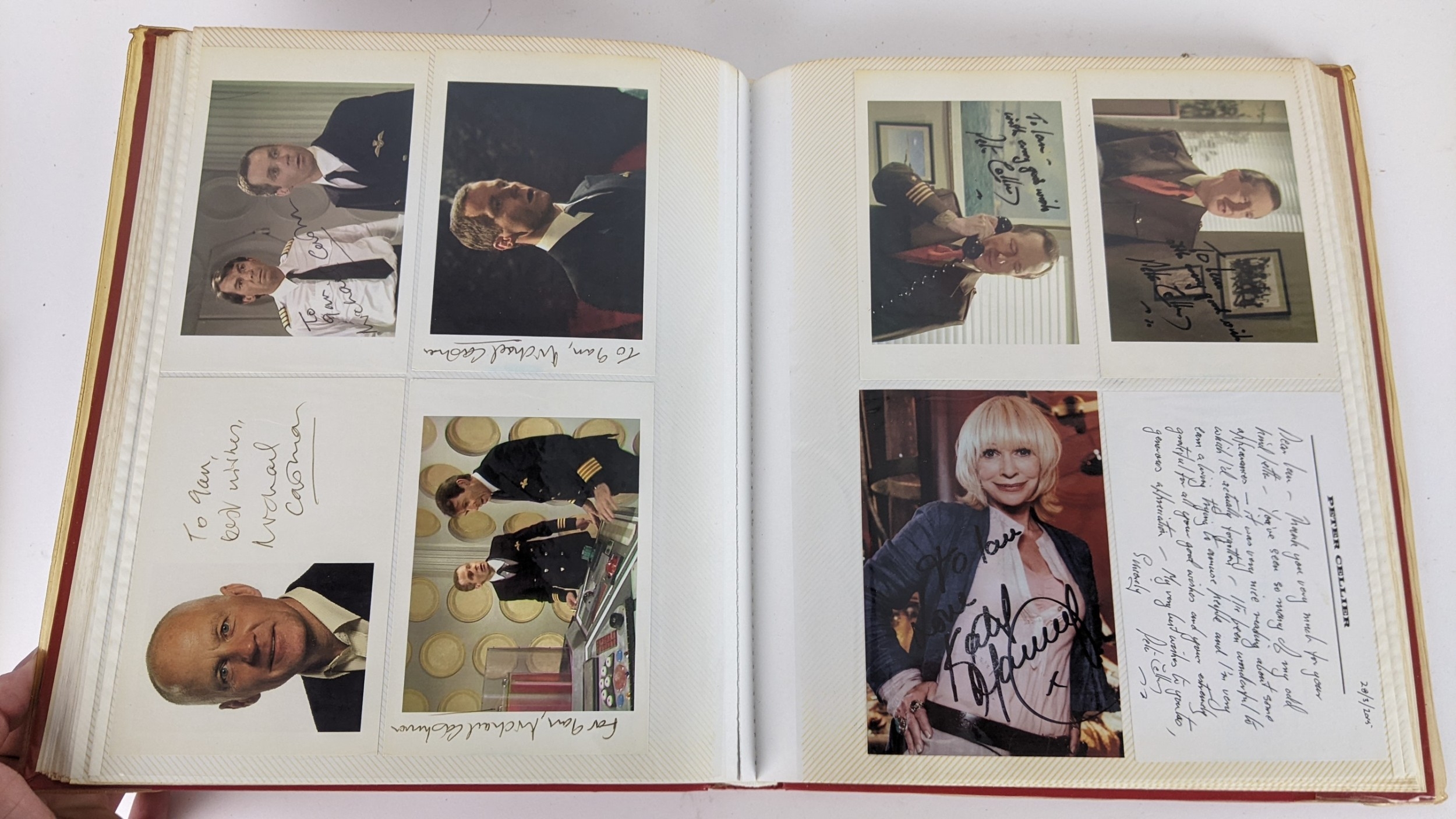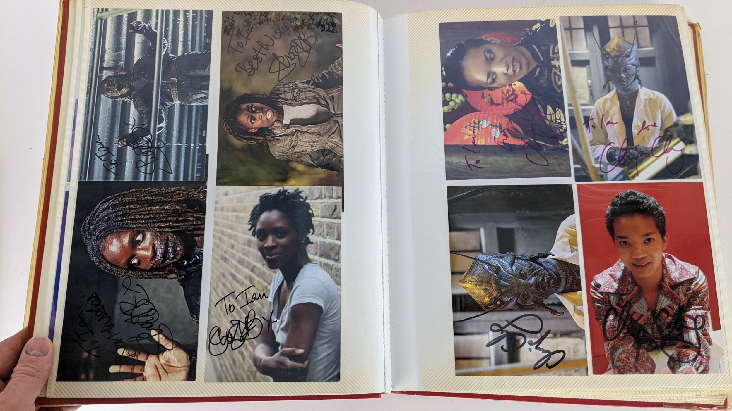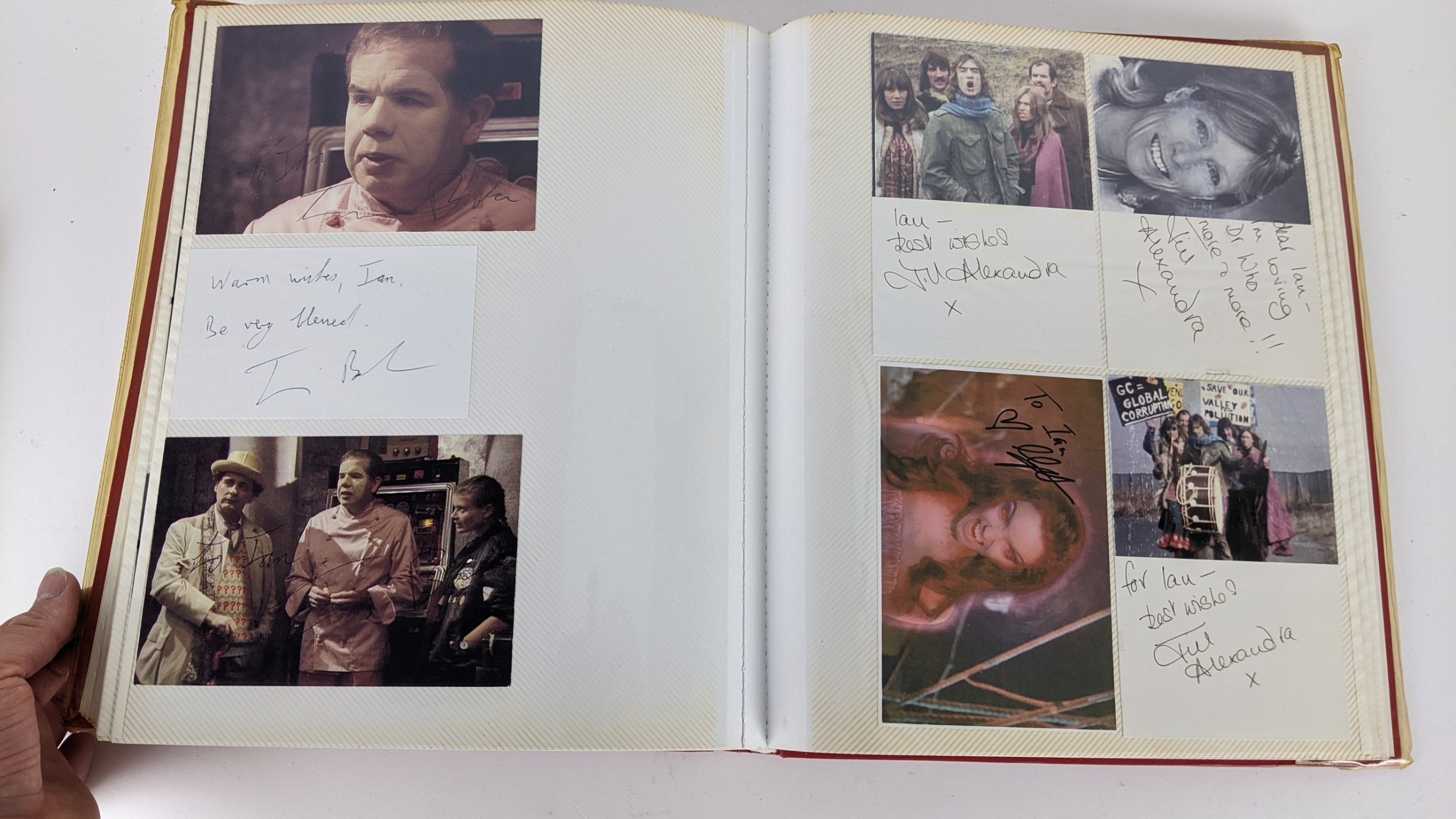 A Doctor Who album of autographs on photos, signed by several cast members to include Louise Jameson, Simon Pegg, Mark Strickson and others