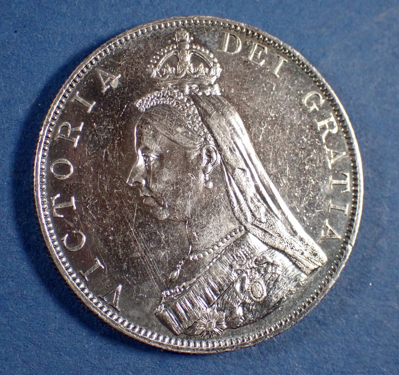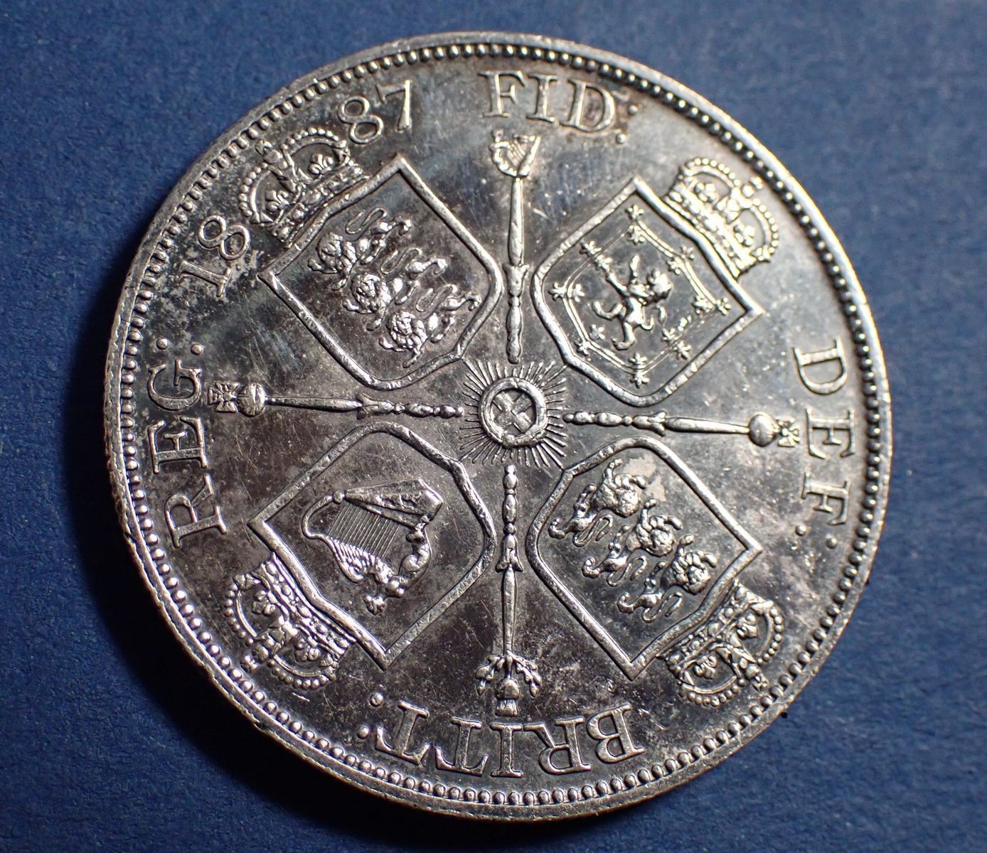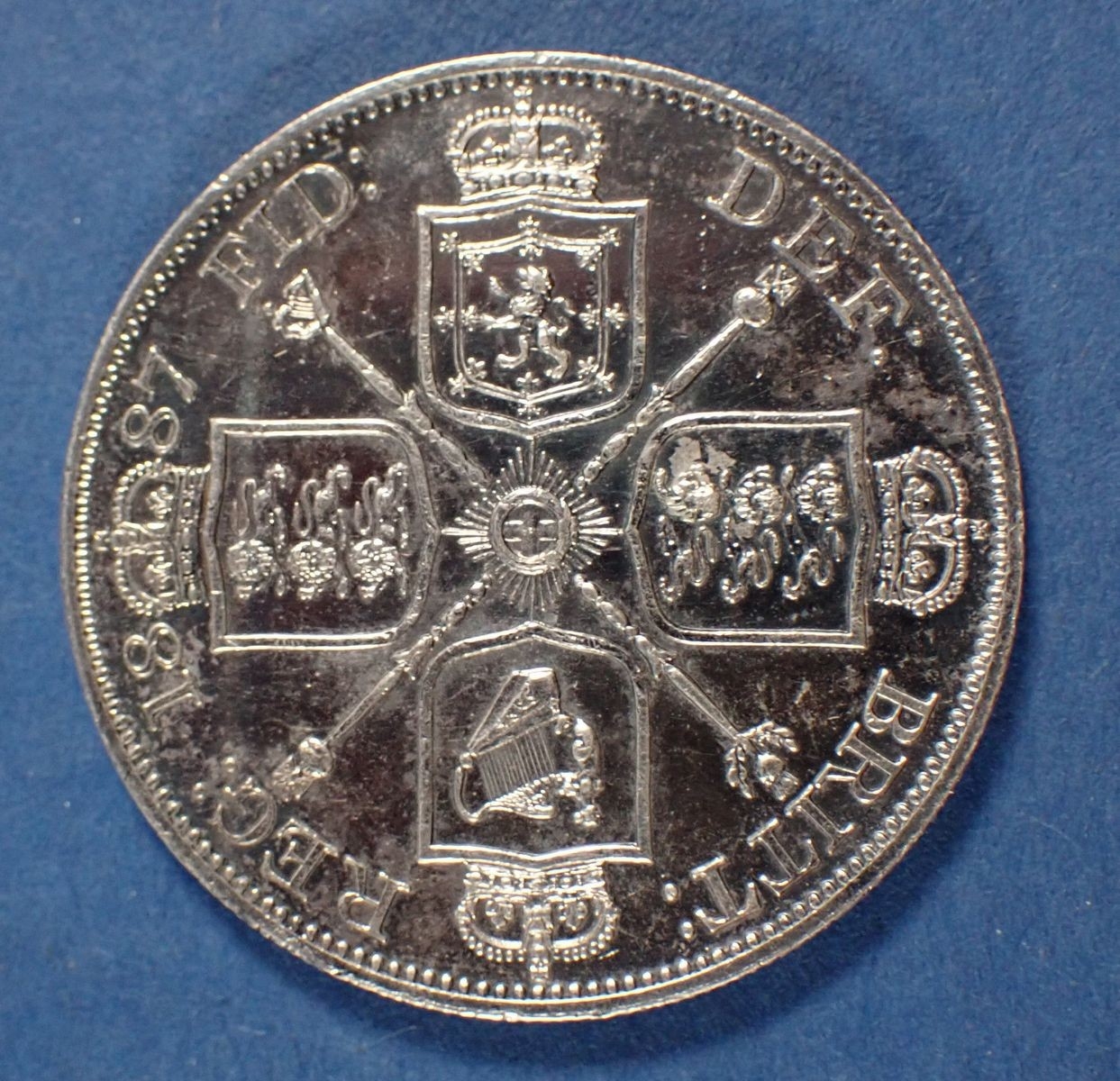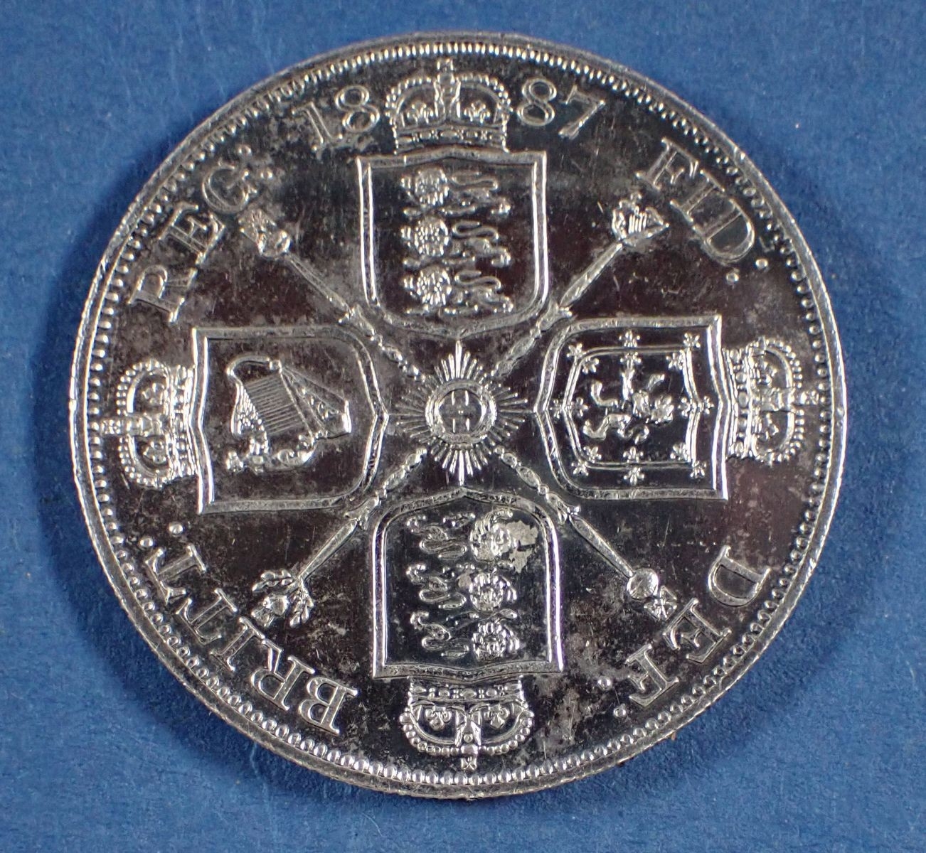 A Victoria silver 1887 double florin with Arabic 1, Cond: VF-EF