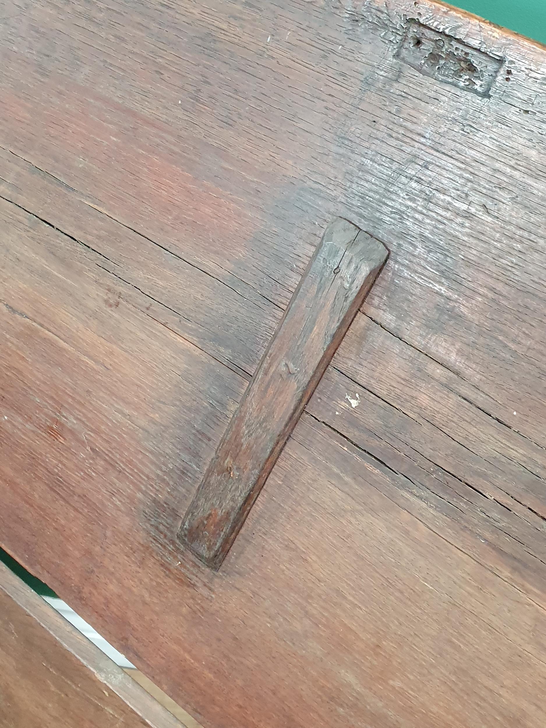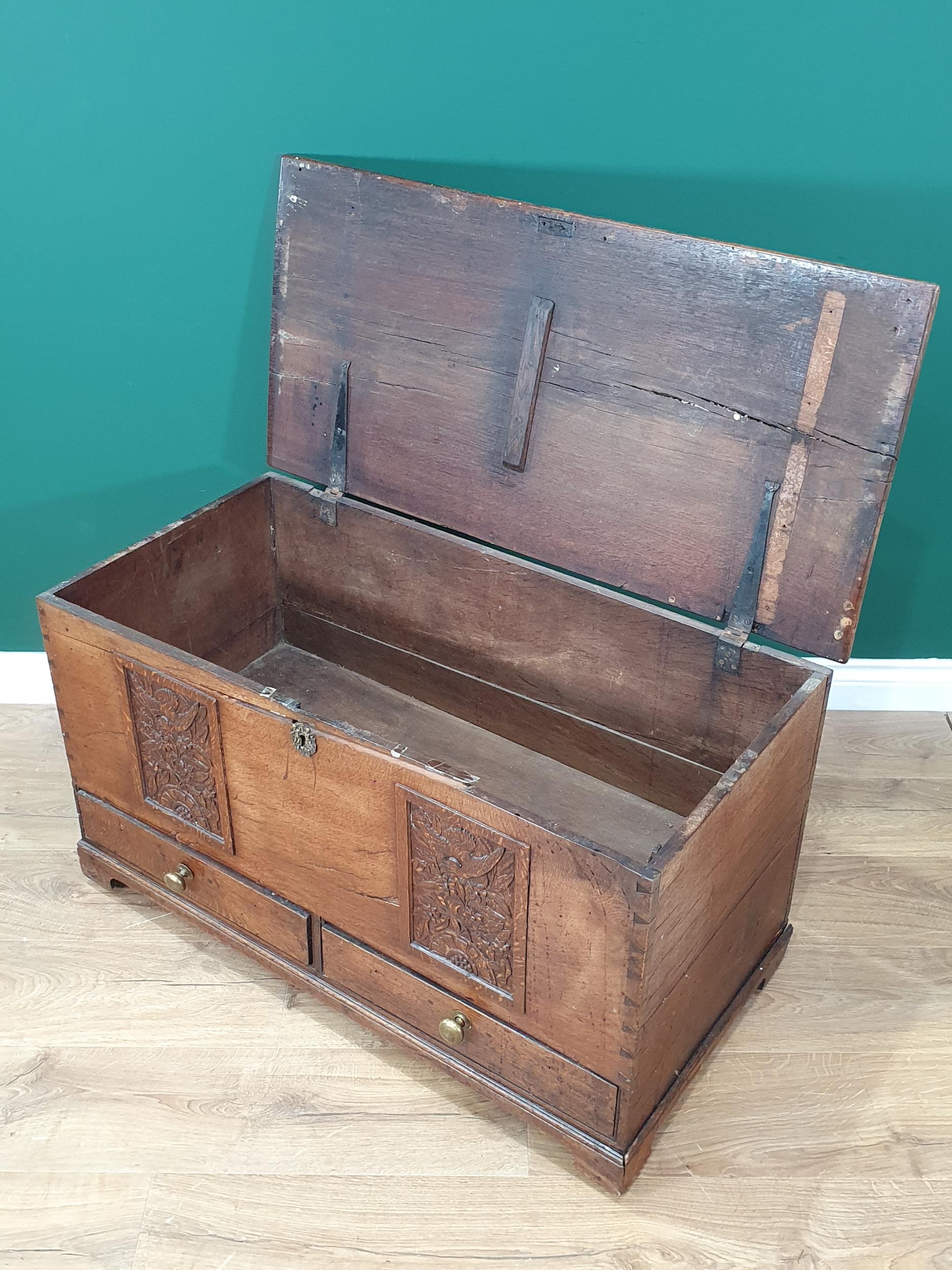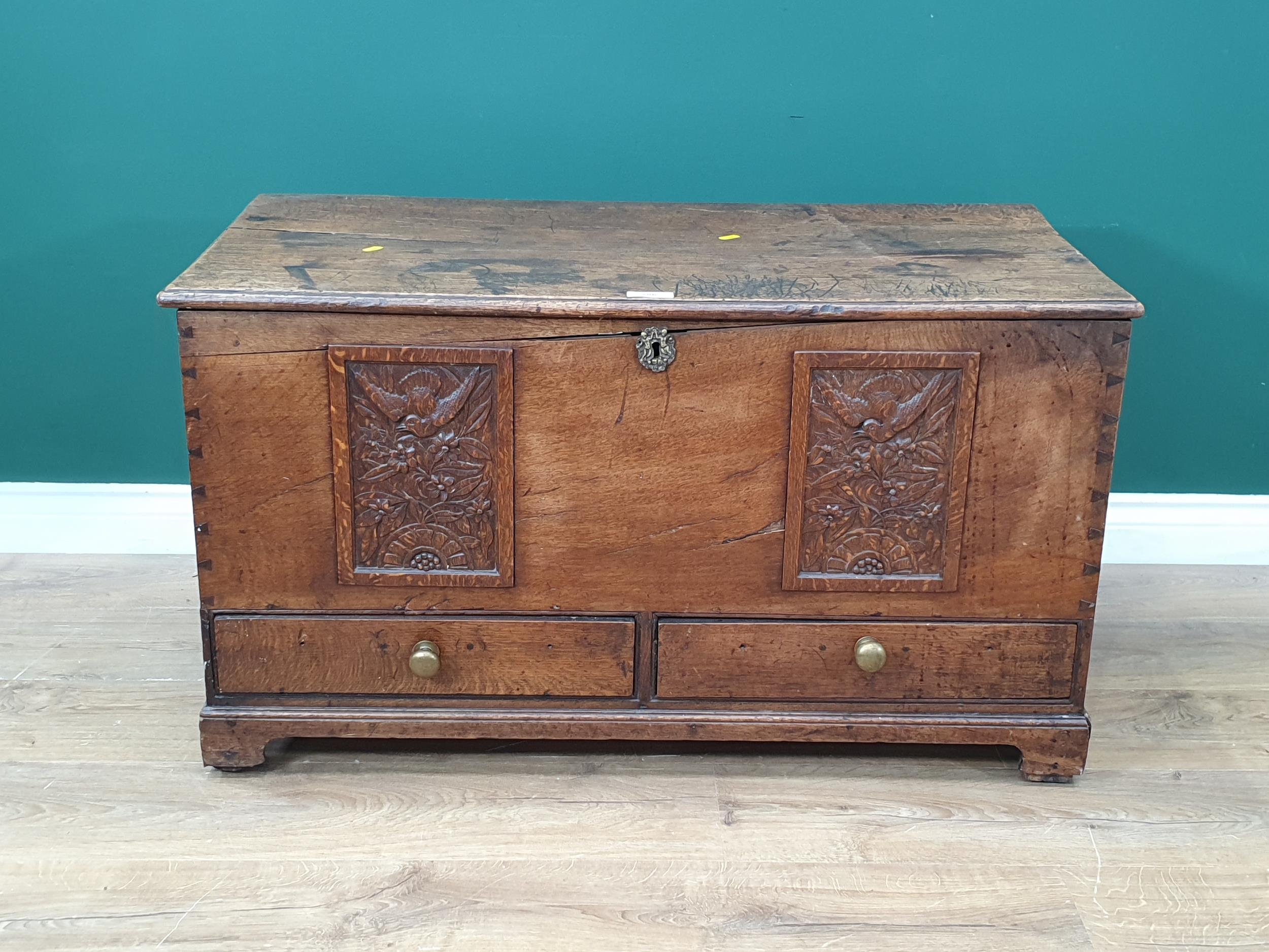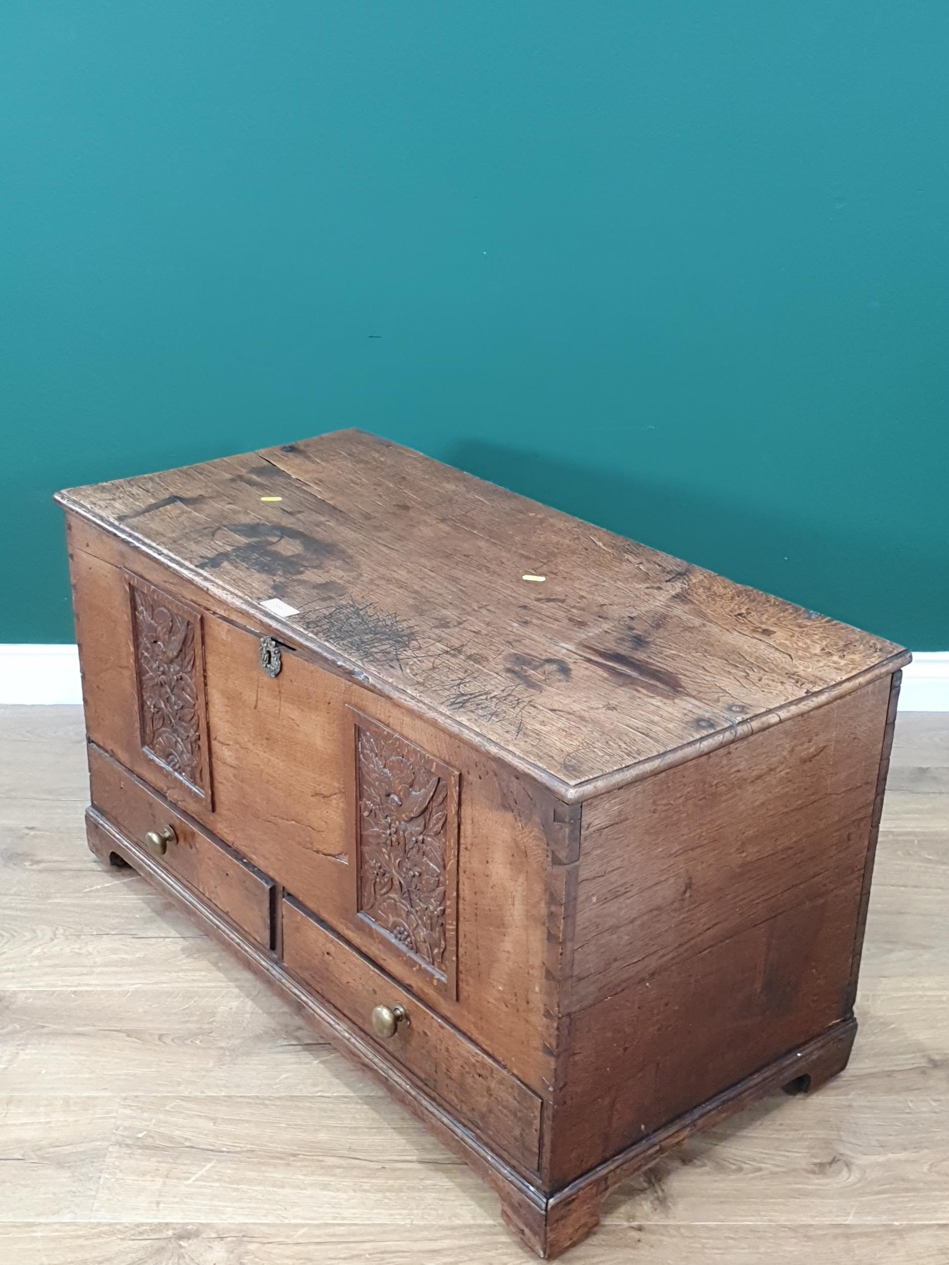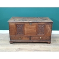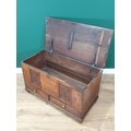 An antique oak Blanket Chest fitted two drawers with two later panels 3ft 1in W x 1ft 10in H
